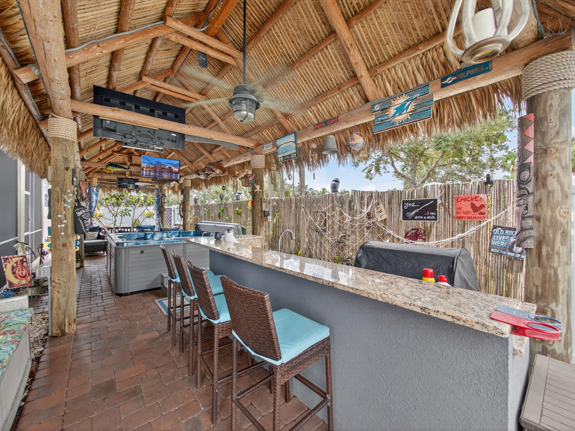 DescriptionAn entertainer's DREAM for Florida living in Victoria Parc at Tradition! Welcome to your PRIVATE backyard oasisa"complete with a TIKI HUT with generous seating space, an outdoor summer kitchen (grill, sink, fridge, ice machine), a custom 6-person ThermaSpa, and over $7,500 in electrical work for TVs, lighting, etc.. The fully fenced pie-shaped lot adds extra side yards for play, gardening, or petsa"rare in this community PLUS it features a complete french drain system to actually enjoy this space. This gem boasts over $85,000 in owner UPGRADES, so you can move in and enjoy from day one.