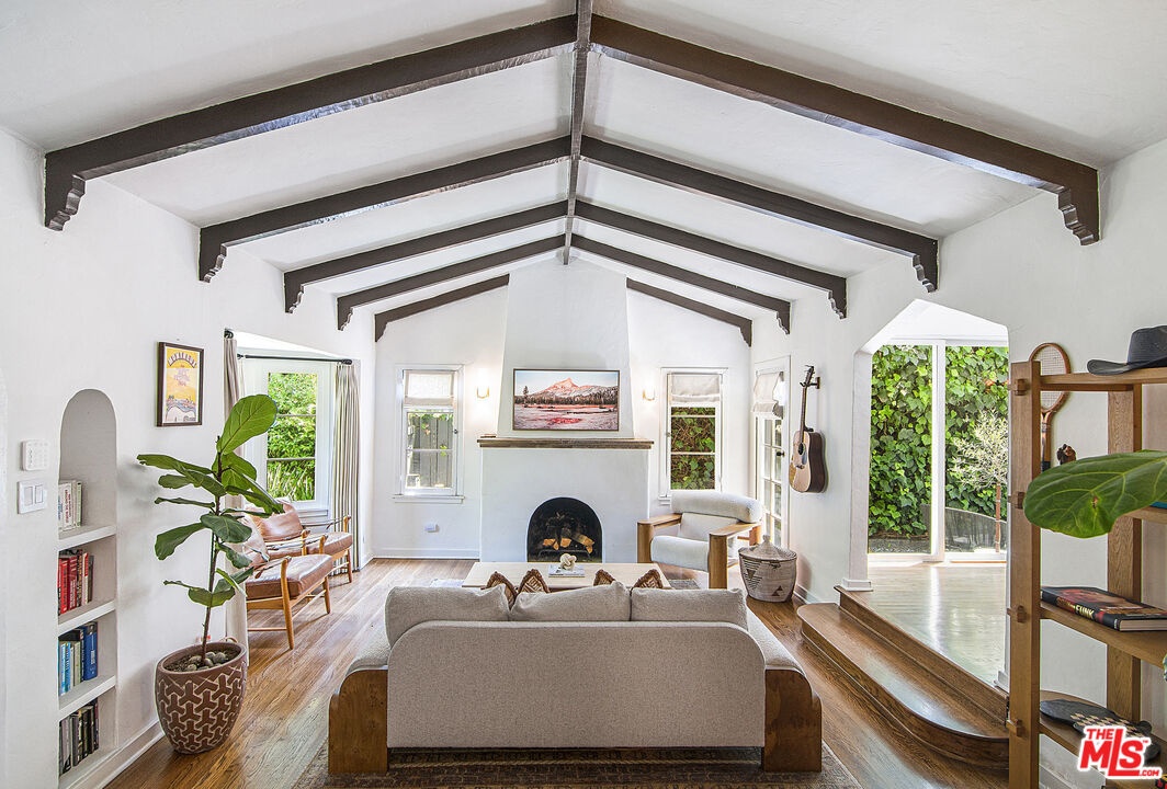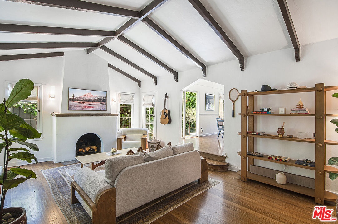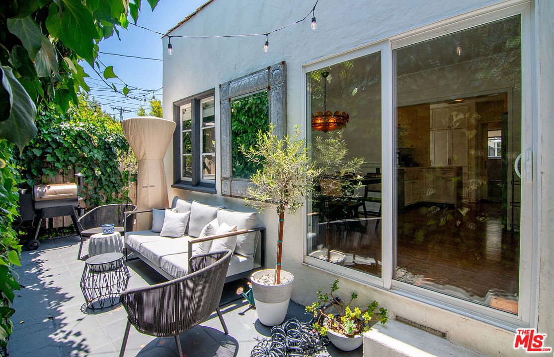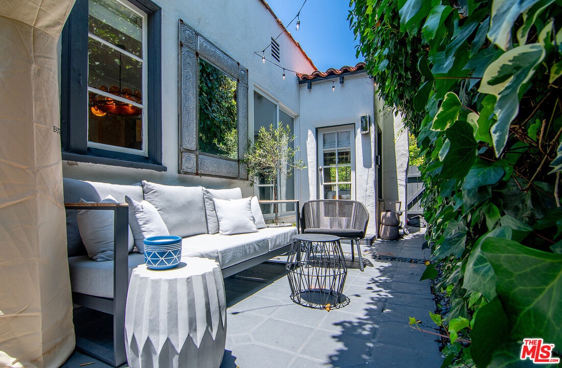 DescriptionSTYLISH SPANISH BUNGALOW IN BEVERLY GROVE. Enter this fabulous pied-a-terre in the heart of Beverly Grove through a gated and hedged front garden into a grand step-down living room with vaulted, beamed ceiling, bay window and fireplace. The formal dining room with sliding glass doors opening to a private patio and outdoor lounging area adjoins a beautifully remodeled chef's kitchen with quartz counters, pantry, Thermador stove with vented hood, Bosch stainless steel appliances, and a Blanco cast iron farm sink. A luxurious primary suite provides direct access to the outdoor patio and boasts a vaulted ceiling, walk-in closet, fully remodeled bath with a large marble shower and soaking tub, and dual vanity. Additional features include a generous ensuite guest bedroom, additional powder room, central AC, Nest thermostat, multiple skylights, hardwood floors, crown moldings, custom window-coverings, private driveway with EV charger, ideal location steps from dining and shopping on Third Street, the Grove, the Beverly Center and Melrose. LAR2 Zoning may allow for additional living space.NeighborhoodMore listings: