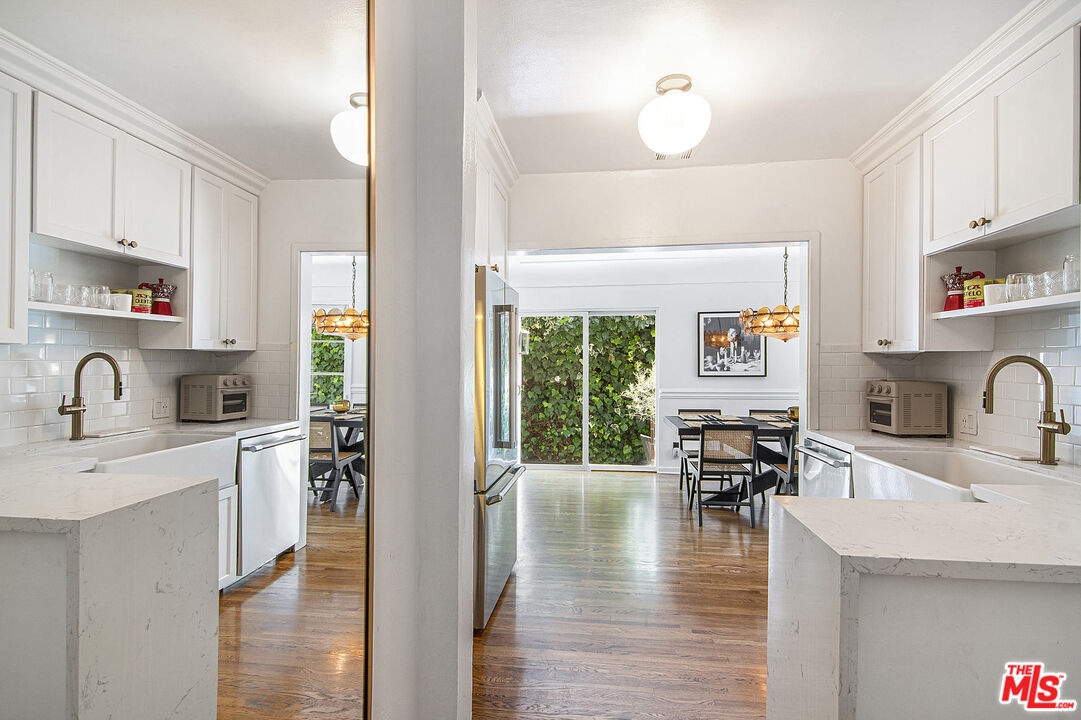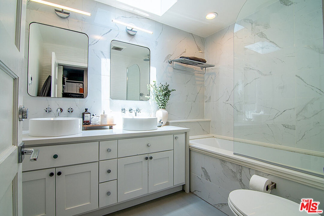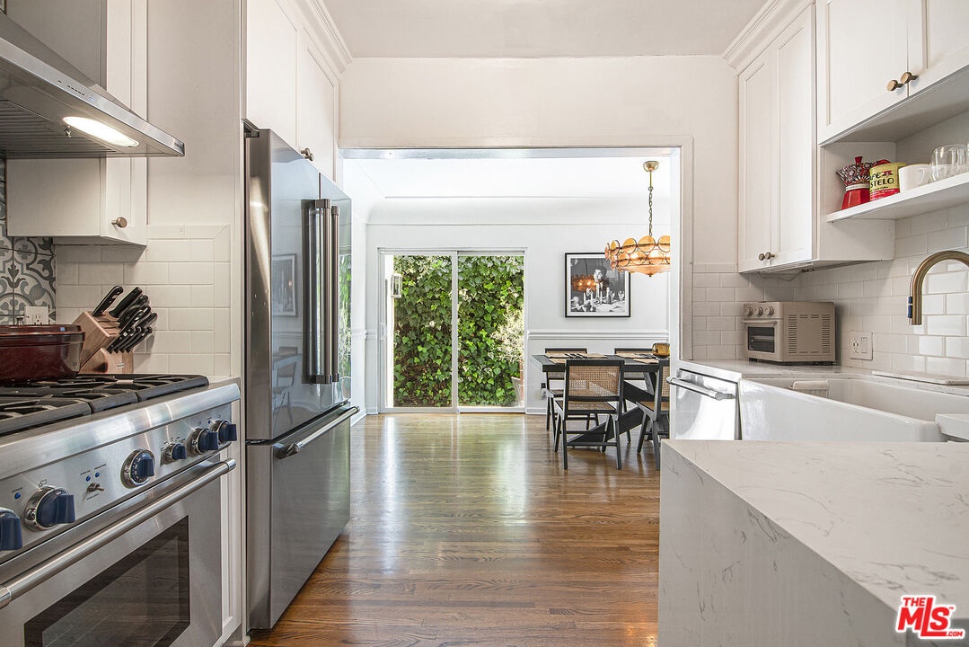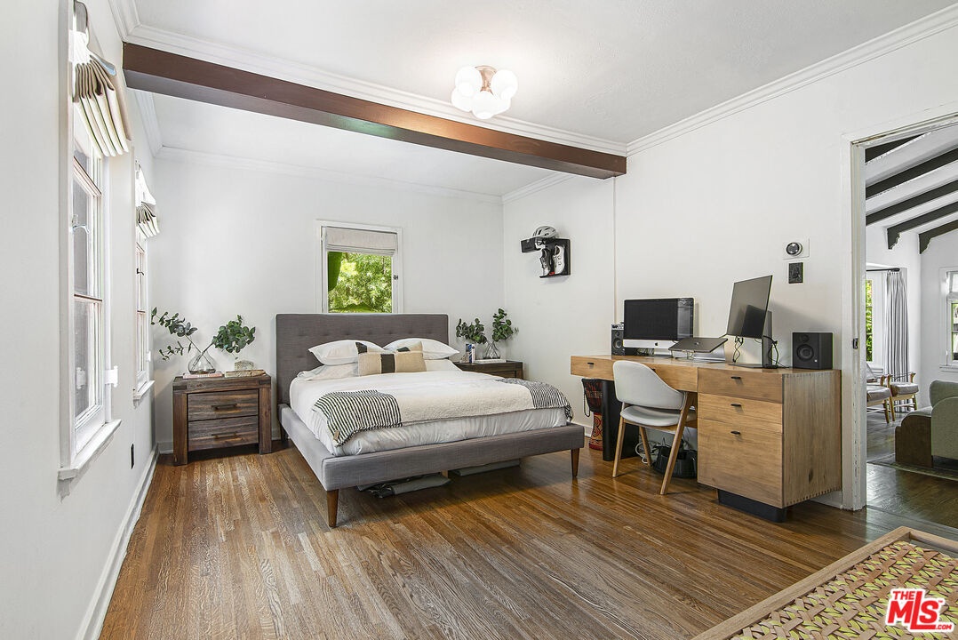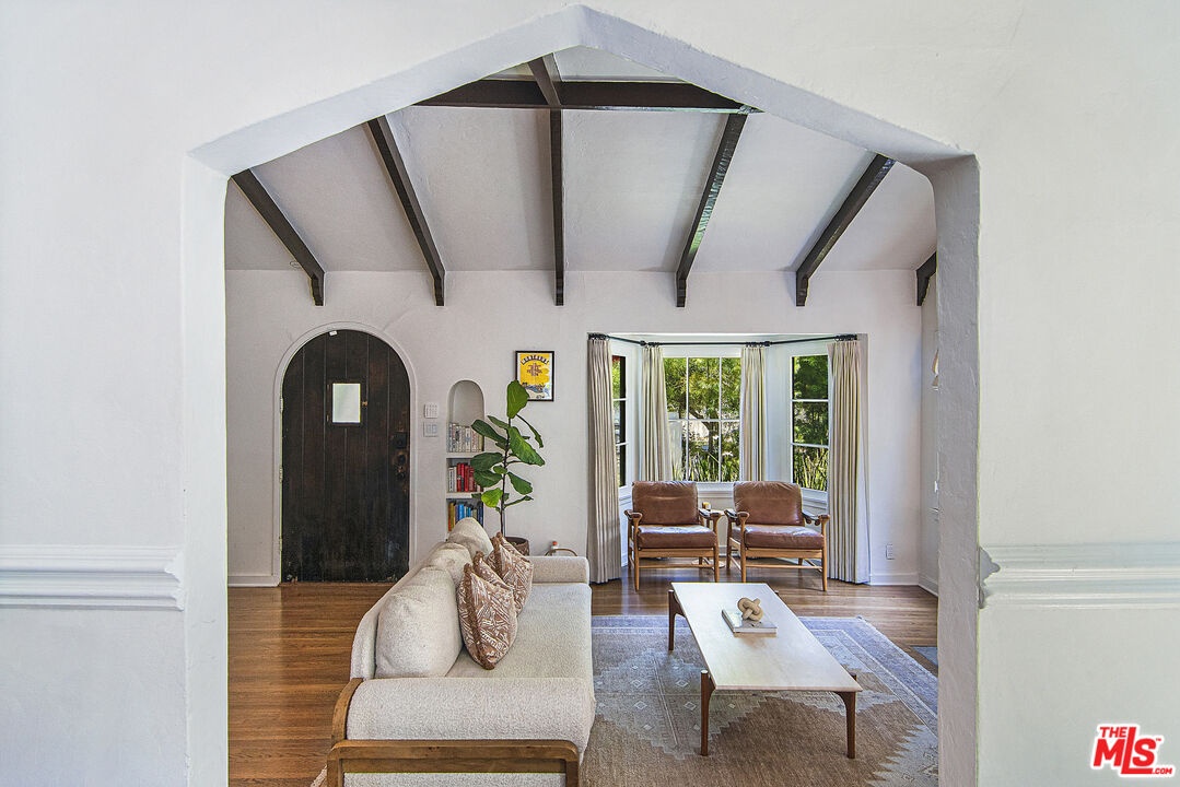 DescriptionSTYLISH SPANISH BUNGALOW IN BEVERLY GROVE. Enter this fabulous pied-a-terre in the heart of Beverly Grove through a gated and hedged front garden into a grand step-down living room with vaulted, beamed ceiling, bay window and fireplace. The formal dining room with sliding glass doors opening to a private patio and outdoor lounging area adjoins a beautifully remodeled chef's kitchen with quartz counters, pantry, Thermador stove with vented hood, Bosch stainless steel appliances, and a Blanco cast iron farm sink. A luxurious primary suite provides direct access to the outdoor patio and boasts a vaulted ceiling, walk-in closet, fully remodeled bath with a large marble shower and soaking tub, and dual vanity. Additional features include a generous ensuite guest bedroom, additional powder room, central AC, Nest thermostat, multiple skylights, hardwood floors, crown moldings, custom window-coverings, private driveway with EV charger, ideal location steps from dining and shopping on Third Street, the Grove, the Beverly Center and Melrose. LAR2 Zoning may allow for additional living space.NeighborhoodMore listings: