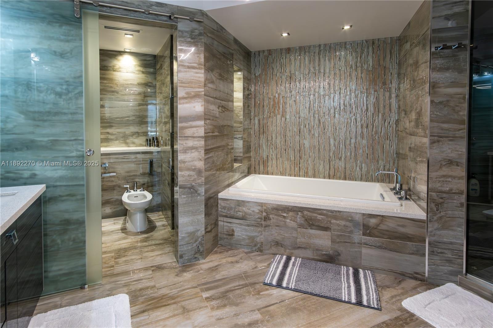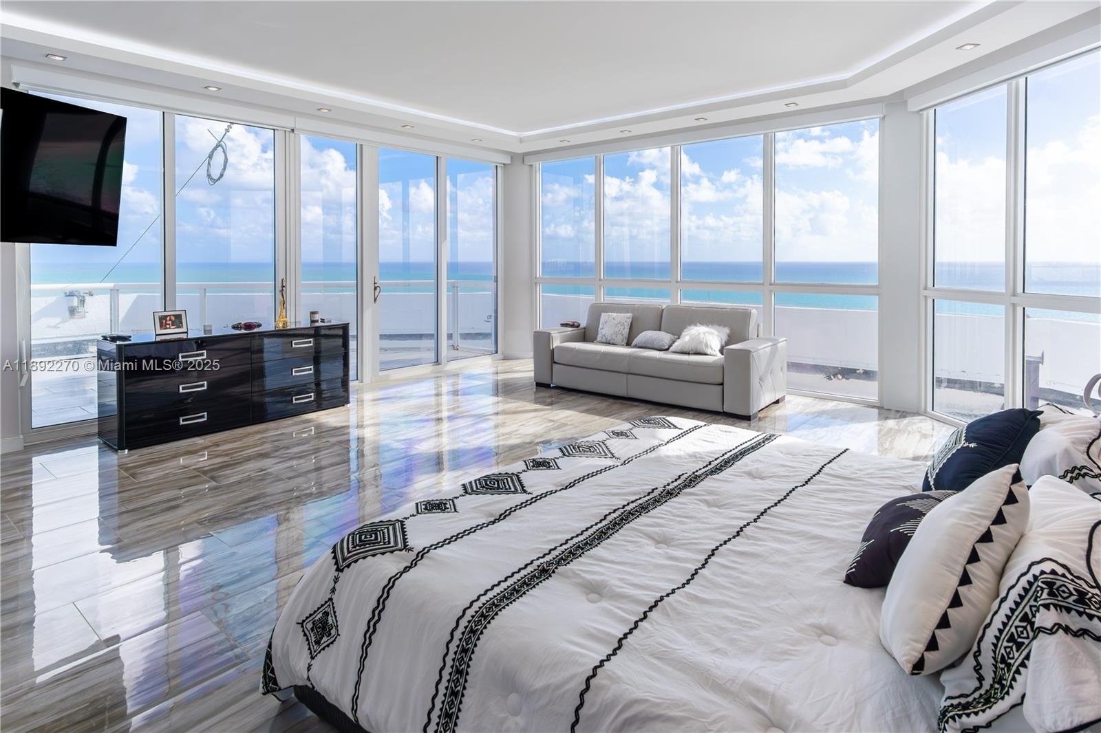 Ascend to a dedicated master retreat encompassing the entire upper floor. This sanctuary features a sprawling master suite with a private balcony showcasing 270-degree views of the Atlantic, Miami Skyline, and Intracoastal. The floor is completed by a massive walk-in closet, a spa-inspired bath with private bidet, and a significant professional office with its own balcony access—the perfect "Sky Office" for the modern executive.