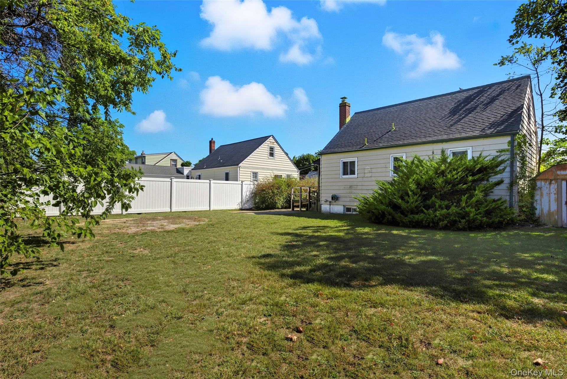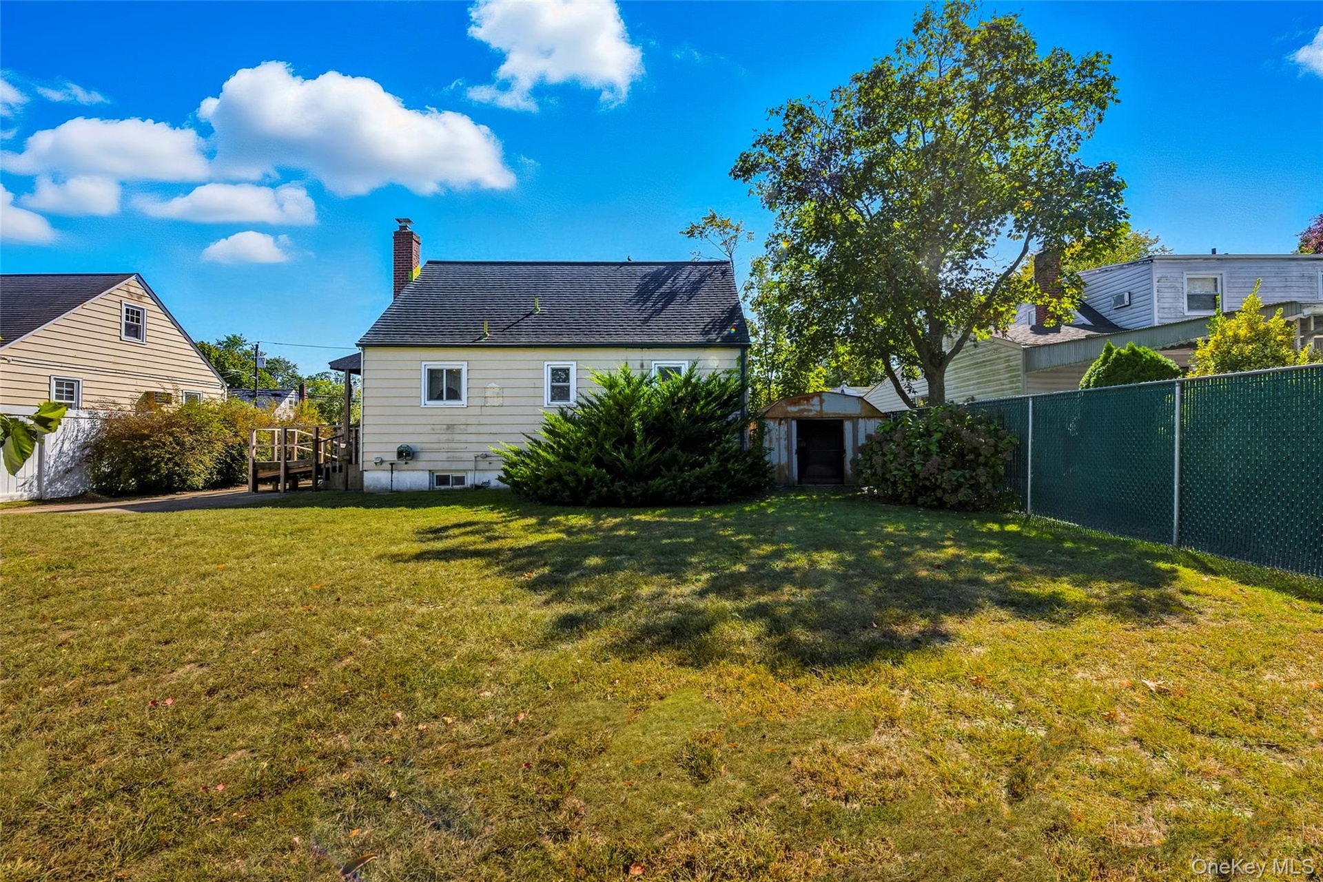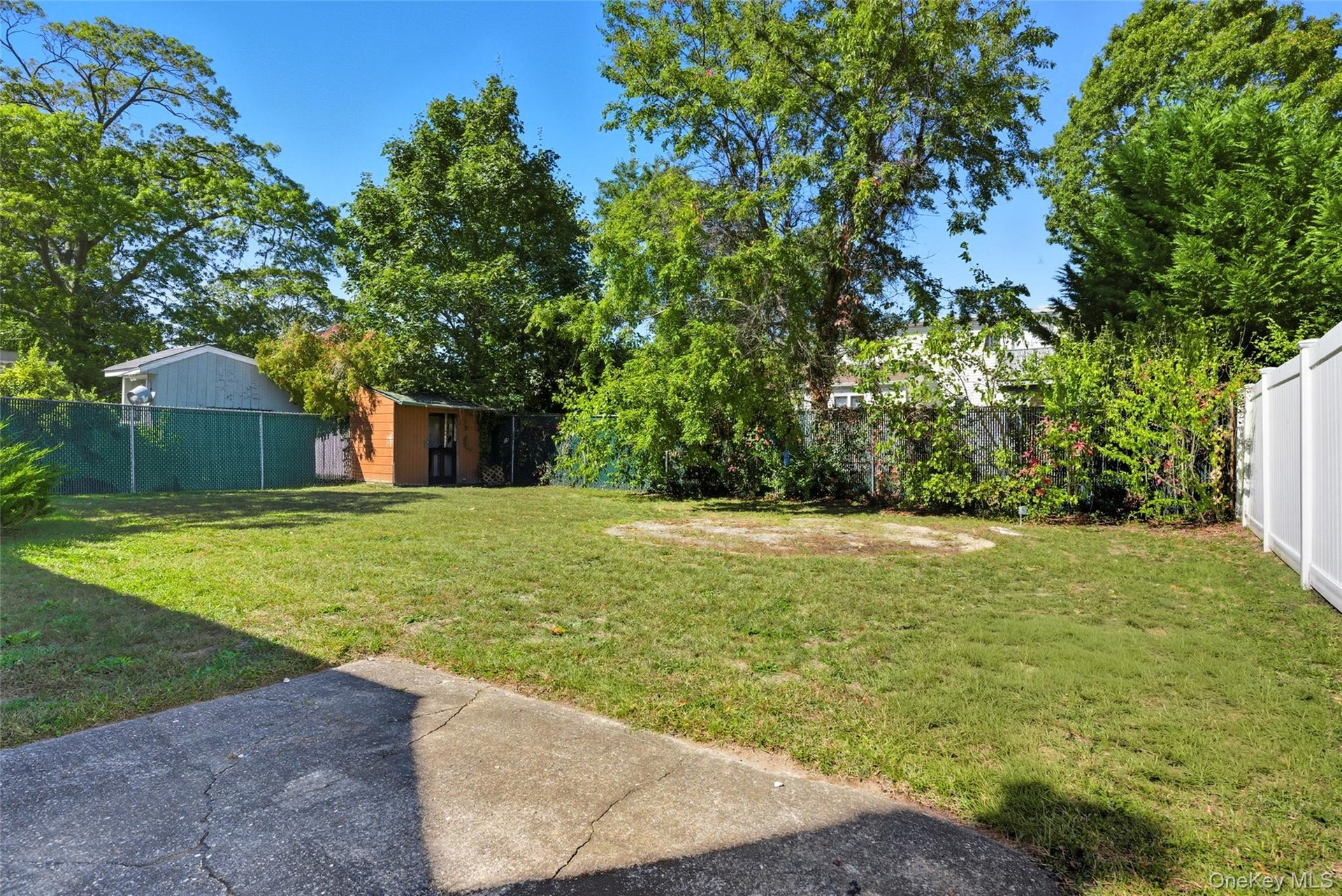 - Fenced backyard with a storage shed