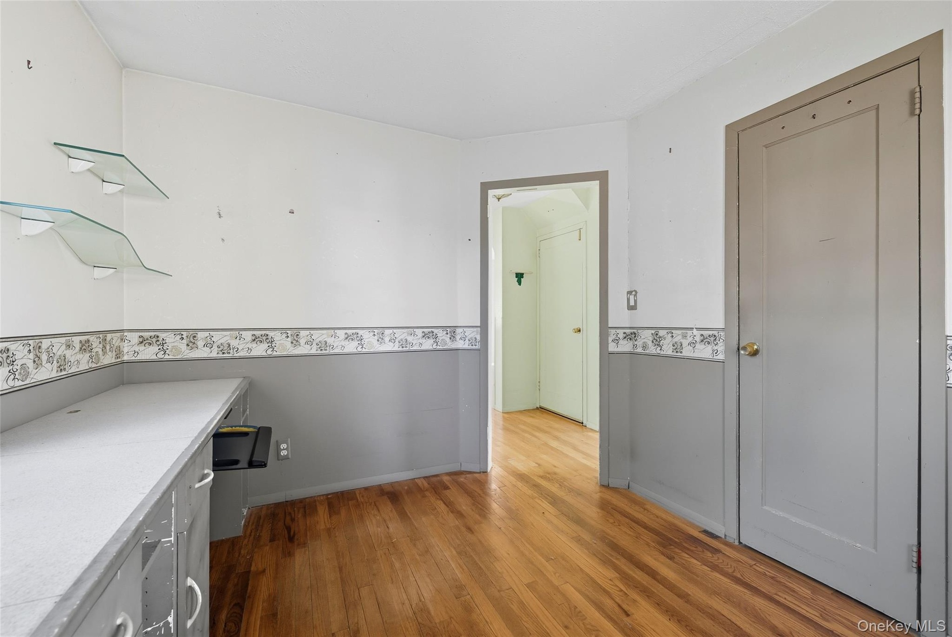 - Empty room with light wood finished floors