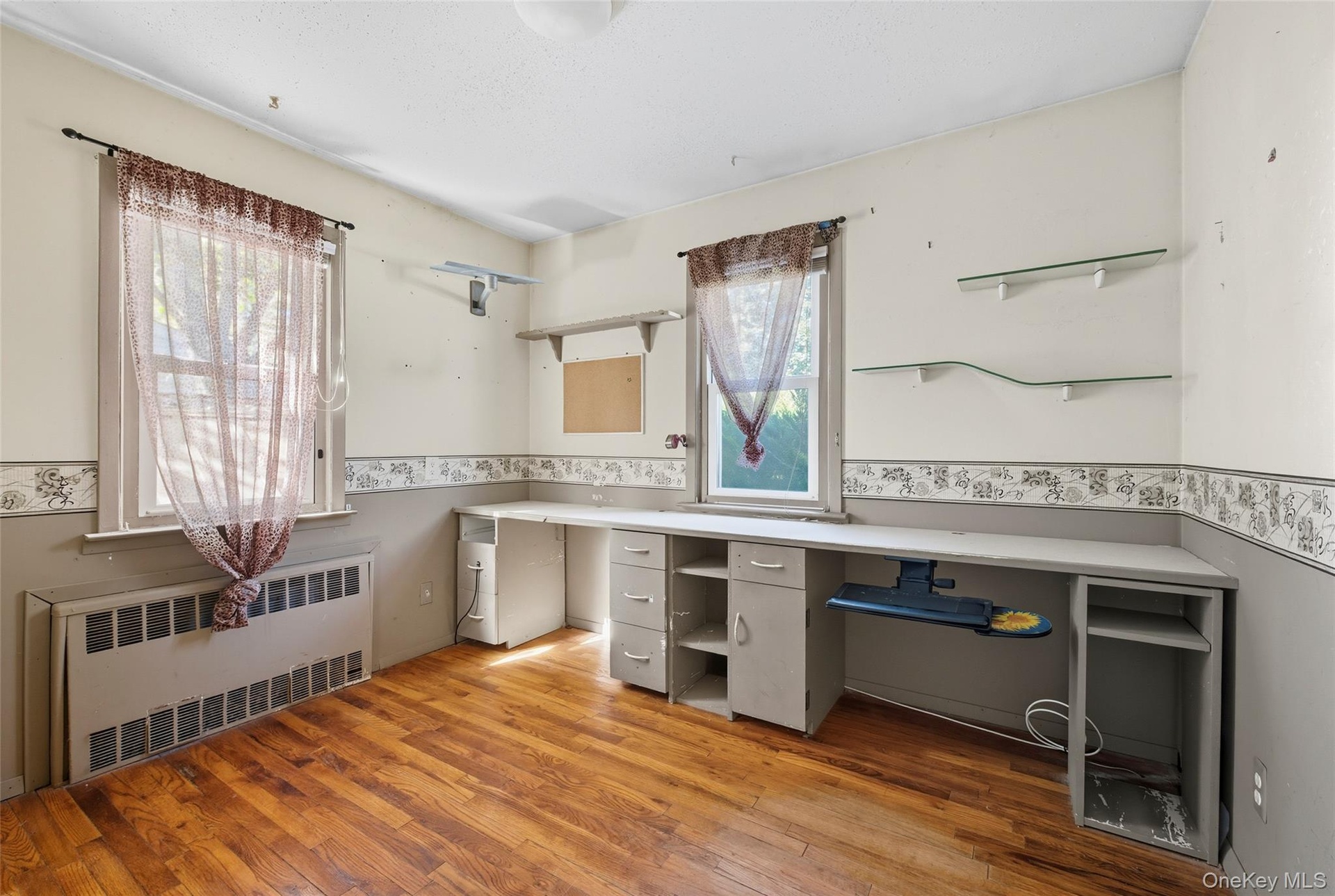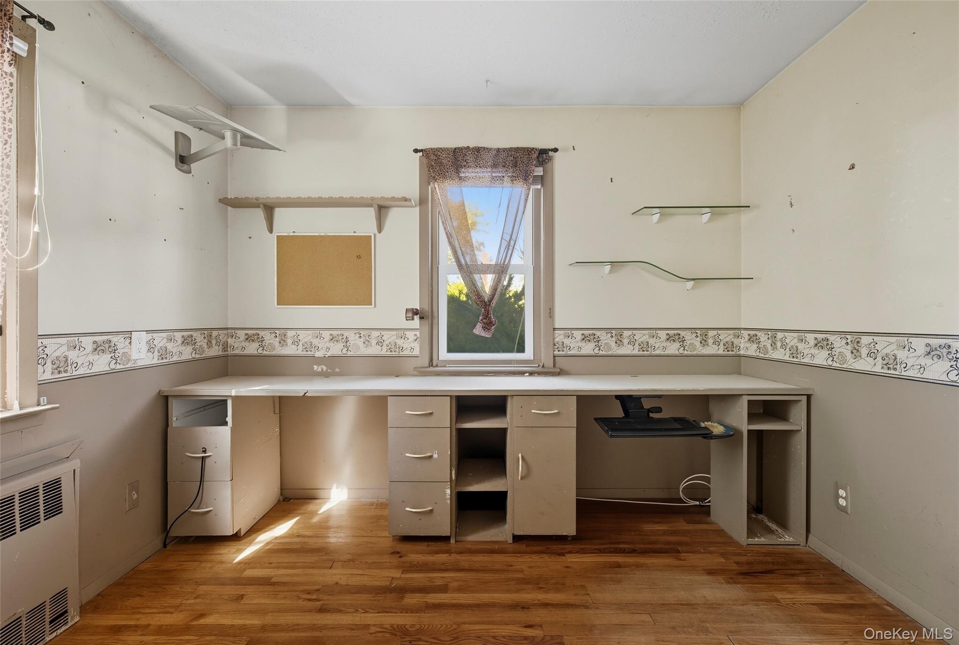 - Unfurnished office with radiator and light wood-style floors
