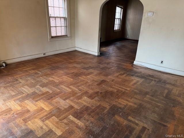 - Spare room with arched walkways, radiator, radiator heating unit, french doors, and cooling unit
