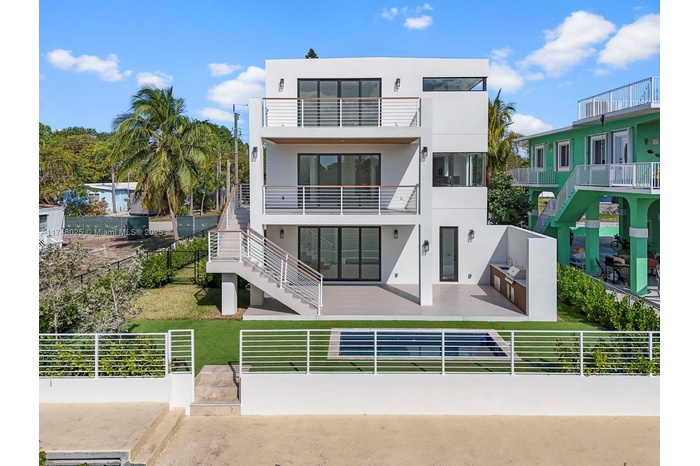 DescriptionThis brand-new tri-level home in the FL Keys perfectly captures the essence of sophisticated luxury & relaxed island living. With both bay & ocean access, 60 ft. of canal frontage + private concrete dock, it's ideal for saltwater enthusiasts. The home flows seamlessly from the rec room & summer kitchen to pool area, all set in a fenced yard - perfect for kids & pets. The 2nd level offers open living & dining, kitchen island, sleek wet bar & laundry room. An expansive balcony is perfect for family dinners & unwinding. Upstairs, elegant finishes & water views offer a peaceful master retreat. Just blocks from Tavernier Marina & fuel station, close to the top dining spots in Islamorada & only 90 mins. from Miami, this home is an ideal vacation retreat w/no HOA & great rental income potential.Virtual Tour: https://my.matterport.com/show/?m=CCsHvhiMh7cAmenities- Balcony