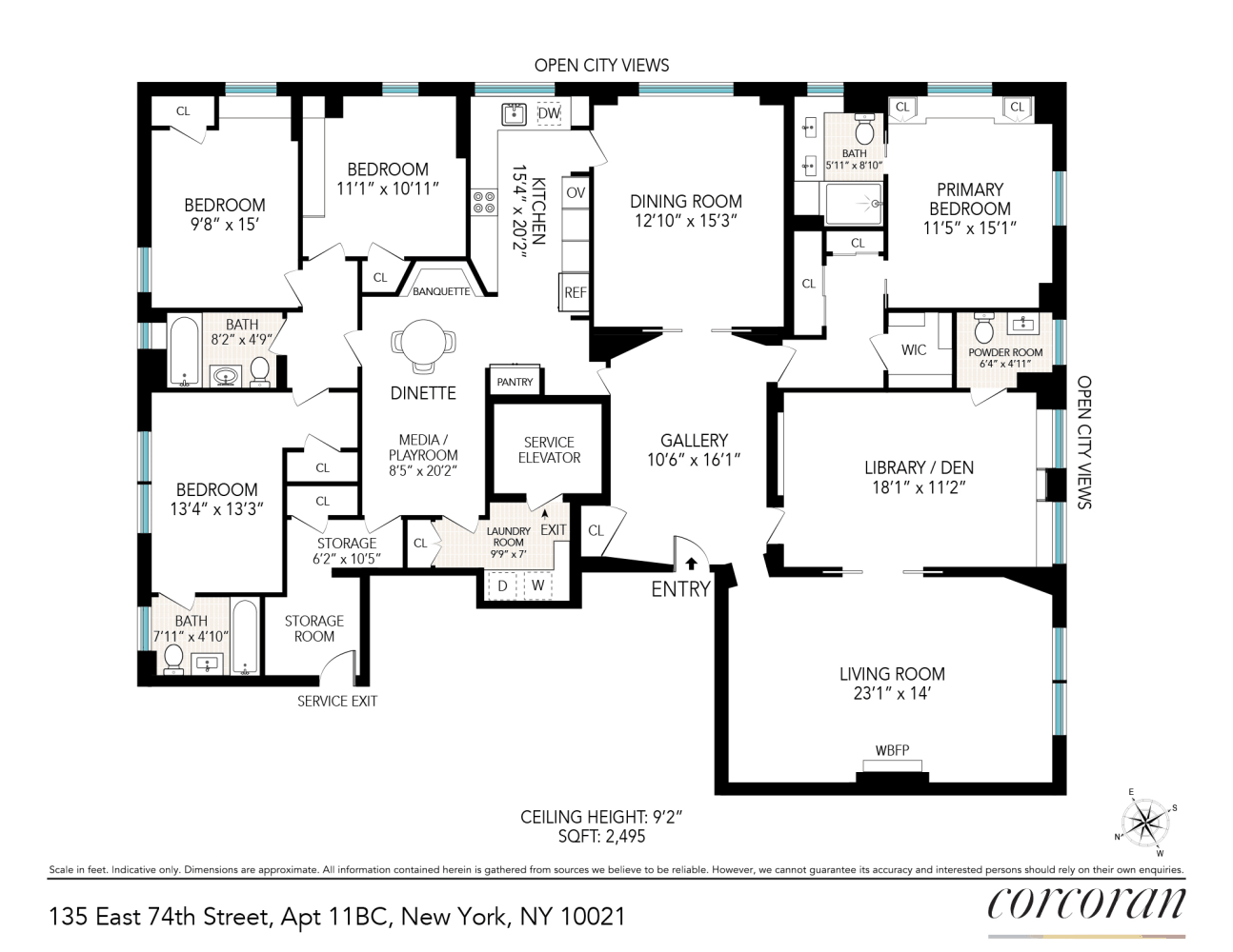 Flooded with light and offering sweeping south and east city views, this renovated, move-in ready 8-Room, 4-bedroom, 3-1/2 bath home of approximately 2,500 square feet in the highly desirable Lenox Hill neighborhood, offers the rare combination of grand scale, classic layout, and exceptional functionality blended with timeless prewar elegance. Located on a high floor in a full-service coop, Apt 11BC is a beautifully proportioned, spacious and versatile 8-room home ideal for both elegant entertaining and comfortable daily living.