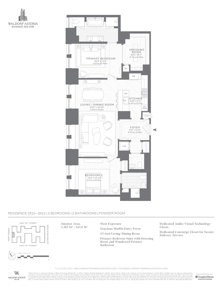 Own a piece of the legacy at Waldorf Astoria Residences New York. Residence 2412, is a split two-bed, two-and-a-half-bath overlooking iconic Park Avenue.
