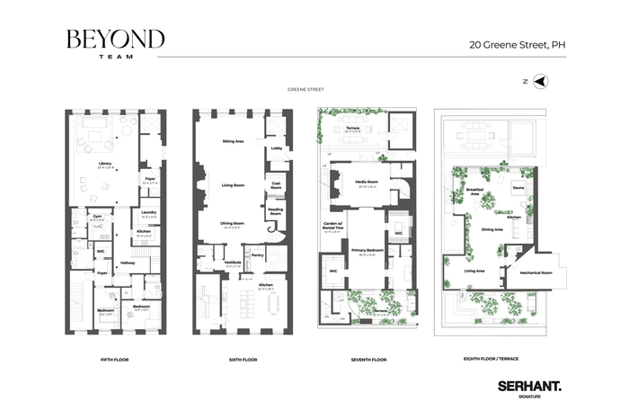 Nestled in the heart of SoHo's historic Cast Iron District, this extraordinary trophy penthouse at 20 Greene Street spans the top four floors of a landmarked 1915 cast-iron building. Meticulously renovated to blend timeless architectural charm with cutting-edge modern luxury, this expandable 3-bedroom, 4.5-bath condominium boasts 6,814 square feet of impeccably designed interior space and an impressive 2,841 square feet of private outdoor terraces. Originally crafted by Gachot Studios and later elevated by renowned designer Axel Vervoordt, the residence harmonizes matte plaster walls, wide-plank oak floors, and bespoke furnishings to create an oasis of sophistication and serenity amid the vibrant energy of Manhattan.