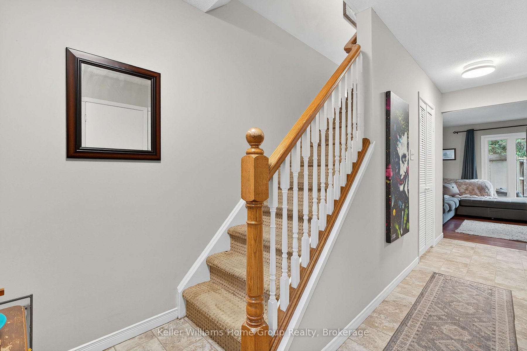 Welcome to 25-206 Green Valley!! A very desirable end unit townhome with lots of appeal for first time owners and downsizers alike.This 3-bedroom, 2.5-bathroom home features a finished basement and is move-in ready. The entry area includes ample closet space and a powder room. The kitchen has newer countertops, sink, and faucet, and it leads into a dining area with plenty of storage. There's a spacious living room with direct access to a PRIVATE backyard that overlooks the green space.Upstairs, you'll find a large primary bedroom with big windows, a clean 4-piece bath, and a sizable linen closet. Two additional bedrooms with good closet space complete the upper level.The basement includes an extra 3-piece bath, laundry area, additional storage, and a large rec room and it has a newer a/c unit!The backyard offers a peaceful environment surrounded by trees.