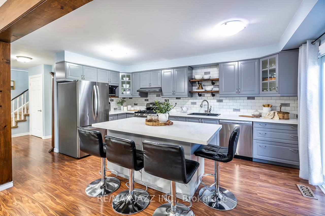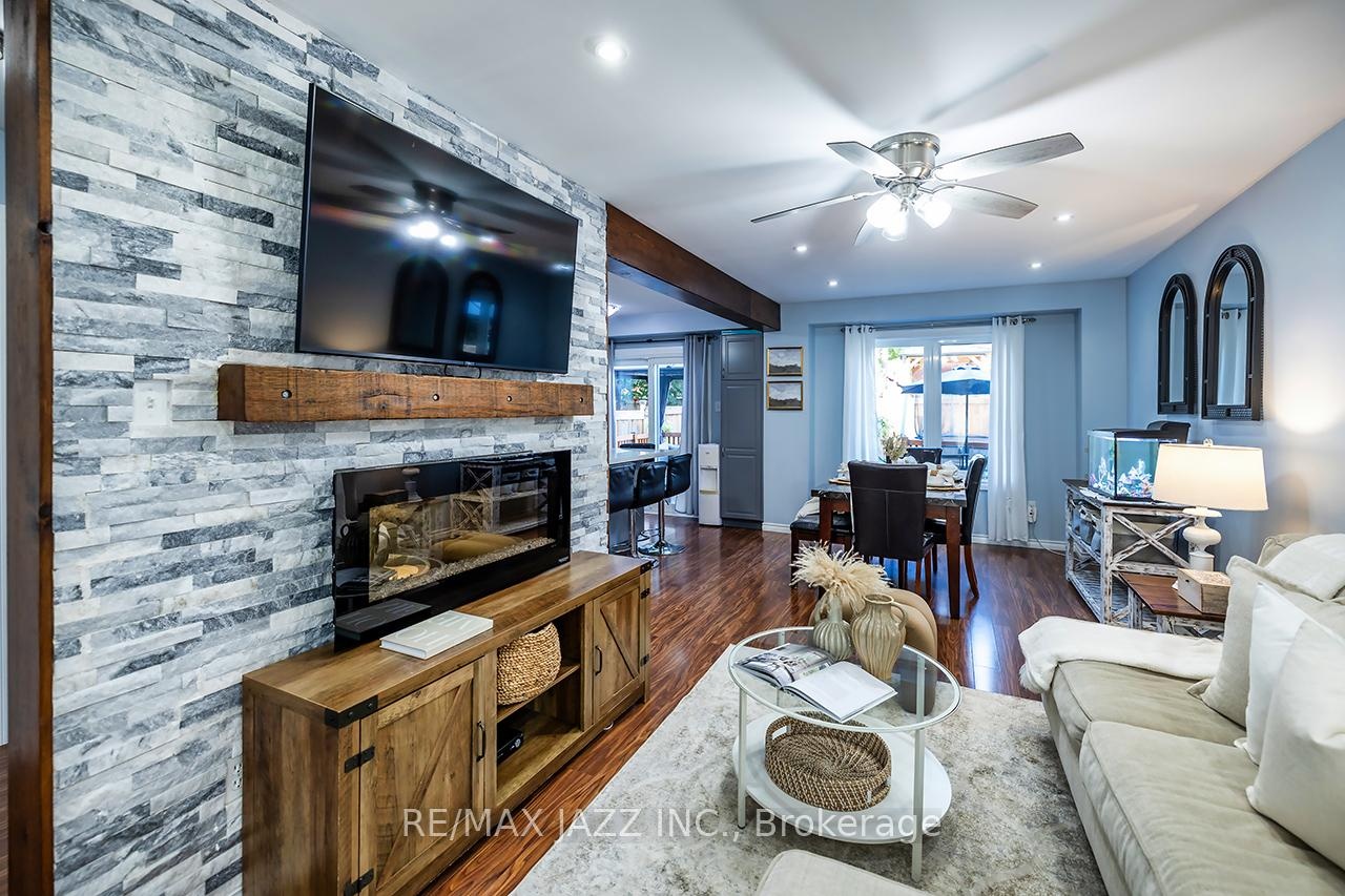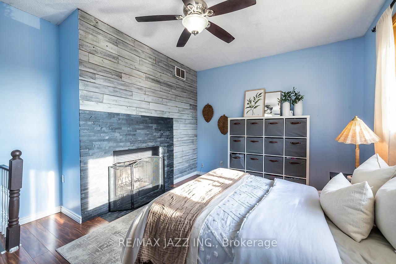 Nestled on a quiet crescent in Aspen Springs, West Bowmanville, this spacious (one of the largest linked models in the area) and thoughtfully updated 3-bedroom + BONUS ROOM (easily convertible to 4th bedroom), 2.5 bath , 2-storey home is cozy with modern upgrades. Located in a family-friendly neighborhood close to schools, shopping, HWYs, the home features a bright open-concept main floor with a beautifully renovated eat-in kitchen (2020) boasting quartz countertops, a large center island with breakfast bar, gas stove, and stainless steel appliances. The kitchen walks out to a fully fenced backyard and spacious deck - perfect for entertaining. The combined living and dining room offers a warm ambiance with a cozy fireplace. Upstairs, a standout feature is the large family room with a bay window, wood-burning fireplace, and accent wall - easily convertible into a 4th bedroom. The primary suite includes a walk-in closet and a newly remodeled ensuite (2024), complemented by two additional bright and spacious bedrooms. The finished basement adds additional space ideal for a rec room, office, or home gym. Recent updates include: kitchen (5 yrs), ensuite (2024), other bathrooms (3 yrs), deck (4 yrs), roof (1.5 yrs), and driveway resealed (2025). With its inviting layout and stylish finishes, this home offers comfort, flexibility, and room to grow. Hot water tank rented. Furnace and AC will be included. WETT certified.