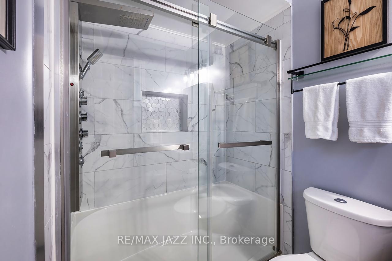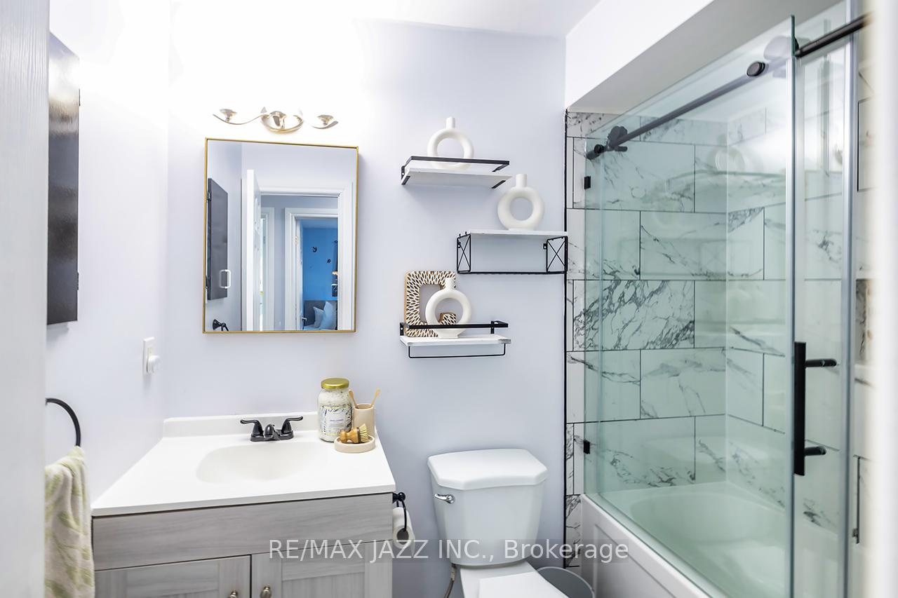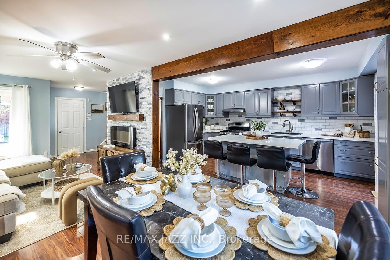 Nestled on a quiet crescent in Aspen Springs, West Bowmanville, this spacious (one of the largest linked models in the area) and thoughtfully updated 3-bedroom + BONUS ROOM (easily convertible to 4th bedroom), 2.5 bath , 2-storey home is cozy with modern upgrades. Located in a family-friendly neighborhood close to schools, shopping, HWYs, the home features a bright open-concept main floor with a beautifully renovated eat-in kitchen (2020) boasting quartz countertops, a large center island with breakfast bar, gas stove, and stainless steel appliances. The kitchen walks out to a fully fenced backyard and spacious deck - perfect for entertaining. The combined living and dining room offers a warm ambiance with a cozy fireplace. Upstairs, a standout feature is the large family room with a bay window, wood-burning fireplace, and accent wall - easily convertible into a 4th bedroom. The primary suite includes a walk-in closet and a newly remodeled ensuite (2024), complemented by two additional bright and spacious bedrooms. The finished basement adds additional space ideal for a rec room, office, or home gym. Recent updates include: kitchen (5 yrs), ensuite (2024), other bathrooms (3 yrs), deck (4 yrs), roof (1.5 yrs), and driveway resealed (2025). With its inviting layout and stylish finishes, this home offers comfort, flexibility, and room to grow. Hot water tank rented. Furnace and AC will be included. WETT certified.