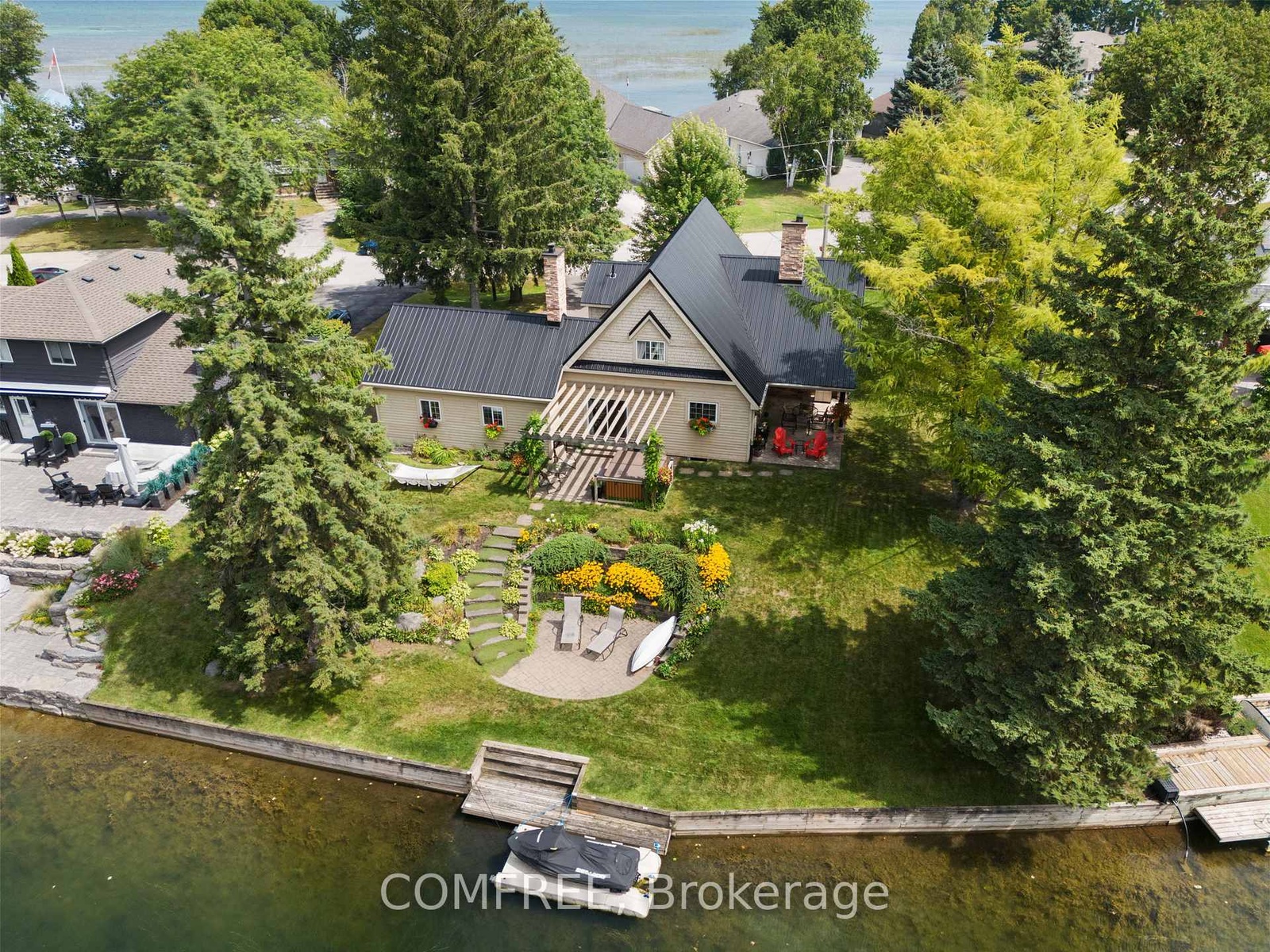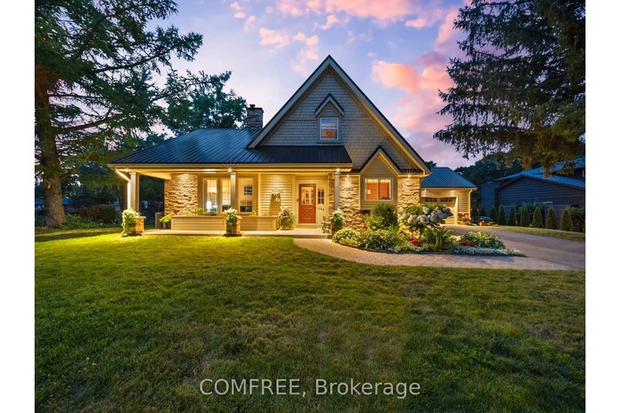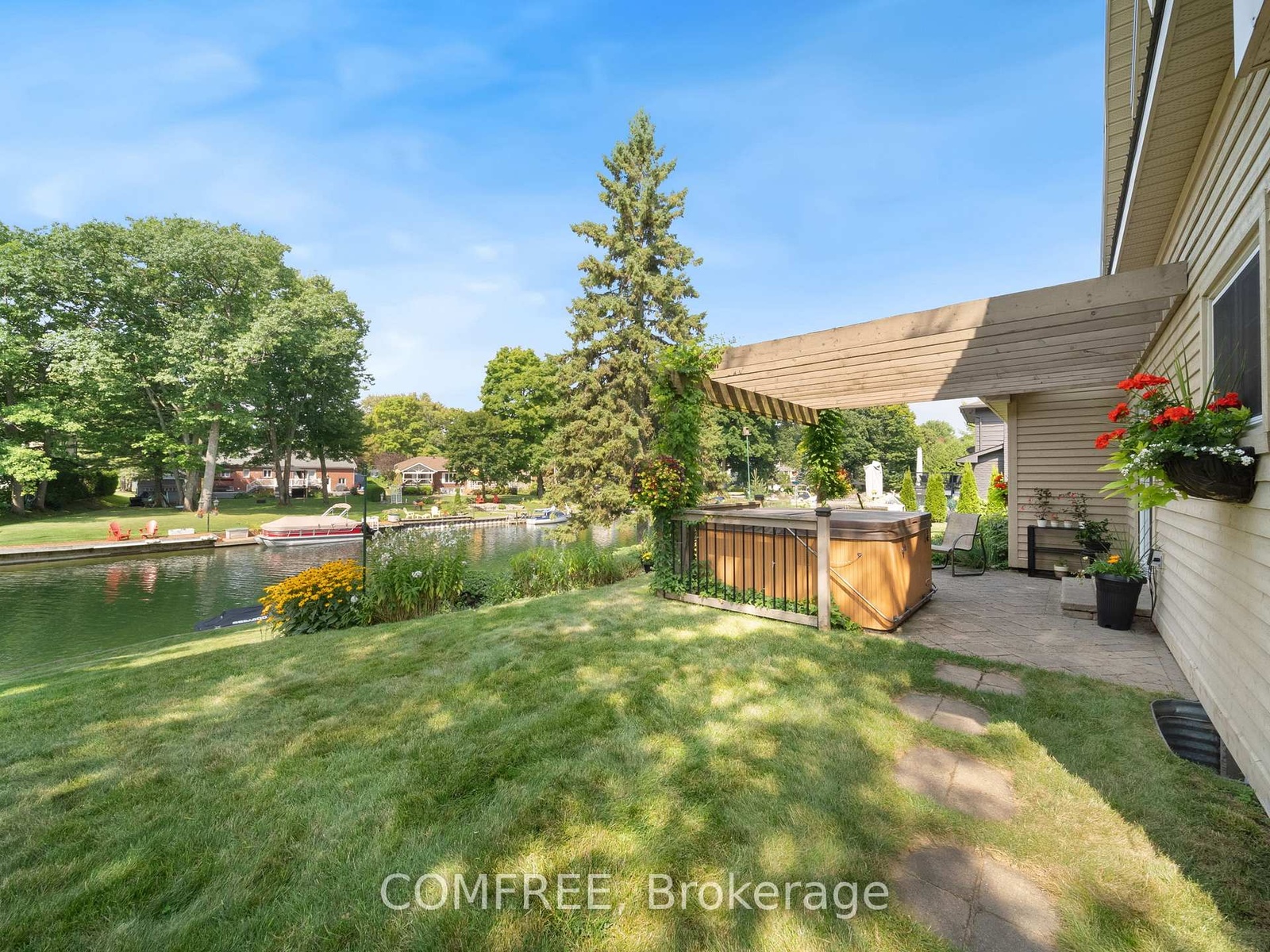Prime Canal Waterfront property in highly sought after Couchiching Point Orillia neighbourhood. Are you longing to put a boat or kayak in the water right from your back door, and be on the Trent Severn within moments, this is the place for you. Does a relaxed, peaceful setting allow you to let go of daily stress? If so, you may be interested in this unique 1862 sq ft home with cathedral ceilings, an elegant spacious loft master bedroom, crafted maple kitchen with a cultured stone fireplace. Three attractive outside patios extend the living space and look out onto beautiful gardens, quiet canal ripples, visiting herons & swans, paddle boards and kayakers. Treat yourself to a great man cave downstairs, tiled bathroom with glassed in shower, recreational/ movie space, bar and workout area. There are 2 bedrooms up, one main floor and 2 downstairs, plus 3 bathrooms. The downstairs living space is not included in the 1862 sq footage. There is a two car garage with extensive storage space. A mature, safe, friendly neighbourhood, proximity to Tudhope park festivals, biking/ trail system and beach make this home a sought after treasure!