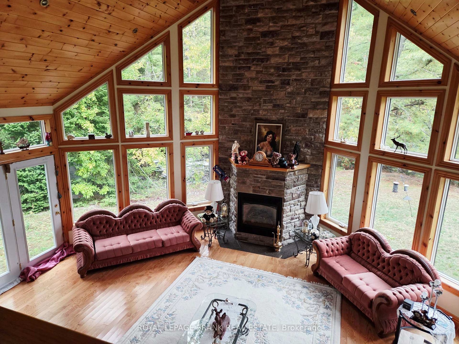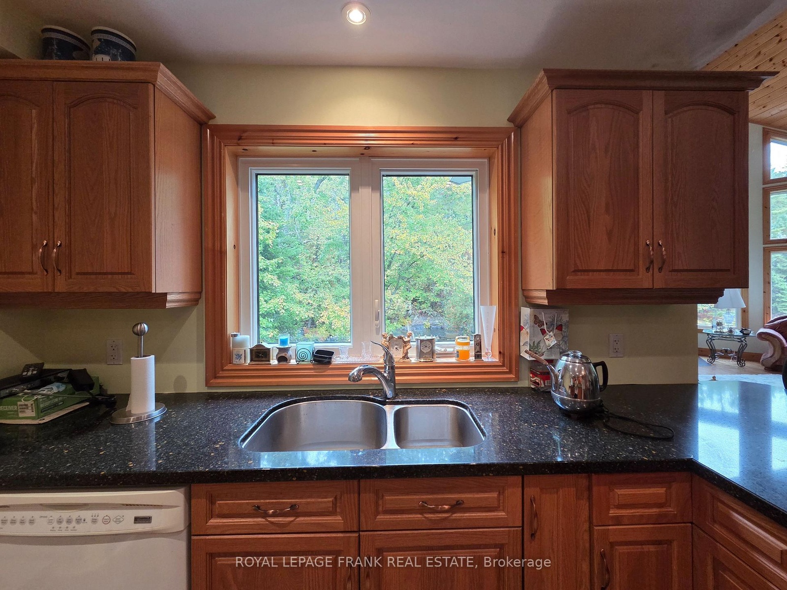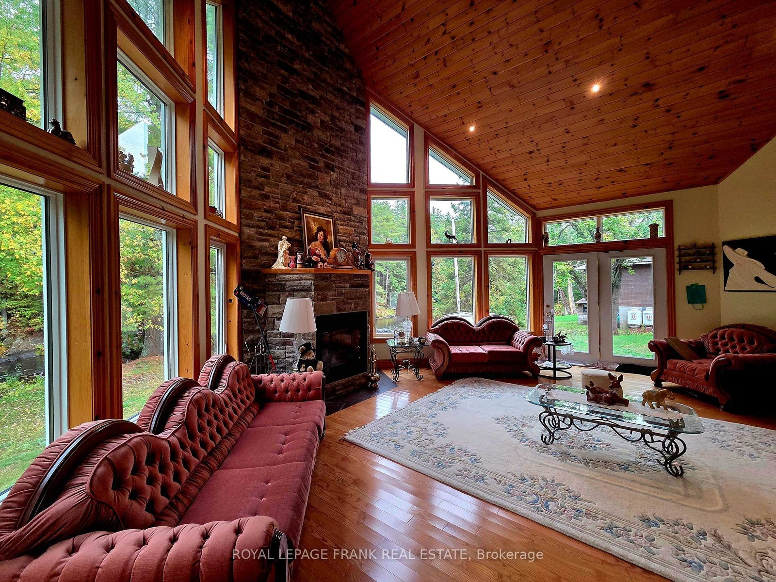 EELS CREEK: Beautifully appointed home sitting on over a half acre point lot with the amazing sound of the terrific rapids on one side and great swimming/canoeing on the SE side of the point lot. This custom 1800+ Sq. Ft. home offers 3 bedrooms, a main floor family room and den, 2.5 bathrooms and upgraded finishes throughout. Including hardwood floors, cathedral ceilings, floor to ceiling windows and fireplace, granite kitchen counters, central vacuum, central air, main floor laundry and 1860 square foot poured concrete basement with 8 ft ceilings waiting to be finished. Detached 1.5 car garage with cement floor and hydro, plus a huge paved driveway allowing for lots of parking. Long Lake public access in the Kawartha Highlands Provincial Park is just minutes away. This property is approximately a 2 hour drive from the GTA and a short drive to the village of Apsley for shopping, our medical centre, public school, library and our impressive community centre with a state of the art workout facility and NHL size rink. Minutes from Jack, Anstruther & Chandos Lakes as well. You will love calling cottage country your home, come see!