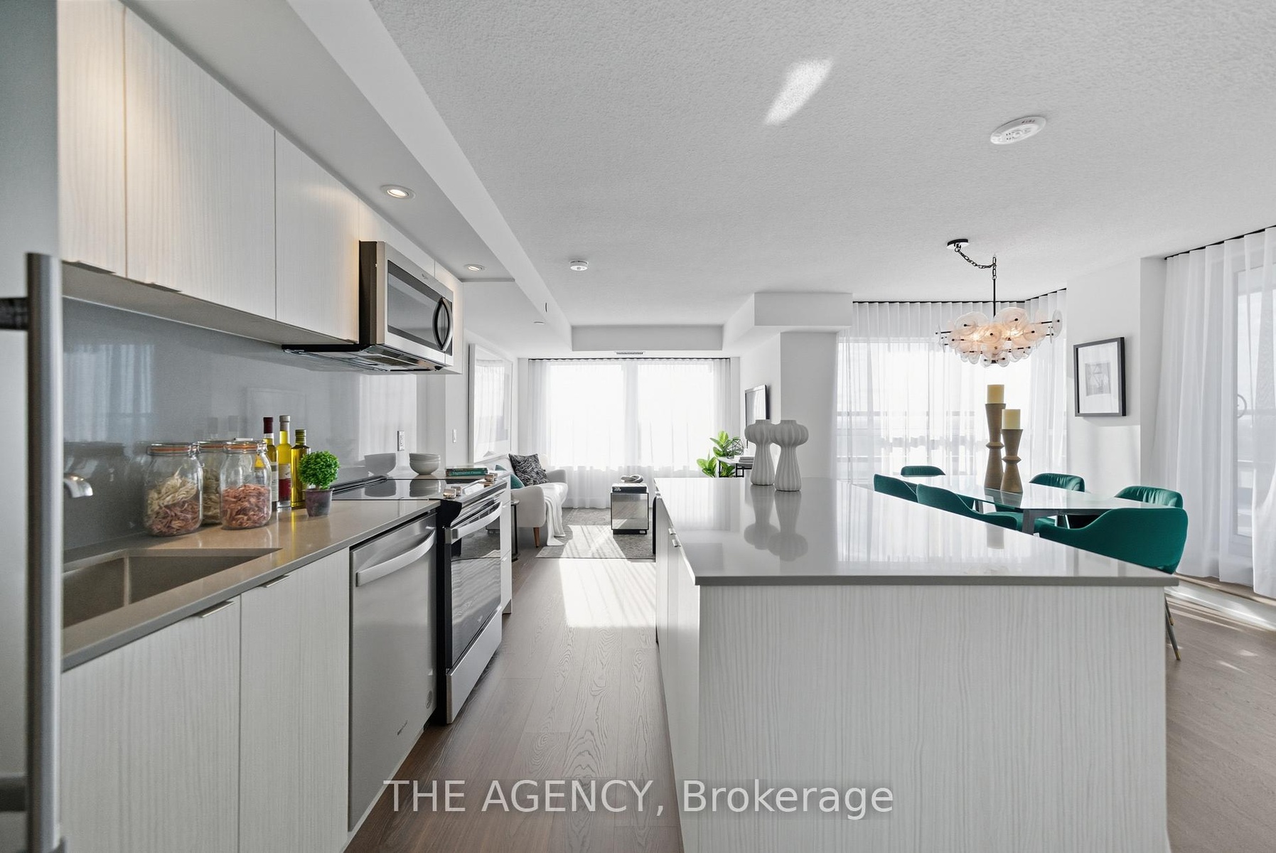 Welcome to 10 Eva Road #2104, a bright and airy 2-bedroom, 2-bathroom suite in Tridels Evermore at West Village. This home boasts a spacious open-concept layout with sleek finishes, pot lights, and floor-to-ceiling windows that flood the space with natural light. The chef-inspired kitchen features a large island, premium stainless steel appliances, and modern cabinetry, flowing effortlessly into the living and dining area's designed with liveable spaces in mind and finished with exceptional attention to detail.The suite offers a thoughtful split-bedroom layout, providing privacy and flexibility. Step onto your wrap-around balcony and enjoy stunning west-facing sunset views, perfect for relaxing evening's. The primary suite includes a walk-in closet and spa-like ensuite, while the second bedroom is ideal for kids, guests, or a home office, offering versatile space for any lifestyle. Enjoy resort-style amenities including a fitness centre, yoga studio, party room, outdoor terrace, children's play zone, and 24-hour concierge. Conveniently located with easy access to Highway 427, the QEW, downtown Toronto, shopping, dining, and transit, this suite combines luxury, comfort, and connectivity. Experience modern living at its finest with endless views and exceptional style at Evermore.