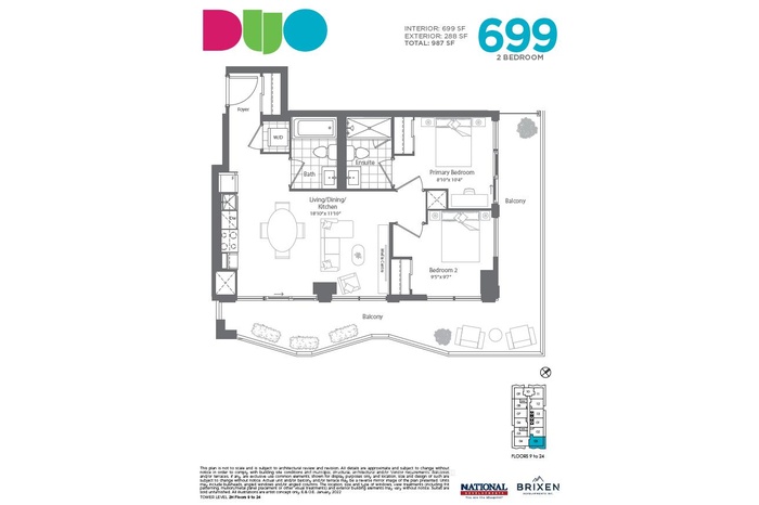 Fantastic Living In The Brand New Duo Condos. 699 sq ft 2 Bed/2 Bath + 288sq ft Wrap Around Balcony, 9' ceiling, wide plank HP Laminate Floors, Designer Cabinetry, Quartz Counters, Back splash, Stainless Steel Appliances. Amazing Amenities ready for immediate Use. Rooftop Patio with Dining, BBQ, Garden, Recreation & Sun Cabanas. Party Room with Chefs Kitchen, Social Lounge and Dining. Fitness Centre, Yoga, Kid's Play Room, Co- Work Hub, Meeting Room. Be in one the best neighbourhoods in Brampton, steps away from the Gateway Terminal and the Future Home of the LRT. Steps to Sheridan College, close to Major Hwys, Parks, Golf and Shopping.