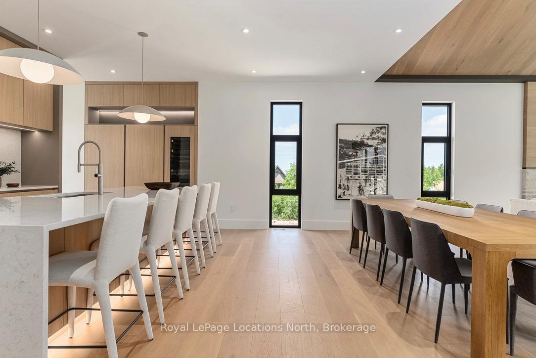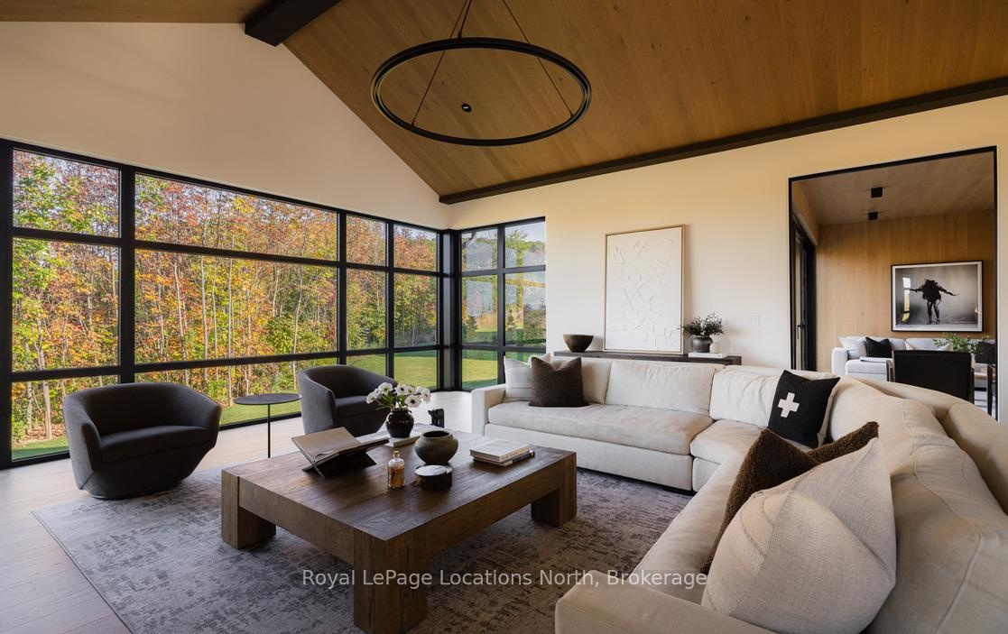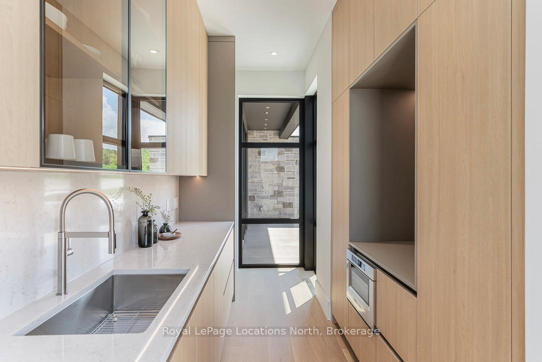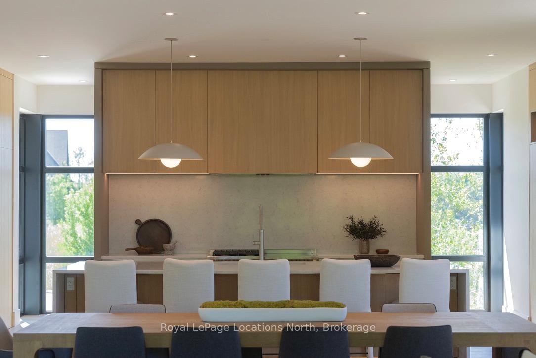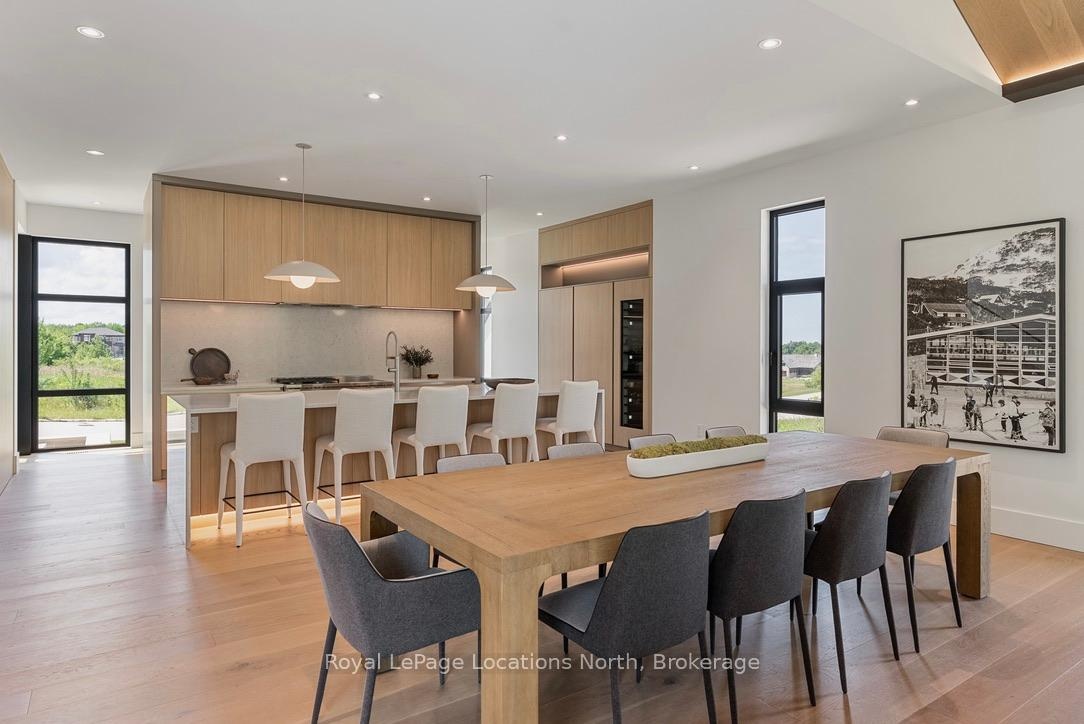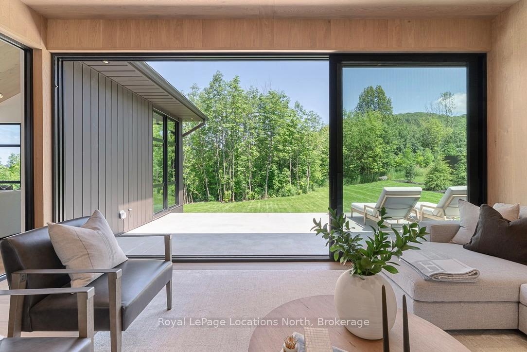 Welcome to this exceptional, architecturally refined residence where luxury, functionality, and design exist in perfect harmony. Thoughtfully curated for elevated living, this high-end custom home is a rare offering that seamlessly blends innovative features with warm, organic finishes. Step inside and be greeted by a striking wall of greenery framed by expansive windows. The great room sets the tone with soaring vaulted ceilings, rich wood accents, ambient mood lighting, and oversized aluminum windows that flood the space with natural light, creating a sense of openness and calm. At the heart of the home lies a dream kitchen, outfitted with a 30" panelled fridge and 30" freezer, a 48" induction/gas combo stove, wine fridge, ample storage and a walk-in pantry complete with a sink, second dishwasher, and built-in coffee station the perfect blend of luxury and function. The spacious dining area flows seamlessly into a heated four-season sunroom. With massive sliding doors leading to the outdoors, this flexible space is perfect for year-round entertaining and relaxed indoor-outdoor living. Main floor powder room with a full shower has been thoughtfully designed with future pool or hot tub access in mind. Upstairs, you'll find three expansive bedrooms, each with custom walk-in closets and spa-inspired ensuites. The primary retreat offers serene escarpment views from bed and a glimpse of the bay from the closet window a peaceful start to everyday. The finished lower level offers exceptional versatility, featuring two oversized bedrooms, a home office, storage, heated floors and a roughed-in wet bar. Whether you envision a media lounge, gym, or guest suite, the possibilities are endless. Perfectly located in one of the areas most desirable communities - hike from your doorstep, stroll to the water, or hop on the Georgian Trail. Just minutes from the Georgian Bay Club, private ski clubs, and the charm of Thornbury. Taxes have not yet been assessed.