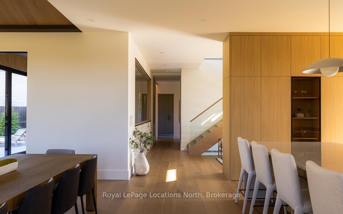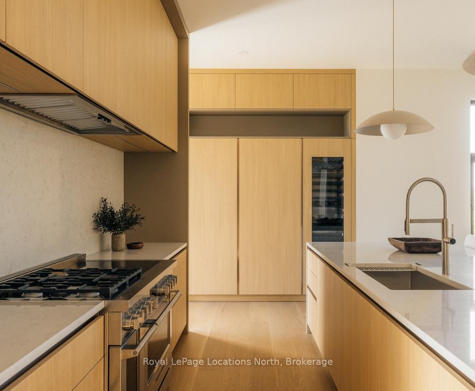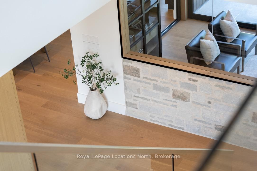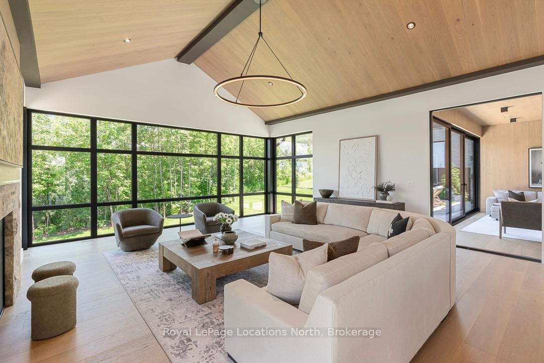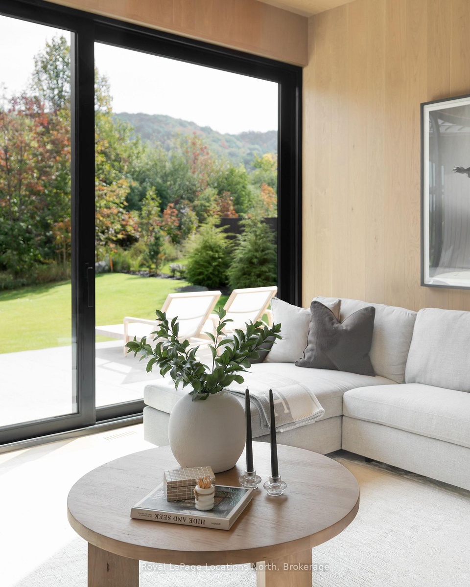 Welcome to this exceptional, architecturally refined residence where luxury, functionality, and design exist in perfect harmony. Thoughtfully curated for elevated living, this high-end custom home is a rare offering that seamlessly blends innovative features with warm, organic finishes. Step inside and be greeted by a striking wall of greenery framed by expansive windows. The great room sets the tone with soaring vaulted ceilings, rich wood accents, ambient mood lighting, and oversized aluminum windows that flood the space with natural light, creating a sense of openness and calm. At the heart of the home lies a dream kitchen, outfitted with a 30" panelled fridge and 30" freezer, a 48" induction/gas combo stove, wine fridge, ample storage and a walk-in pantry complete with a sink, second dishwasher, and built-in coffee station the perfect blend of luxury and function. The spacious dining area flows seamlessly into a heated four-season sunroom. With massive sliding doors leading to the outdoors, this flexible space is perfect for year-round entertaining and relaxed indoor-outdoor living. Main floor powder room with a full shower has been thoughtfully designed with future pool or hot tub access in mind. Upstairs, you'll find three expansive bedrooms, each with custom walk-in closets and spa-inspired ensuites. The primary retreat offers serene escarpment views from bed and a glimpse of the bay from the closet window a peaceful start to everyday. The finished lower level offers exceptional versatility, featuring two oversized bedrooms, a home office, storage, heated floors and a roughed-in wet bar. Whether you envision a media lounge, gym, or guest suite, the possibilities are endless. Perfectly located in one of the areas most desirable communities - hike from your doorstep, stroll to the water, or hop on the Georgian Trail. Just minutes from the Georgian Bay Club, private ski clubs, and the charm of Thornbury. Taxes have not yet been assessed.