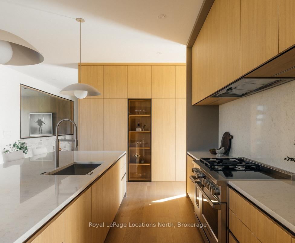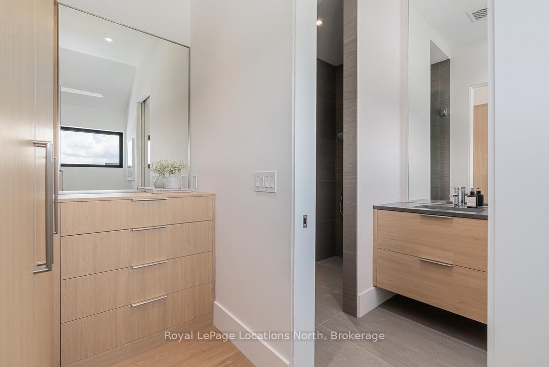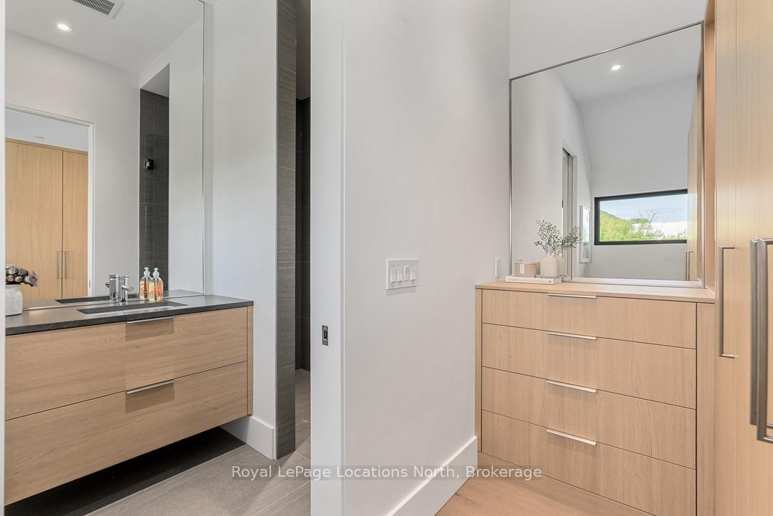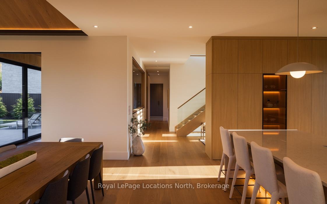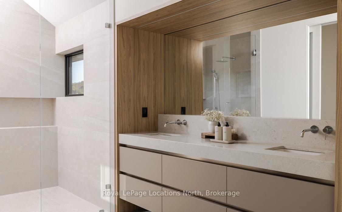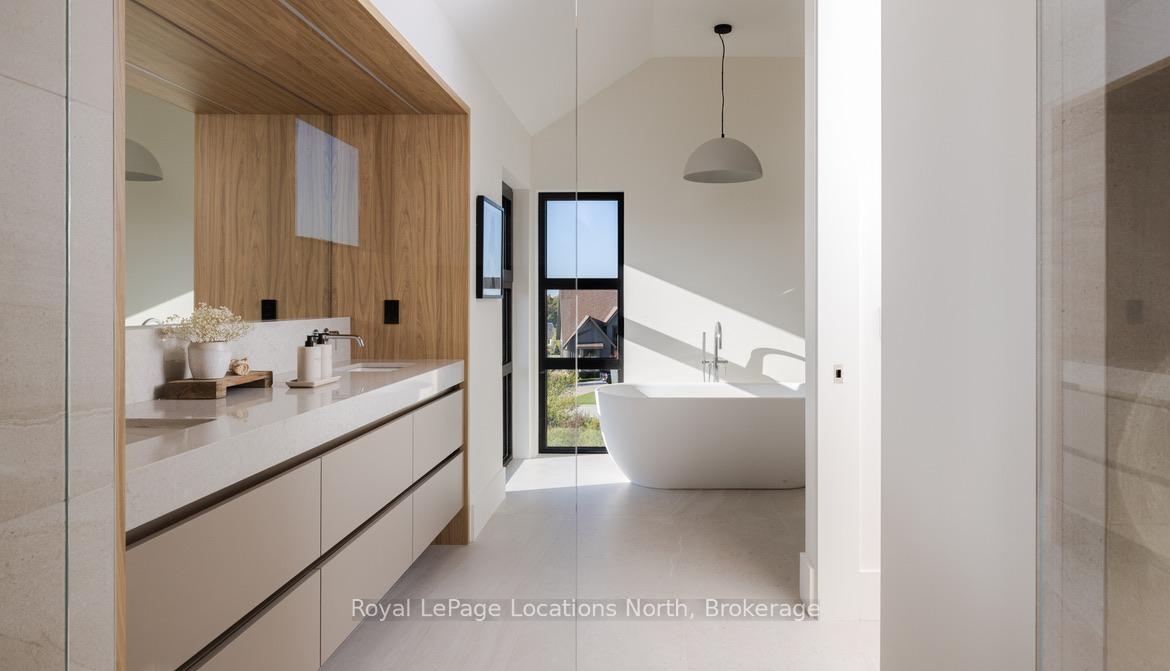 Welcome to this exceptional, architecturally refined residence where luxury, functionality, and design exist in perfect harmony. Thoughtfully curated for elevated living, this high-end custom home is a rare offering that seamlessly blends innovative features with warm, organic finishes. Step inside and be greeted by a striking wall of greenery framed by expansive windows. The great room sets the tone with soaring vaulted ceilings, rich wood accents, ambient mood lighting, and oversized aluminum windows that flood the space with natural light, creating a sense of openness and calm. At the heart of the home lies a dream kitchen, outfitted with a 30" panelled fridge and 30" freezer, a 48" induction/gas combo stove, wine fridge, ample storage and a walk-in pantry complete with a sink, second dishwasher, and built-in coffee station the perfect blend of luxury and function. The spacious dining area flows seamlessly into a heated four-season sunroom. With massive sliding doors leading to the outdoors, this flexible space is perfect for year-round entertaining and relaxed indoor-outdoor living. Main floor powder room with a full shower has been thoughtfully designed with future pool or hot tub access in mind. Upstairs, you'll find three expansive bedrooms, each with custom walk-in closets and spa-inspired ensuites. The primary retreat offers serene escarpment views from bed and a glimpse of the bay from the closet window a peaceful start to everyday. The finished lower level offers exceptional versatility, featuring two oversized bedrooms, a home office, storage, heated floors and a roughed-in wet bar. Whether you envision a media lounge, gym, or guest suite, the possibilities are endless. Perfectly located in one of the areas most desirable communities - hike from your doorstep, stroll to the water, or hop on the Georgian Trail. Just minutes from the Georgian Bay Club, private ski clubs, and the charm of Thornbury. Taxes have not yet been assessed.
