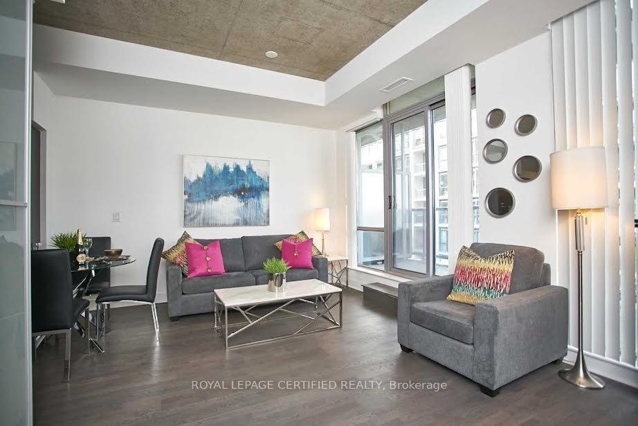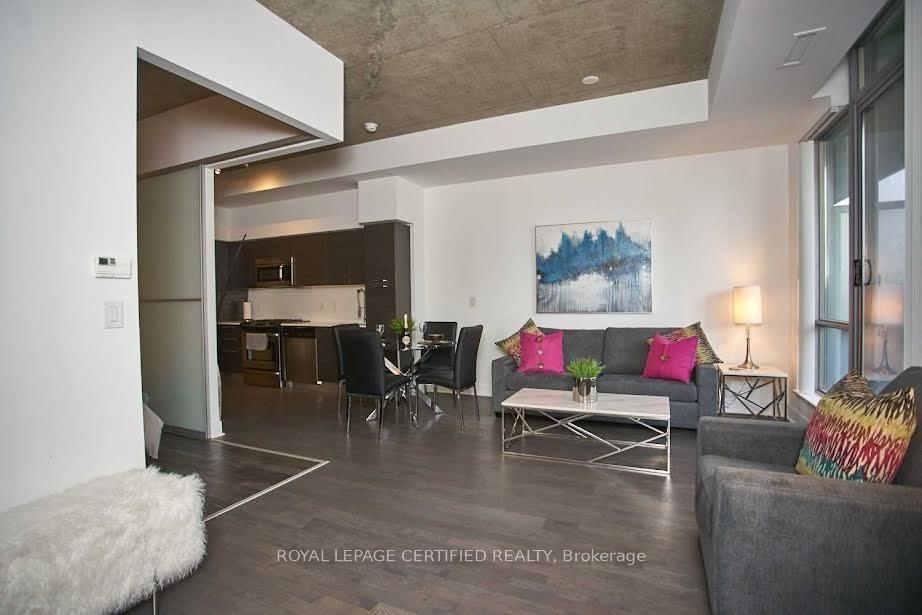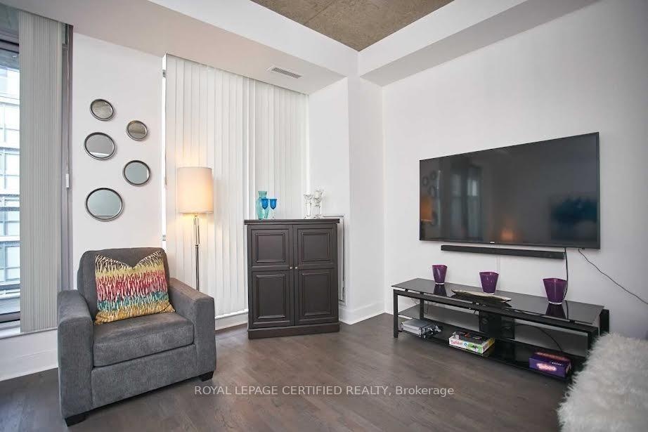 Welcome to Loft 399 in Fashion District. Stunning Views, hardwood floors, built in appliances and walk out balcony. In Trendy King West. W/Soaring 10 Ft Exposed Concrete Ceilings, Beautiful Kitchen W/Gas Stove, Stainless Steel Appliances, Back Splash & Beautiful Counter Tops.