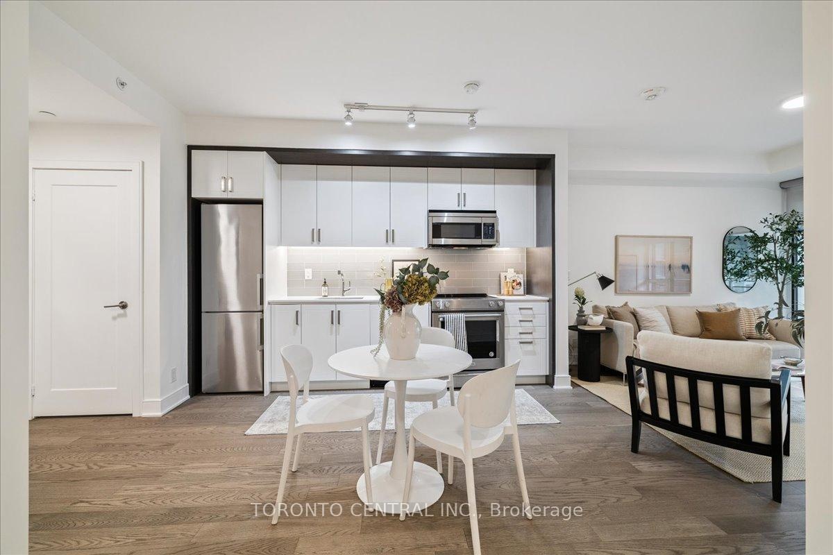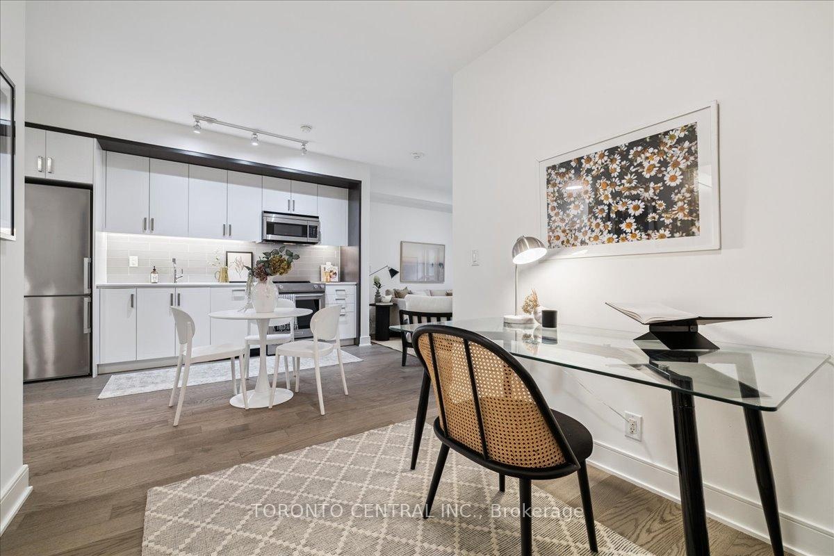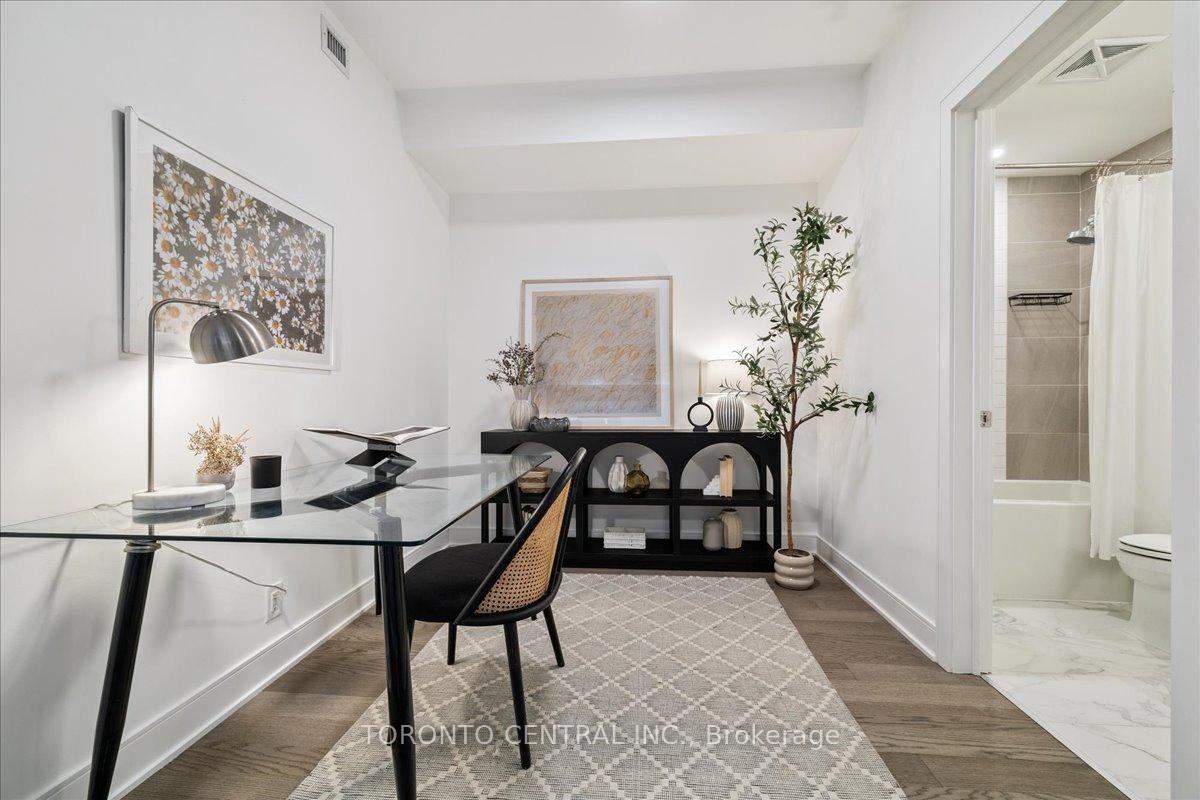 Rare 1 + Den "Oak Park" Floorplan at The Craftsman Condos. Discover sophisticated living in sought-after Clarkson with this impeccably designed suite. This coveted layout features no wasted space, a spacious primary bedroom that easily accommodates a king-size bed, and a massive den versatile enough for a second bedroom, dedicated office, or formal dining area. The home is finished with stunning, modern upgrades: wide-plank engineered hardwood flooring, a paneled dishwasher for a seamless look, and a luxury KitchenAid range/stove. Floor-to-ceiling windows flood the open-concept living area with natural light, creating an inviting atmosphere ideal for entertaining or relaxing. Prime Clarkson Location: Steps to public transit, the lake, parks, hiking trails, schools, places of worship, and the newly opened medical centre right in front of the building. Mere minutes to Clarkson GO Station, Port Credit Village, and QEW. Nearby grocery stores, cafes, and restaurants provide everything at your doorstep.Enjoy premium amenities, including a wrap-around rooftop deck patio, fully equipped gym, concierge, party room, and guest suites. One parking space and one locker included. Perfect for first time buyers, downsizers, professionals, or investors this rare Craftsman gem offers modern luxury and unmatched convenience in one of Mississaugas most desirable communities.