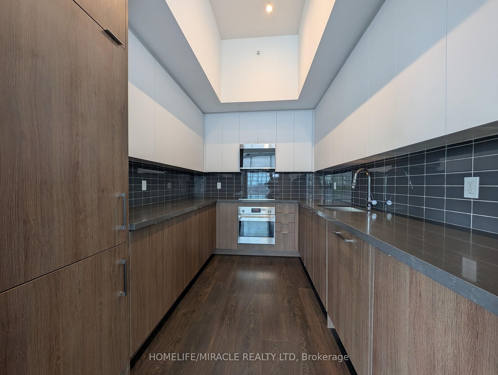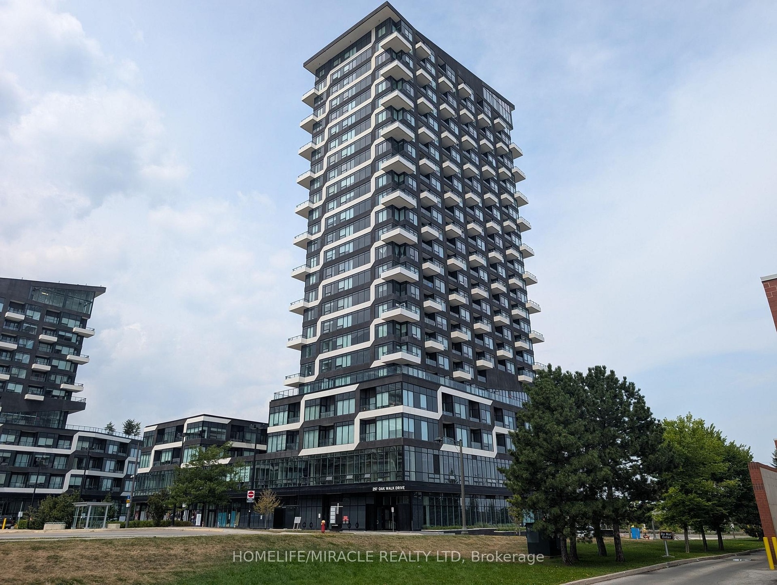 Experience Unmatched Luxury in One of Ontario's Top School Districts! Discover one of the largest and most sought-after units in Oakville's vibrant Uptown Core. This stunning 3-bedroom plus den, corner suite offers a sprawling open-concept layout with two full washrooms, providing an ideal living space for any family. You'll be captivated by the soaring high ceilings and an abundance of natural light streaming in from the desirable southwest exposure. The suite features seamless laminate flooring throughout, tasteful window coverings, and three private balconies that offer exceptional views of the surrounding area. The building itself, known as Oak & Co. Condos, provides residents with an array of premium amenities that elevate daily living. Enjoy access to a state-of-the-art fitness center, a yoga studio, an outdoor pool, and a stylish party room for entertaining. Concierge service, visitor parking, and two side-by-side parking spots add to the convenience and security. The location is truly unbeatable. In addition to being steps away from a vast shopping center, diverse cafes, gourmet restaurants, grocery stores, and banks, this address is situated within one of Ontario's most highly-regarded school districts. Commuting is a breeze with easy access to the Trafalgar GO Station and major highways including the 407 and 403. The new Oakville Trafalgar Memorial Hospital and Sheridan College are also just a short drive away. This is more than just a home; it's a lifestyle. Enjoy the perfect blend of modern amenities, urban convenience, and the natural beauty of the surrounding parks, creeks, and walking trails. Don't miss this opportunity to live in a community that offers both an exceptional home and an outstanding education for your family. 2 Parking Spots