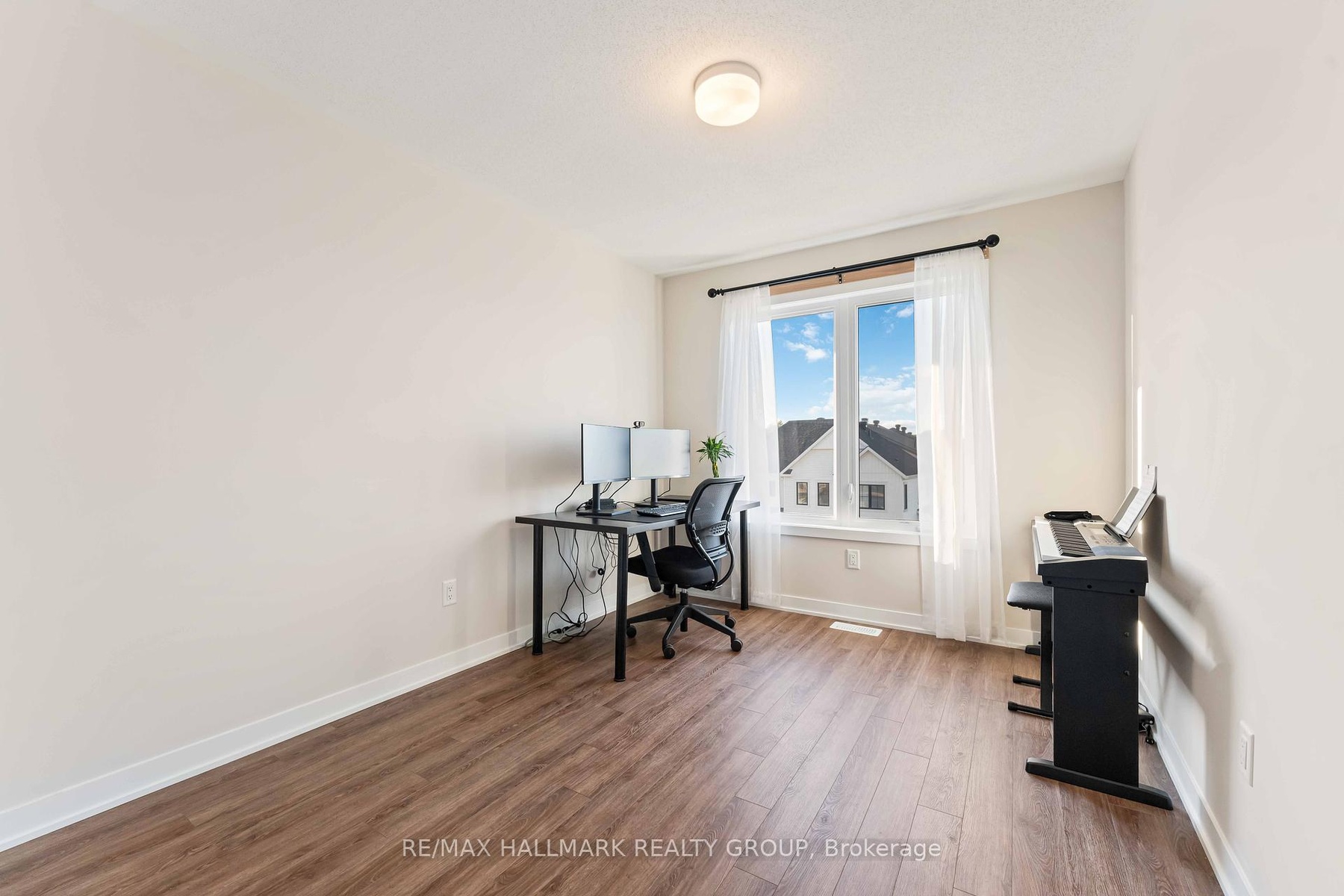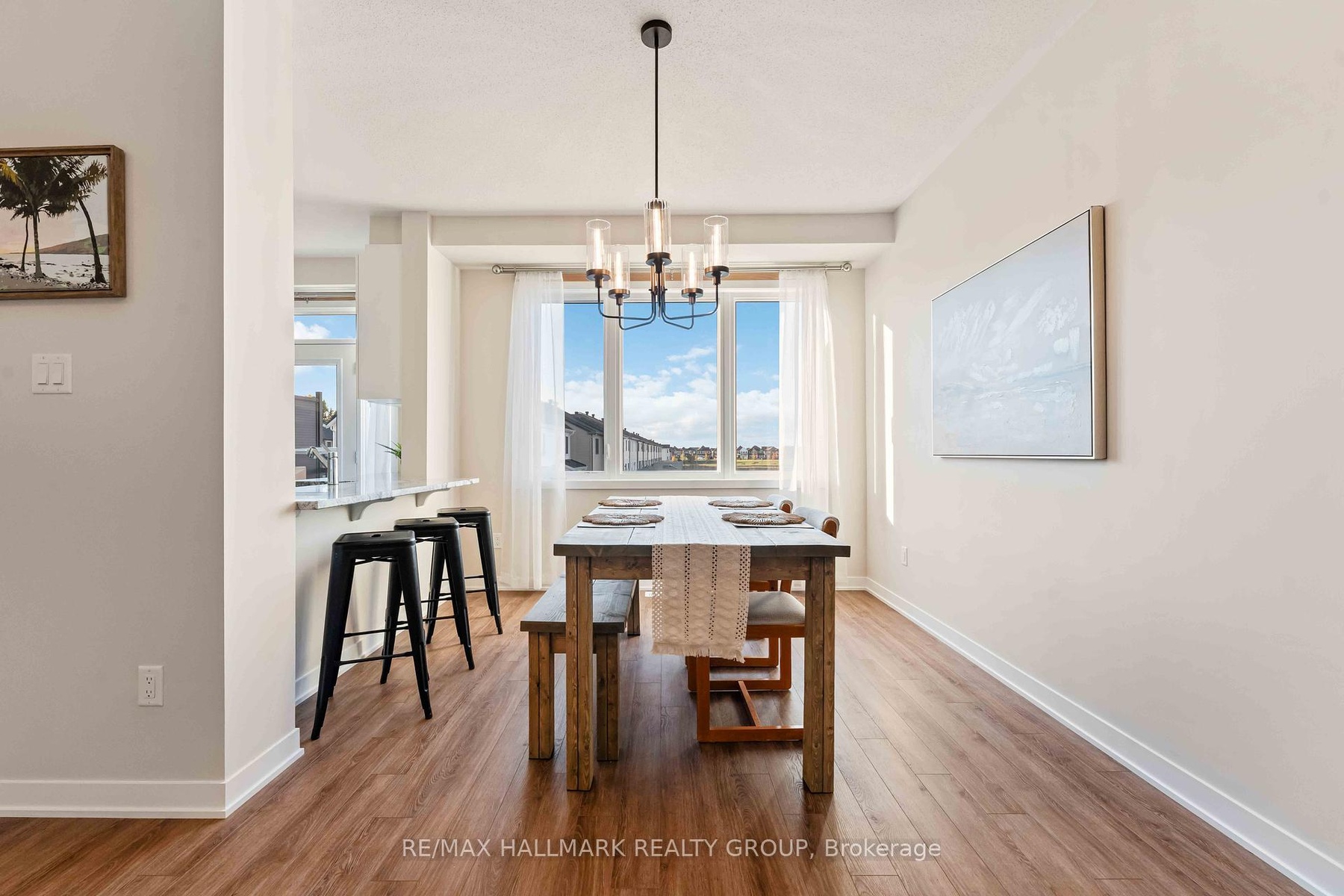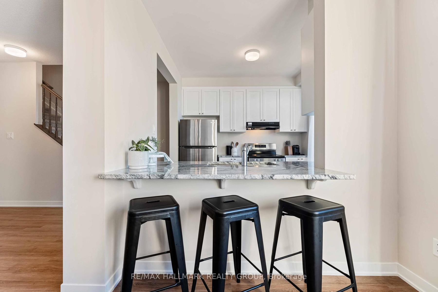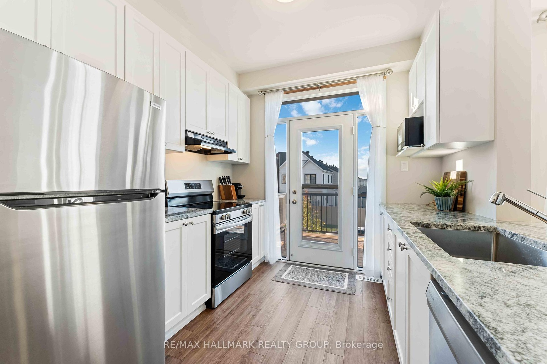 Sophisticated, sunlit, and simply rare welcome to 629 Quilter Row in Richmond Meadows, where modern design meets small-town charm. This nearly new 2-bedroom, 3-bath Village townhome by Mattamy Homes sits in one of the community's most desirable locations, directly across from Babe MacRae Park and the site of a future proposed school, offering open views and lasting privacy with no new neighbours ever across the street. Designed for comfort and style, this home enjoys westerly sun exposure and three levels of carpet-free living finished in luxury vinyl plank flooring. The kitchen impresses with hardwood painted cabinetry, taller upper cabinets, granite counters with an extended breakfast bar, and a large undermount sink. Bathrooms are elevated with quartz countertops, undermount sinks, and a glass walk-in shower in the ensuite. Every detail feels intentional, from railings in all possible locations to mirrored entry closets and an upgraded underpad on the stairs for extra comfort. Complete with central A/C, water softener, dehumidifier, and included washer for laundry, this is a true freehold townhome - no condo fees, no road fees, and no rental equipment. Still covered under Tarion warranty, it offers a rare opportunity to own an upgraded, move-in-ready home at a price point that's nearly impossible to find new in Richmond. With a flexible January 2026 closing, this one checks every box for smart buyers planning their next move with intention.