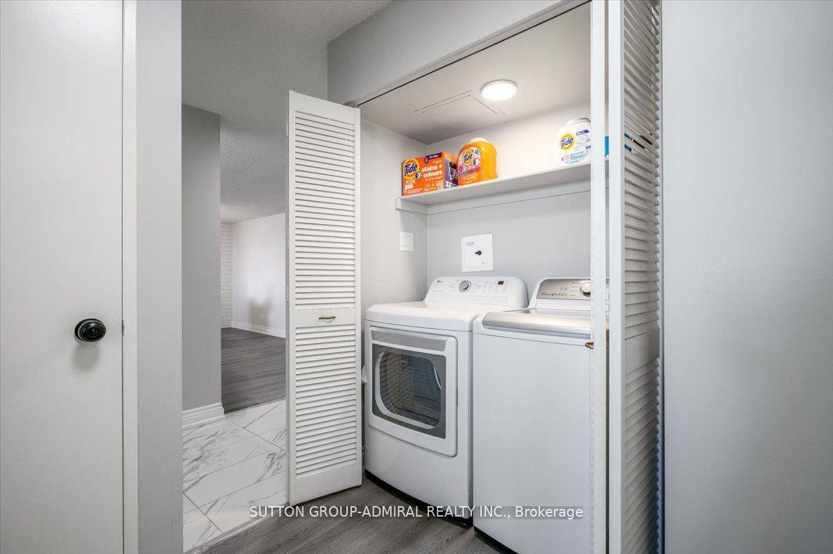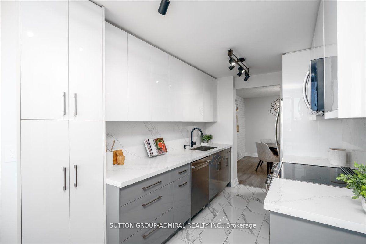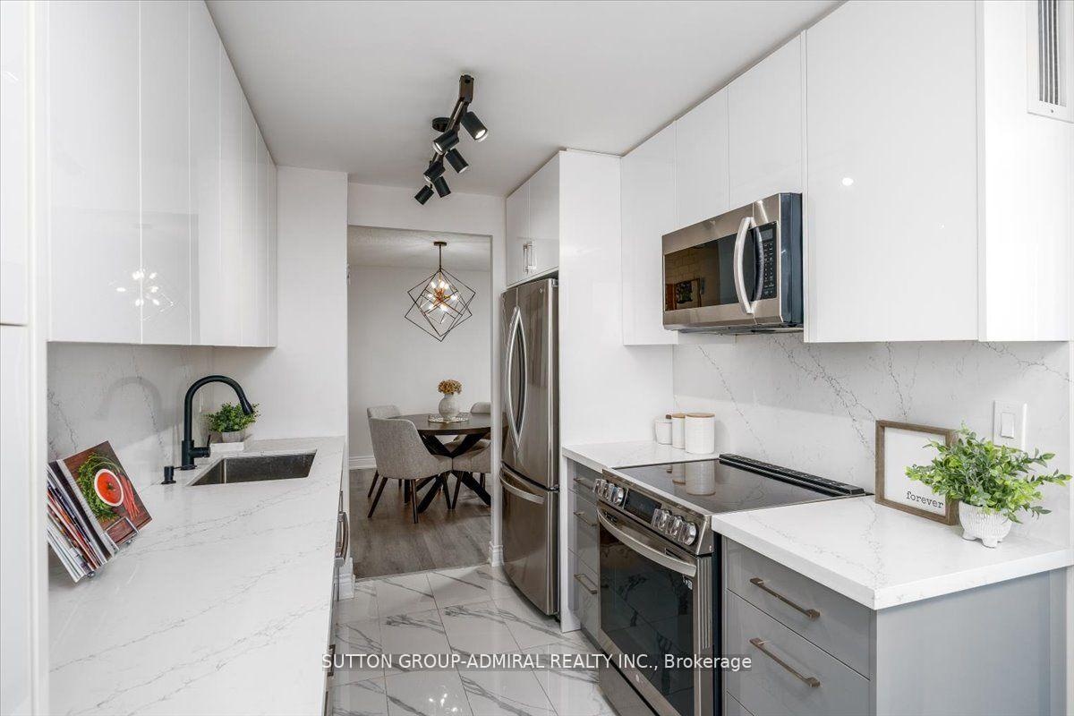 Step into elegance with this exquisite, fully renovated 2-bedroom + den, 2-bathroom condo in the prestigious North York community. Nestled amidst the lush, serene landscapes of G. Ross Lord Park, this meticulously upgraded 1,060 sq. ft. residence offers an unparalleled blend of sophistication and modern comfort. Designed with a seamless open-concept layout, the space is bathed in natural light, accentuating the rich vinyl flooring and carefully curated finishes.The gourmet kitchen is a chef's dream, featuring stunning quartz countertops, and backsplash,and top-of-the-line appliances (only 3 years new). The versatile den serves as the perfect home office, an inviting third bedroom, or a charming playroom. Indulge in the convenience of an en-suite locker, providing ample storage without compromising on style. Every detail has been thoughtfully designed to offer the perfect balance of luxury and functionality. The building offers excellent amenities including a gym, pool, sauna, ping pong and billiards room, with a bus stop to finch station commuting and outdoor activities are effortless plus the highly anticipated new Centennial library set to open in 2025. Combining pace, comfort and convenience this condo is a fantastic place to call home!