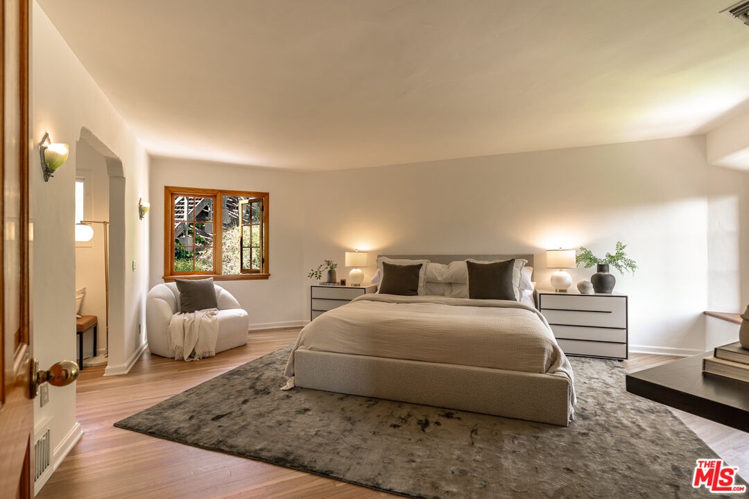 DescriptionAs one of Hollywoodland's original landmark homes, this French Normandy Revival c. 1927 holds a place of distinction among the storied hills. Designed by Hollywood architect Charles David Grolle, this exquisite property is set on two lush lots with a mini vineyard and totaling nearly half an acre of manicured grounds. From the moment you arrive, the home's craftsmanship and architectural pedigree are undeniable. The journey begins with a grand entry spiral staircase leading to a formal dining and great room. The residence then unfolds across three en-suite bedrooms. There is also a private entry-1 bedroom, 1 bath studio with recording space, that has over the years hosted a long list of celebrated recording artists including Wendy & Lisa, Prince, Grace Jones, Seal, Steve Perry and countless others. Discover beautifully refinished hardwood floors, custom kitchen with porcelain tile and Viking appliances, colorful stained-glass windows, arched windows and period light fixtures throughout. Plum, pomegranate, Fuji apple and avocado trees adorn this sweeping street-to-street lot with multiple outdoor spaces, two custom gated entries, a bonus art studio, expansive red oak deck, stone walls, gravel paths and endless hillside views. This is a rare opportunity to own an authentic piece of Los Angeles' golden era of design. First time on the market in 40 years, living here means becoming part of a neighborhood that values preservation, beauty, and the unique character that has defined Hollywoodland for nearly a century.Amenities- Breakfast Nook
