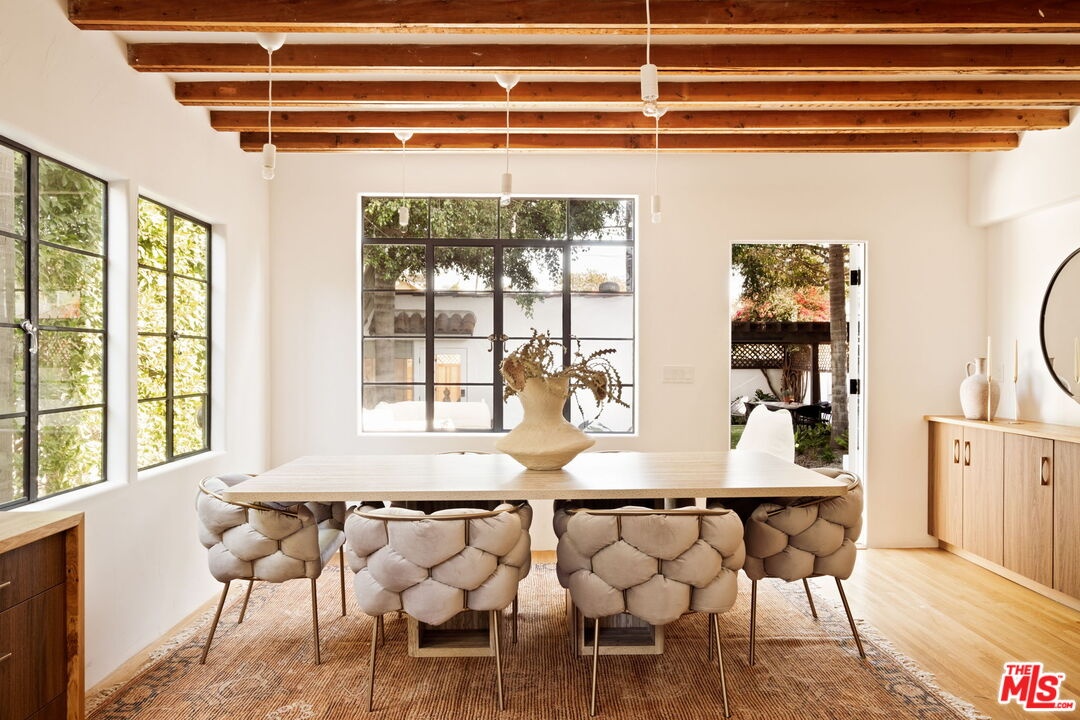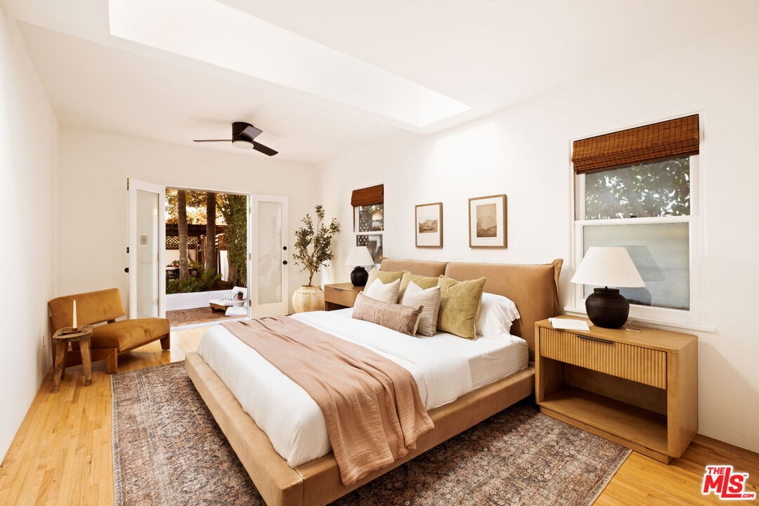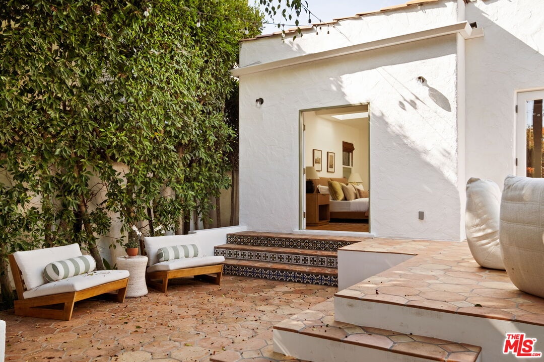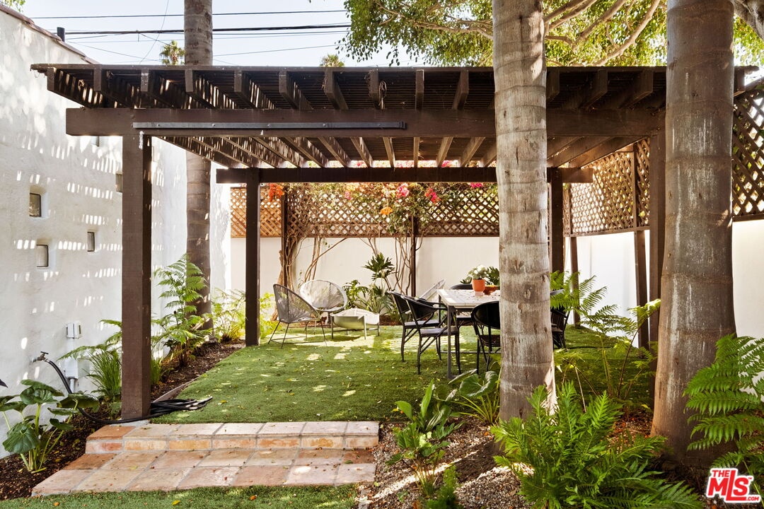 There's a quiet kind of beauty here - sunlight filtering through arched windows, soft shadows on plastered walls, and a feeling that you've arrived somewhere that instantly feels like home. This gated single-level Spanish home blends timeless charm with a modern, soulful warmth. Hardwood floors and a classic fireplace anchor the living room, softened by natural light that drifts through skylights above. The newly remodeled kitchen feels both refined and relaxed, with sleek cabinetry, beamed ceilings in the dining area, and steel-framed windows framing views of the garden. The dining area opens wide to the backyard - an outdoor sanctuary layered with terra cotta tile, mature trees, and a pergola for dining beneath string lights. French doors from the primary suite open to the same lush retreat, creating a seamless indoor-outdoor rhythm. A detached studio with kitchenette and bath offers an inspiring space for guests or creative work. Just two blocks from the shopping and dining on Abbot Kinney Blvd, 538 Westminster captures the ease and artistry of Venice living.