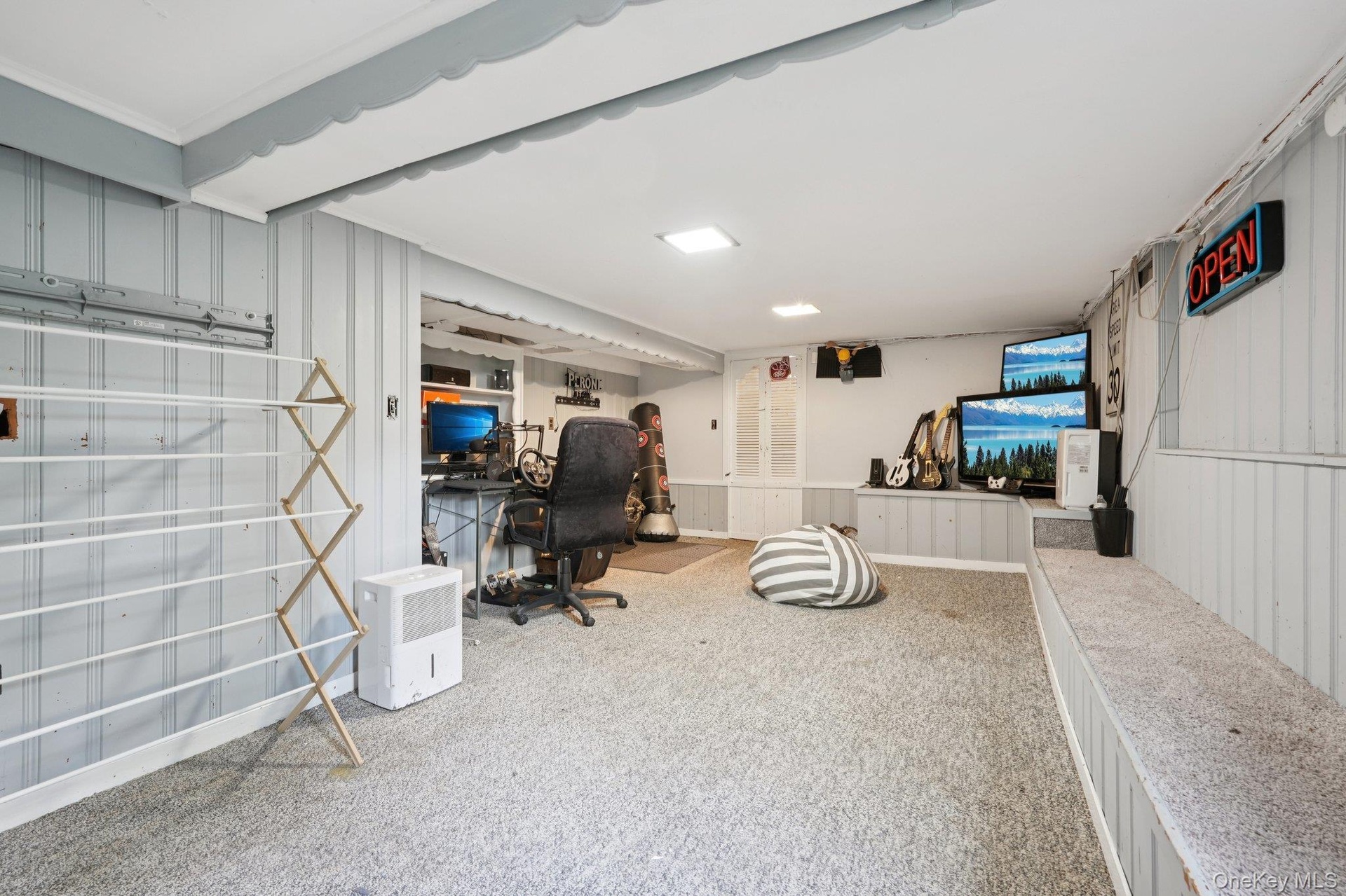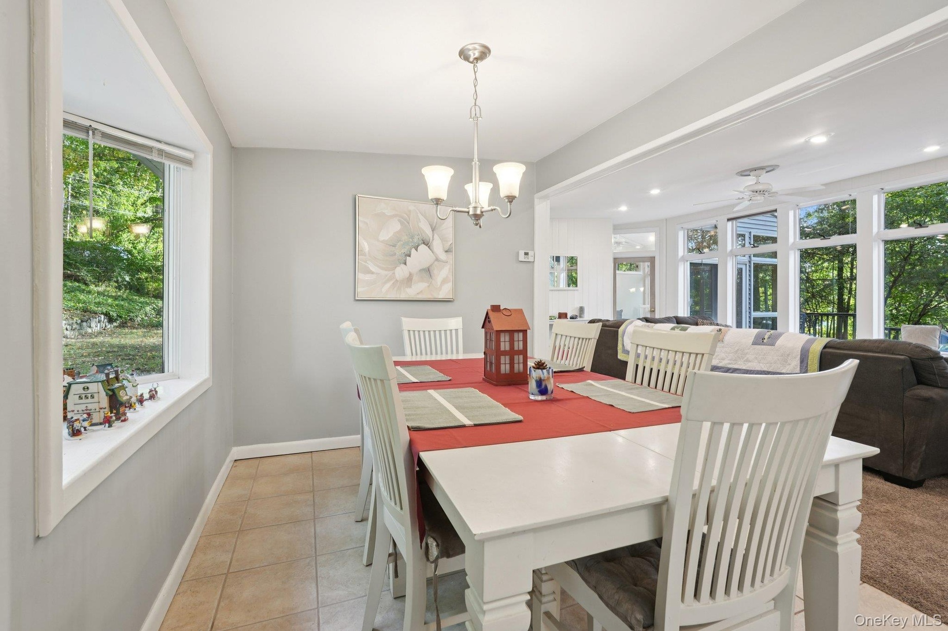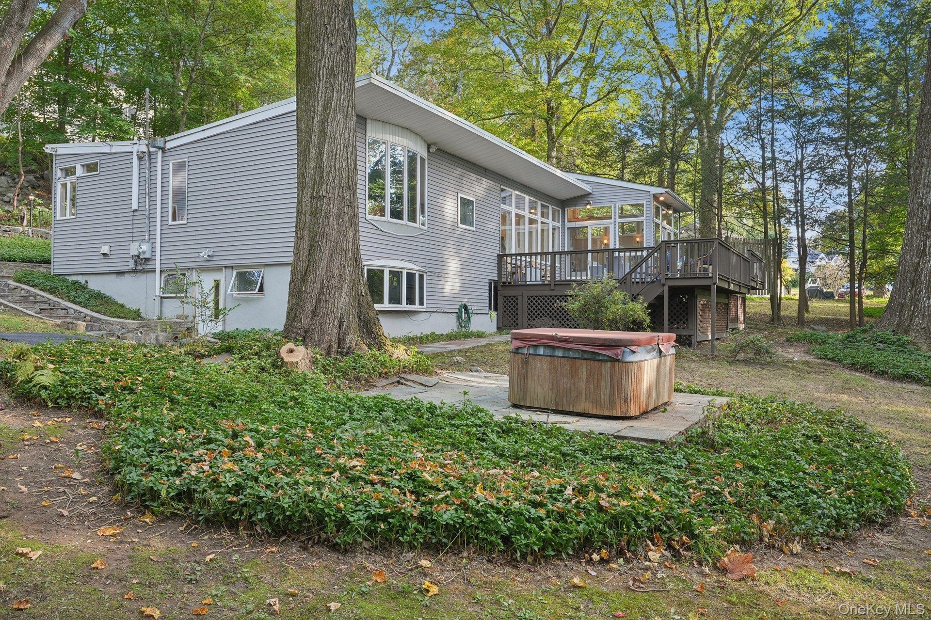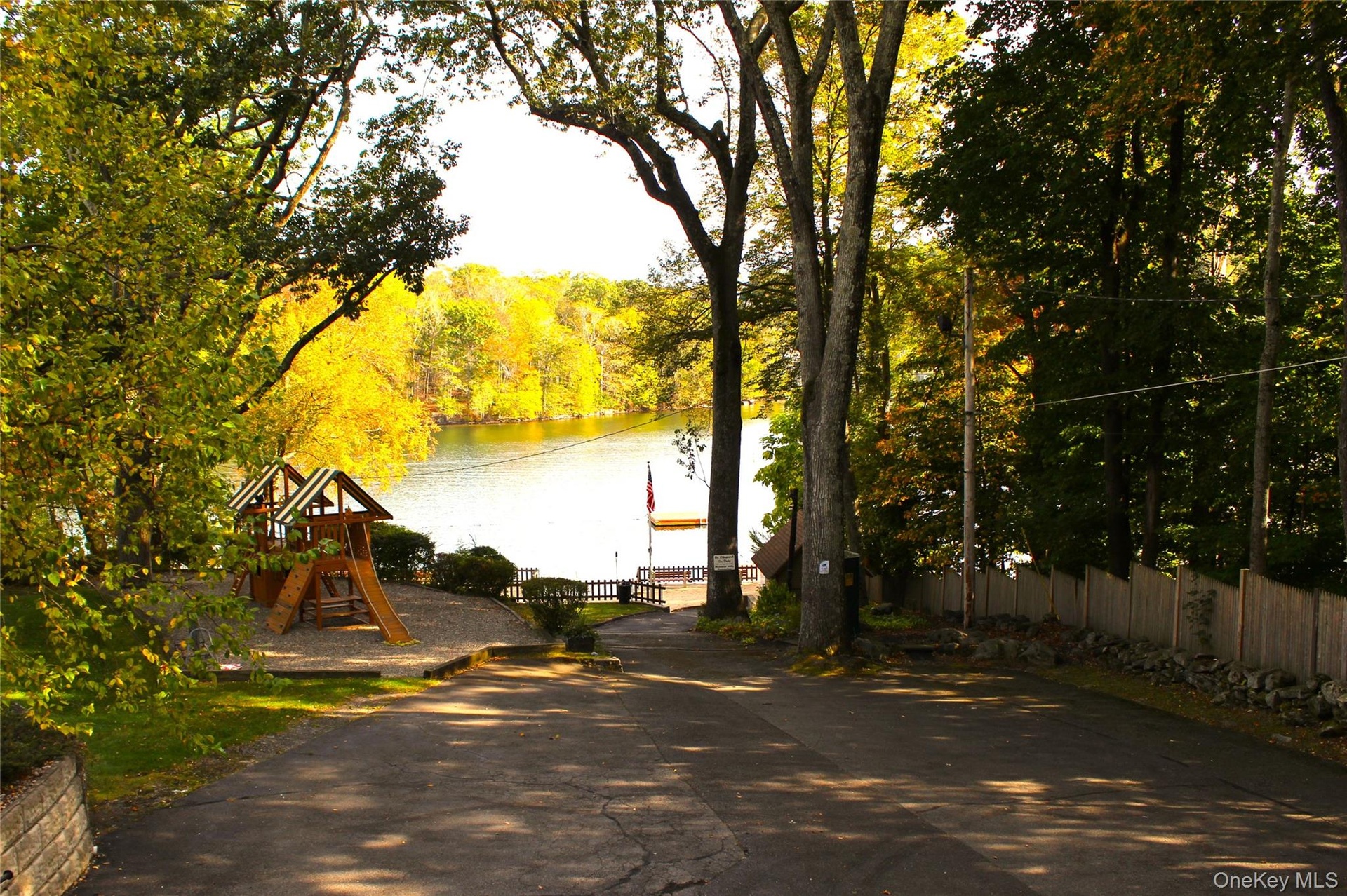 Don't miss the opportunity to own this unique property that offers privacy, views, and exclusive lake access. Welcome to a private contemporary ranch offering the perfect blend of modern living and natural serenity. Situated on a beautifully landscaped property, this home boasts seasonal water views and overlooks a 50-acre wooded greenbelt, ensuring a tranquil, picturesque setting. This 3 bedroom, 2.5 bath home features a spacious, open-concept floor plan, ideal for family fun and entertaining. The living room is the heart of the home, showcasing a cozy fireplace and dramatic oversized windows. Culinary enthusiasts will adore the sun-lit eat-in kitchen. Off the main living area, a gorgeous 4-seasons sunroom provides a peaceful retreat and opens directly onto a large entertainment deck with truly great views—perfect for al fresco dining or morning coffee. The home also includes a partially finished basement offering incredible flexibility. This expansive space with seperate entrance could serve as a dedicated home office or business center, an ideal in-law space or the ultimate man cave. Outside, you'll find a detached 4-car tandem garage, providing ample storage for vehicles, hobbies, or equipment. Best of all, this property comes with deeded lake rights to the sought-after Lake Mahopac, including access to a 100-foot sandy beach—your passport to summer fun!