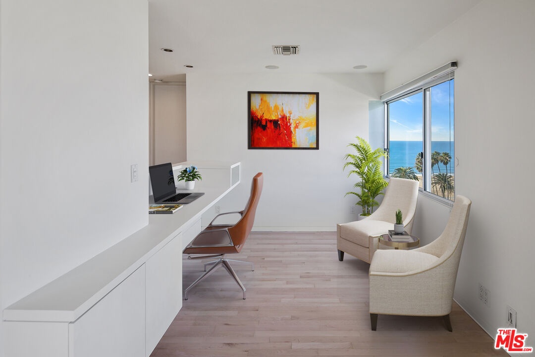 Experience the best of Santa Monica living along the highly coveted Ocean Avenue. This open concept corner unit boasts some of the best views around from magical coastline and sunsets to snow capped mountains in the winter from nearly every angle. Originally a 2 bedroom unit that has now been opened up to a large 1 bedroom + office/den it could easily be converted back into 2 if one needs. An updated kitchen with breakfast bar opens to the dining area with custom built-ins. A spacious living room gives way to ocean views, a private balcony, and a custom office nook. The primary suite offers another incredible view and plenty of closet space. All of this in close proximity to the best of Santa Monica - including world class dining, shopping, entertainment, farmers markets, fitness studios, parks, and the beach! Also available for sale at $1,675,000.
