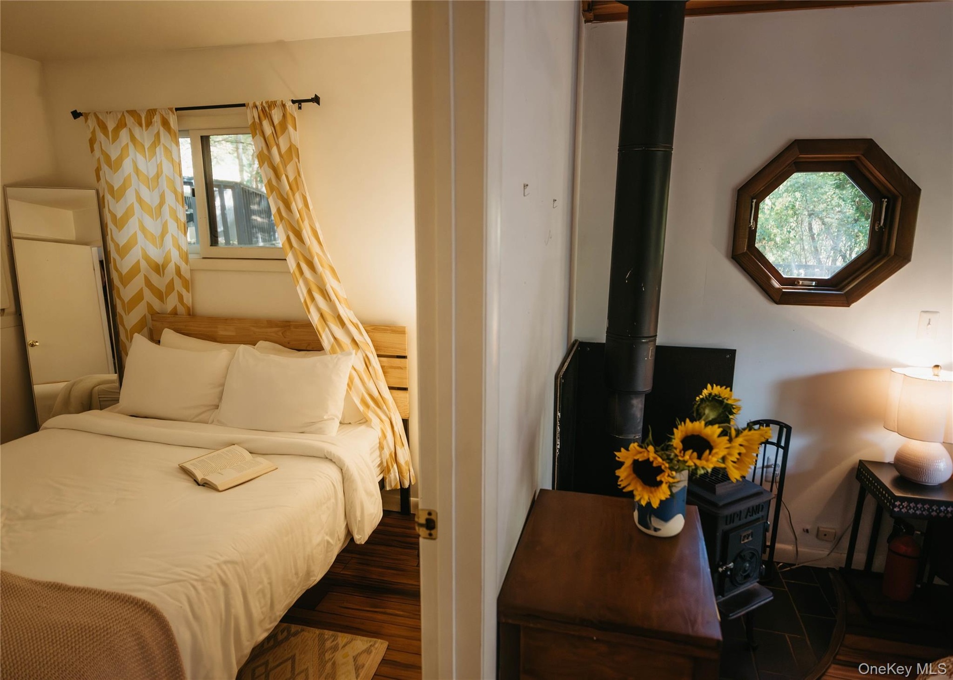 - Bedroom featuring multiple windows, a closet, and baseboard heating