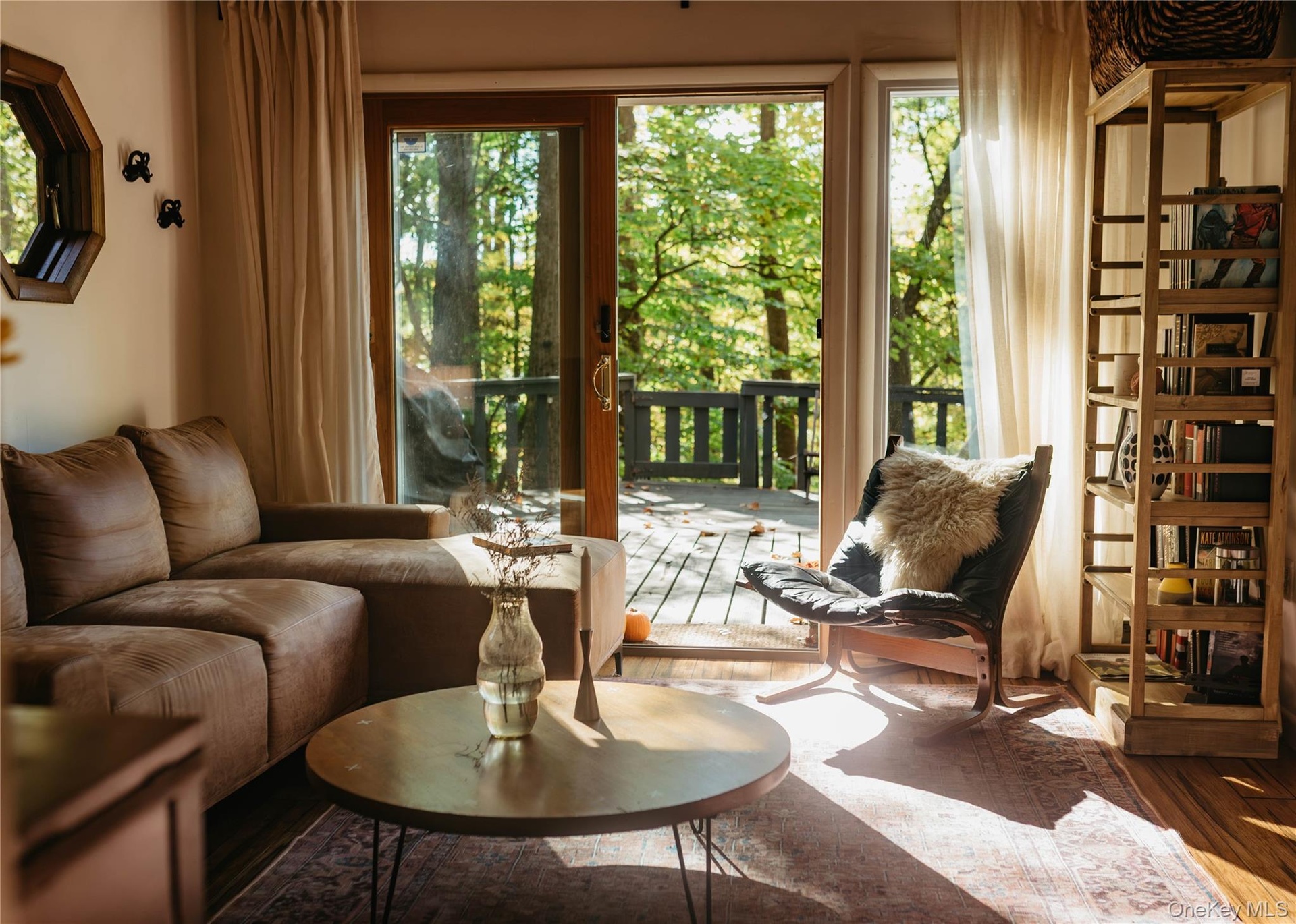 Tucked away on 15. 25 wooded acres, this rustic Kerhonkson retreat perfectly balances country charm with resort style living.