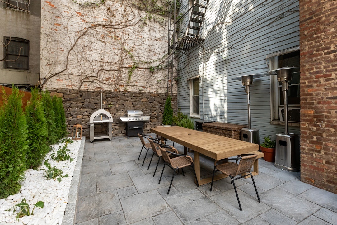 Step outside to experience the showpiece of the property: a brand-new, reimagined backyard oasis. This outdoor sanctuary is fully outfitted with a built-in BBQ, wood-fired pizza oven, fire pit, and elegant teak furniture-a true respite from the city's bustle and one of the most coveted private outdoor spaces in Williamsburg.