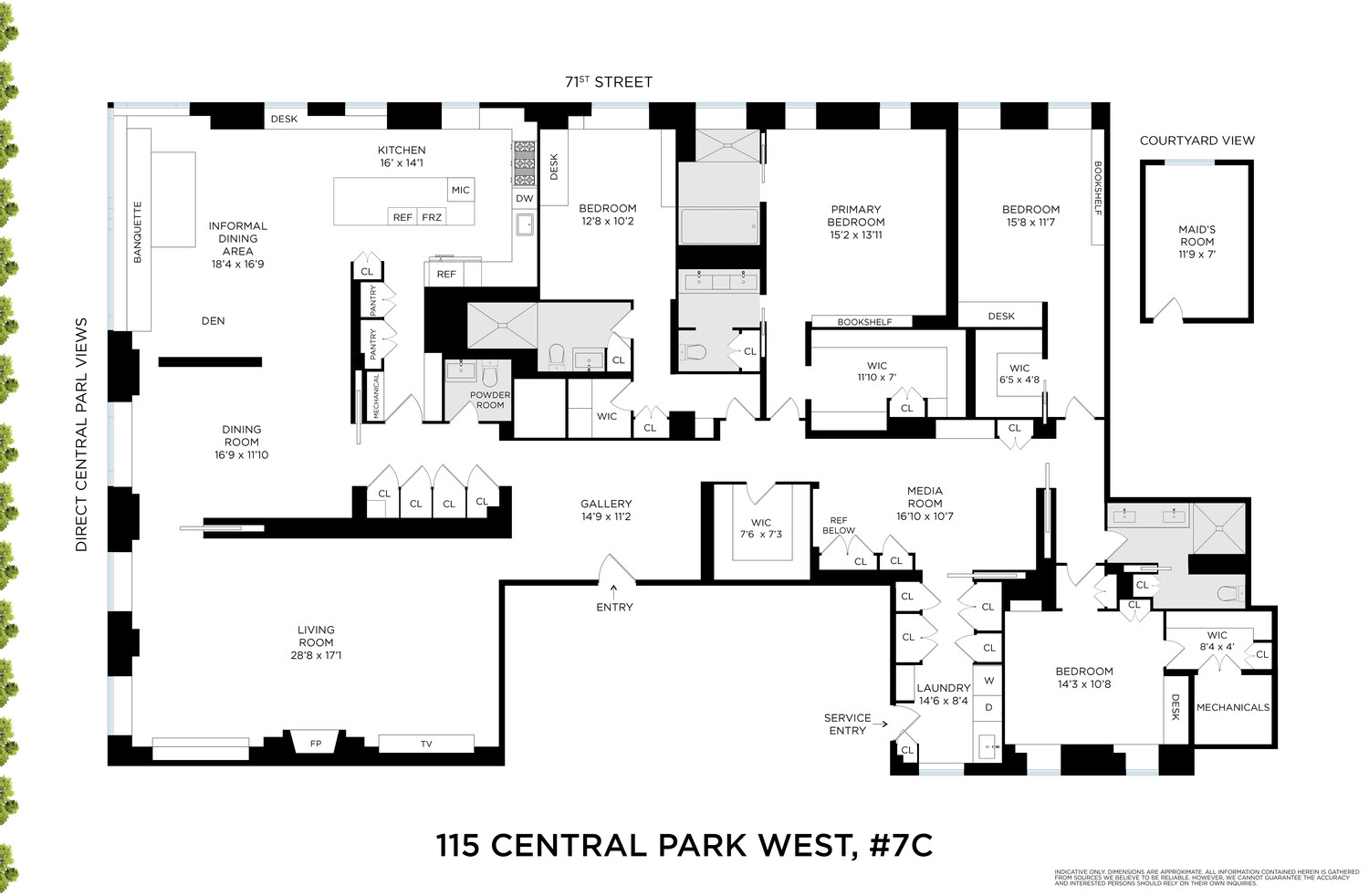 Enter via a semi-private landing into a grand entry gallery, where you are immediately greeted by sweeping views of Central Park. The sun-filled corner living room offers panoramic Park views through oversized windows and flows seamlessly into the generously scaled formal dining room, also fronting the Park. These beautifully proportioned rooms provide an elegant setting for entertaining.