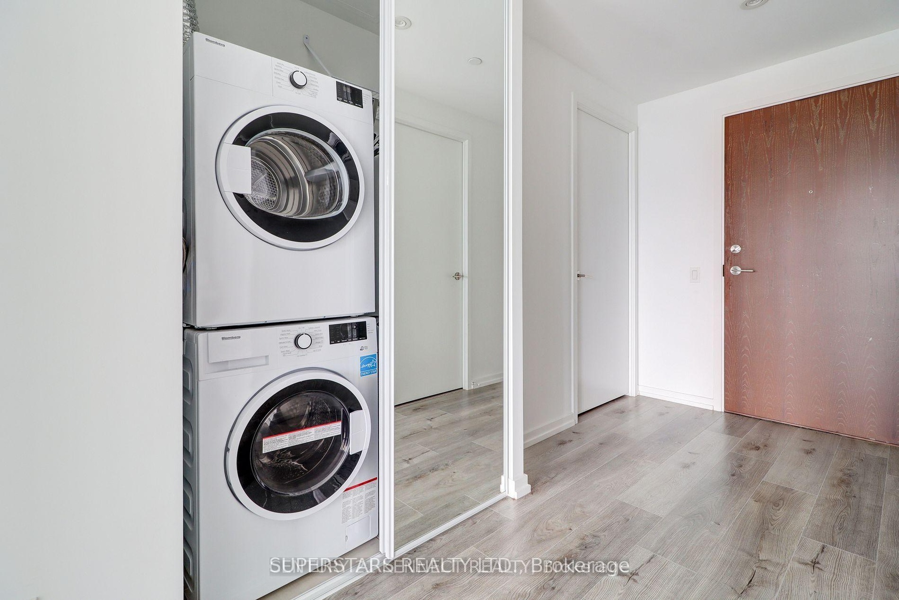 Modern 1+1 Condo with 2 Full Baths, Locker & Stunning South Views!This bright corner unit features a functional layout with 9-ft ceilings, floor-to-ceiling windows, and laminate flooring throughout. The den with door can easily serve as a second bedroom, with convenient access to a full bath. Enjoy a modern kitchen with almost new appliances and walk-out to a large south-facing balcony showcasing breathtaking sunny views of the city and park. One locker included for extra storage.Experience hotel-style amenities rooftop pool with cabanas, basketball and squash courts, dedicated yoga spaces, and a massive state-of-the-art fitness zone.