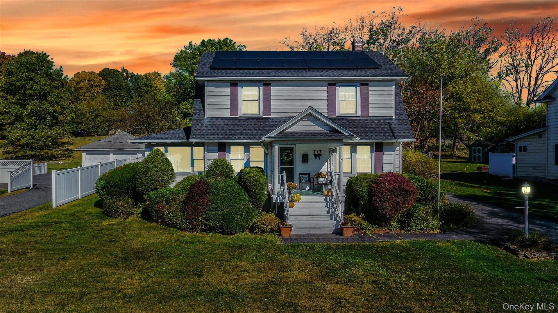 Charm and Elegance Await in This Beautiful Village Home! Step into this stunning 4-bedroom, 2-bath residence offering more than 2,600 sq. ft. of timeless character and modern comfort. Nestled in the heart of the Village, this home welcomes you with warmth, style, and plenty of space for living and entertaining. The spacious country kitchen features granite countertops, butcher block island and ample room for cooking and gathering. The spectacular 22' x 22' great room is the heart of the home, showcasing a stone fireplace, cathedral ceilings, recessed lighting, and French doors that open to a peaceful patio and garden. Natural light floods the space through large windows and charming stained-glass accents, creating a perfect blend of charm and sophistication. Relax and unwind in your classic clawfoot tub, or step outside to enjoy the expansive yard—ideal for entertaining, gardening, or quiet evenings outdoors. The home includes an additional lot, totaling 0.89 acres for both properties. The home also features newer mechanicals including a hot water heater, furnace, solar panels, and roof for peace of mind. Located just a short stroll to the heart of the Village of Florida, you’ll love being part of a vibrant community filled with restaurants, shops, schools, and year-round festivals. All this — just 60 miles to NYC and close to Route 6, Route 17, and 17A — provides the perfect blend of small-town charm and commuter convenience.