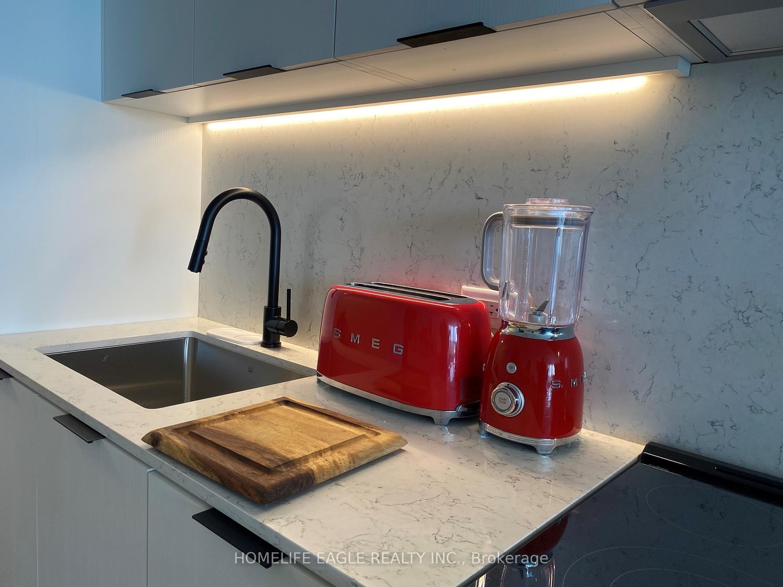 The Harbour House - Collingwood's most talked-about residence. Celebrated for its award-winning design, this iconic condominium is located in the heart of downtown Collingwood, on the water, and just a 10-minute drive to Blue Mountain, offering the perfect blend of lifestyle, luxury, and convenience. The fifth-floor suite features one bedroom plus an oversized den that works perfectly as a second bedroom. Includes a spacious private terrace, underground parking, and a locker. Scandinavian-inspired minimalism defines the open-concept layout, with a sleek kitchen, quartz countertops, upgraded built-in appliances, and a sunlit living area framed by floor-to-ceiling windows. Nine-foot ceilings, engineered hardwood floors, natural finishes, and energy-efficient details combine elegance with modern comfort. Amenities: concierge service, a rooftop terrace with panoramic water views, a stylish party lounge, a media and games room, a fitness studio, a pet spa, a gear prep room, and two guest suites. This rare offering delivers true luxury living steps from Collingwood's waterfront trails, boutique shops, and celebrated dining. Custom blinds are being installed for added comfort and privacy. Terrace furniture is included, offering a ready-to-enjoy outdoor living space.