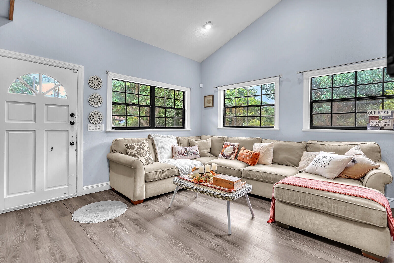 DescriptionWelcome to your private oasis in the heart of Haverhill. Set on nearly one acre (0.88 acres) of beautifully landscaped land, this charming 3-bedroom, 2-bathroom ranch-style home with a loft combines character, comfort, and upgrades.Enter through the remote-controlled private gate and follow the long winding gravel driveway that leads you through lush landscaping with a variety of fruit trees. The property is fully fenced, features a complete irrigation system with a new well and pump, and includes a 150-gallon propane tank. property highlights electrical panel, installed just a few months ago. water heating tankless.Enjoy the wraparound porch and large screened-in patio, the perfect spots for morning coffee or relaxing evenings, complete with a new outdoor kitchen