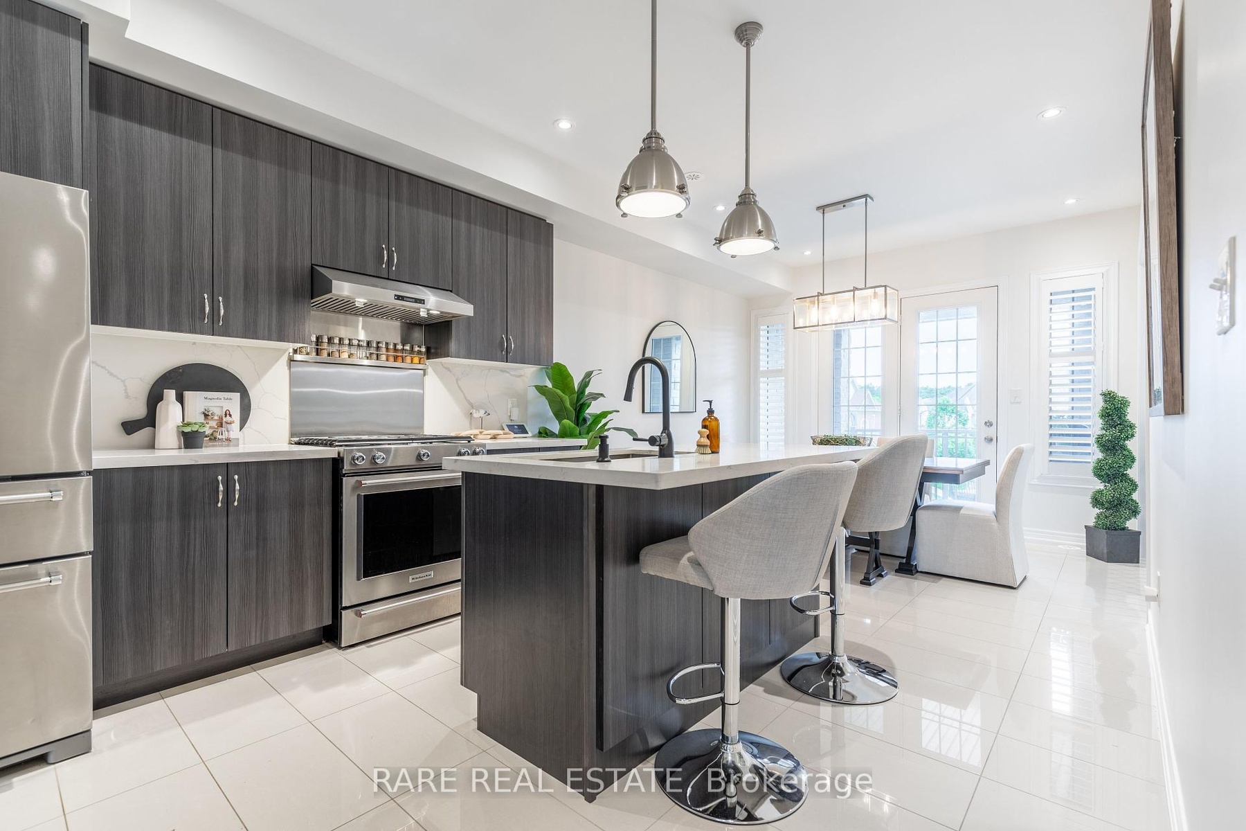 Escape to your dream home in this expansive 3-storey freehold townhouse, offering over 2,518 square feet of above-ground living space and the feel of a semi-detached home. Immerse yourself in a world of bright, airy living spaces accentuated by unobstructed views throughout. Unwind with beautiful parks nearby, perfect for nature walks or picnics. Entertain effortlessly in the open concept layout, where high ceilings and pot lights enhance the spacious feel. Unleash your inner chef in the luxurious eat-in kitchen, boasting a generous island, quartz countertops, a large walk-in pantry, coffee station, and premium stainless steel appliances including a gas stove. Charming French doors lead to a private balcony, perfect for extending your living space outdoors. The open plan flows into the oversized living room showcasing an electric fireplace adding cozy ambience, wainscoting and open views. Upstairs, you'll find a haven for relaxation with three spacious bedrooms, a full bathroom, and a separate laundry room. The master suite retreat features a private 4-piece ensuite with a soaker tub and a large walk-in closet, ensuring ultimate relaxation. This versatile living space caters to your needs. An additional room on the main street level adjacent to a full bath offers wonderful flexibility as a spacious fourth bedroom with plenty of natural night (potentially as an in-law suite space) or perhaps a private office for work-from-home life. Basement offers lots of potential. Two main entrances offer added convenience, with direct access to the garage from the laundry room. Additional features include premium window coverings throughout, Quartz countertops, Wainscotting in office and living room as well as stairway space, upgraded lighting, new carpets (2023), and an EV charger plug done to code. Don't miss this opportunity to own this exceptional, well maintained home!