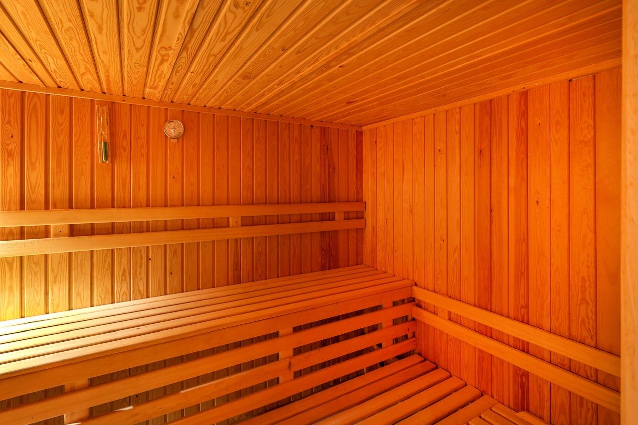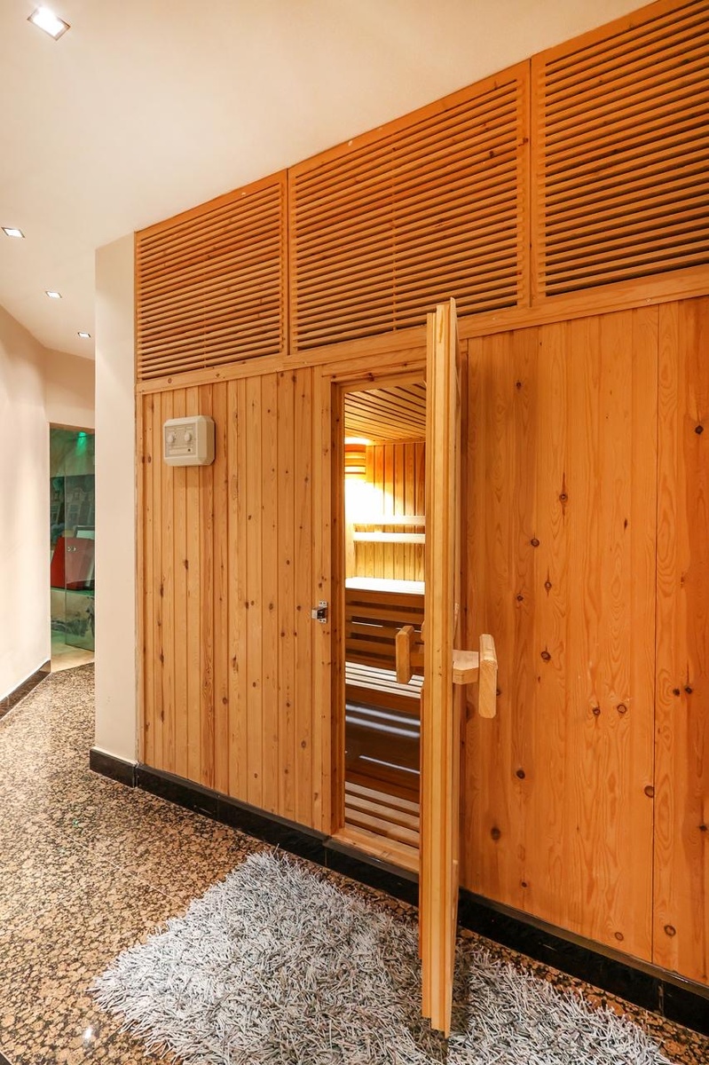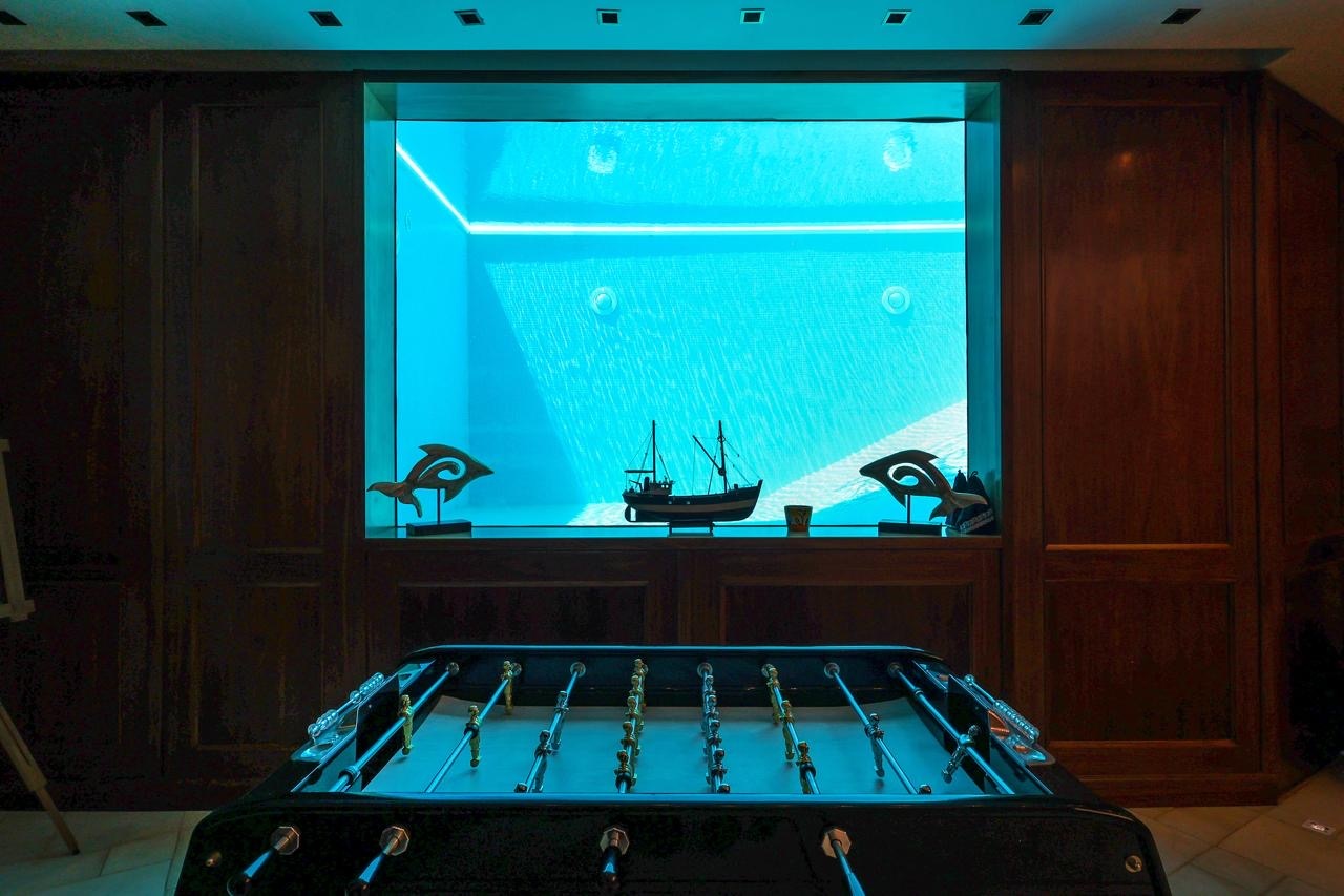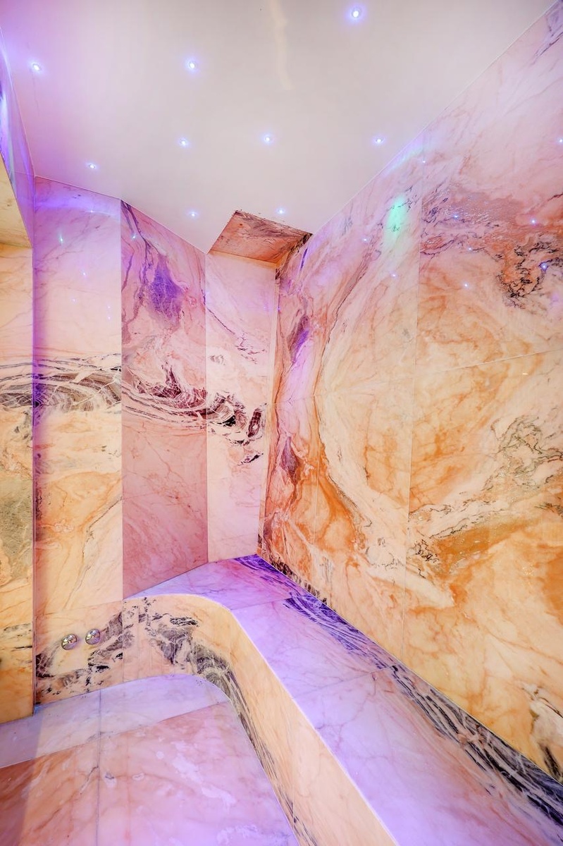 The lower level offers an indoor heated swimming pool, spa, hammam, and fitness area, creating a private retreat of relaxation and wellness.