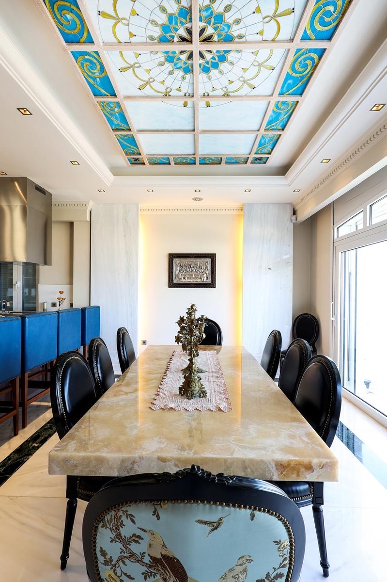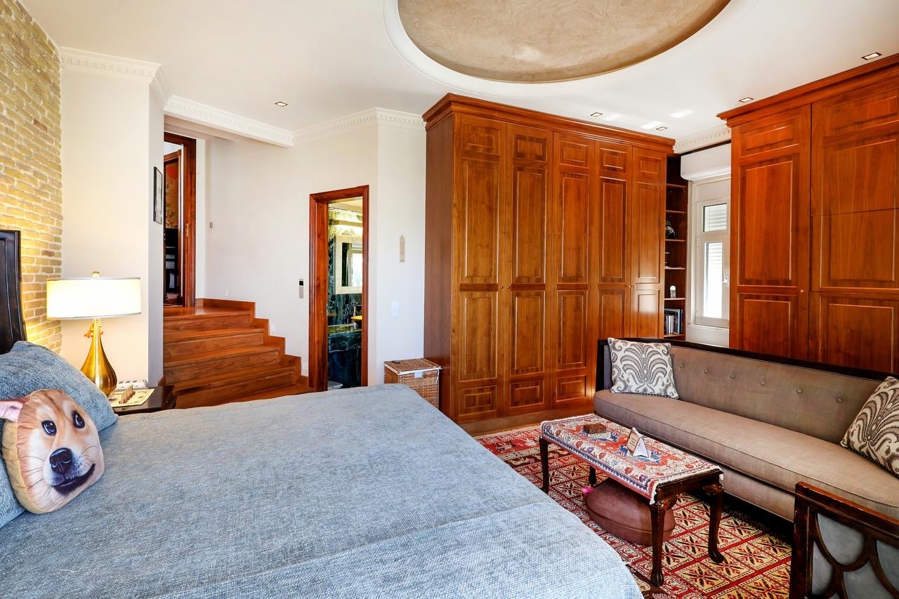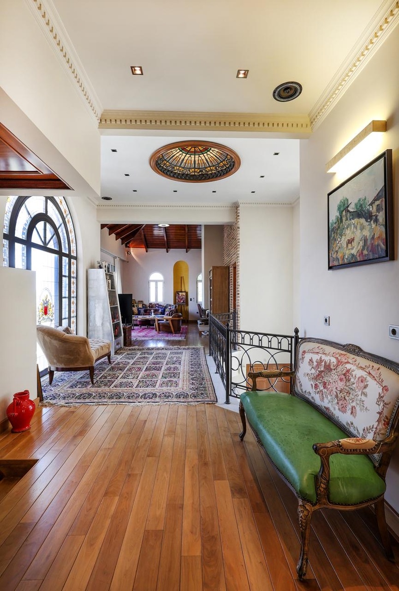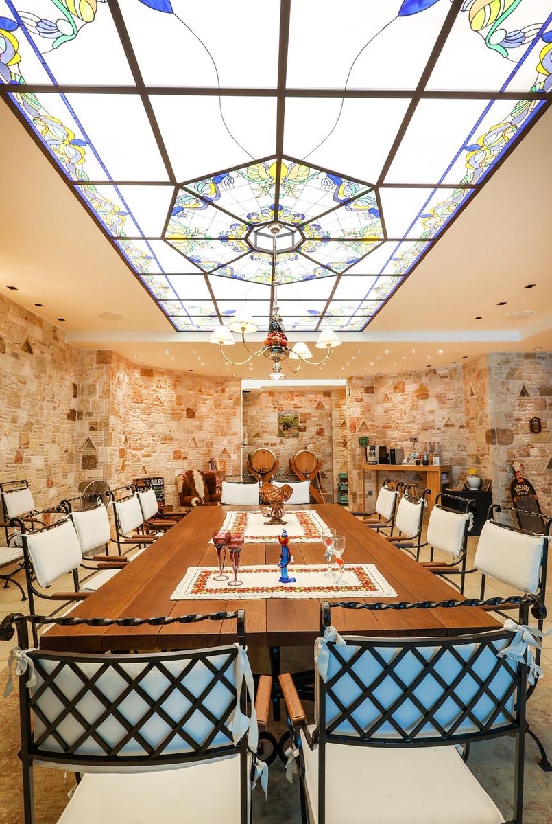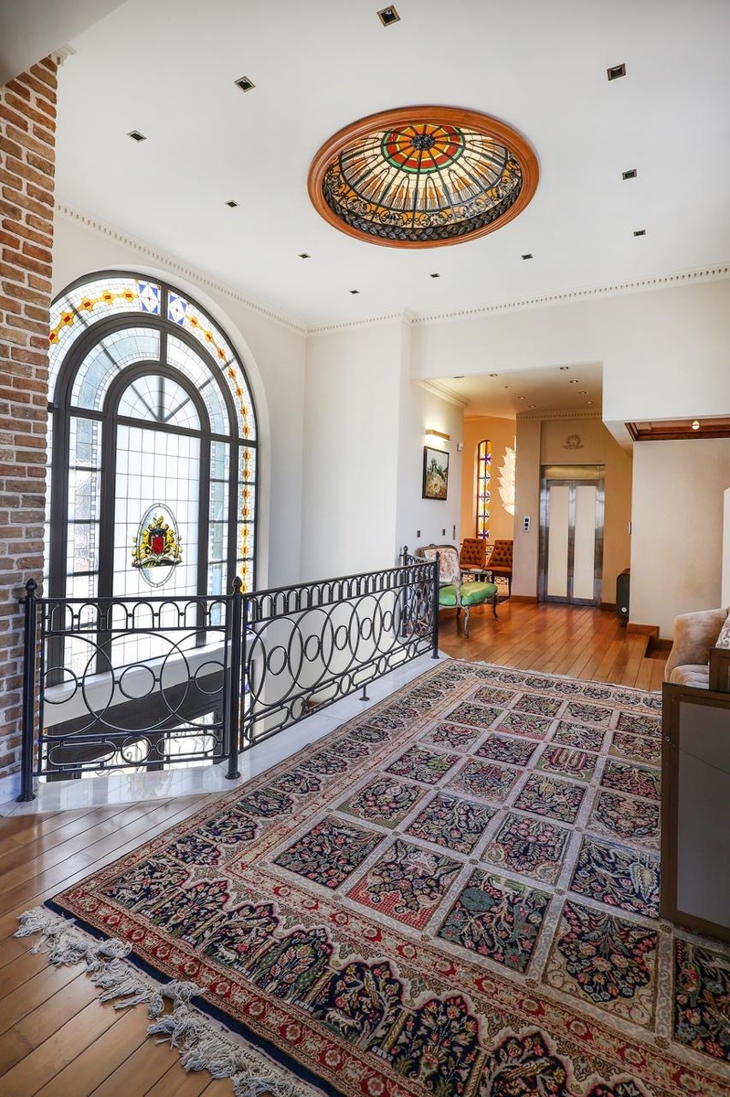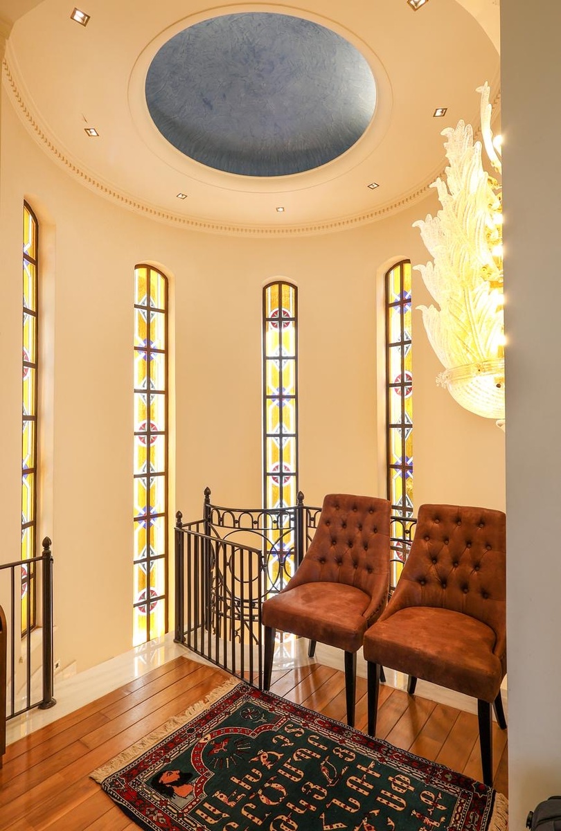 Entering through the monumental double doors beneath a six-meter archway, guests are greeted by a sweeping marble staircase crowned by a stained-glass dome — a fitting introduction to the artistry that defines every level of this home.