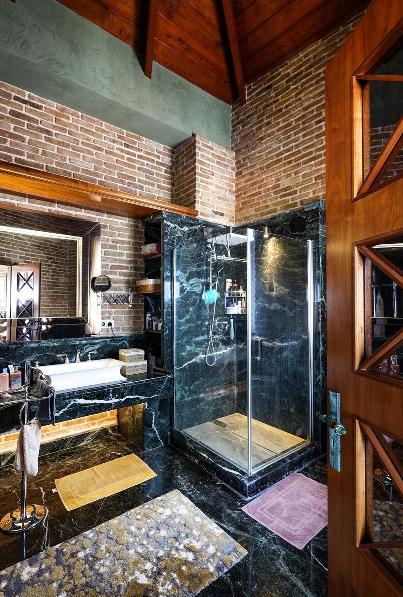 Outdoors, a 65 m2 overflow pool, BBQ area, and multi-level marble terraces extend the living experience into nature.