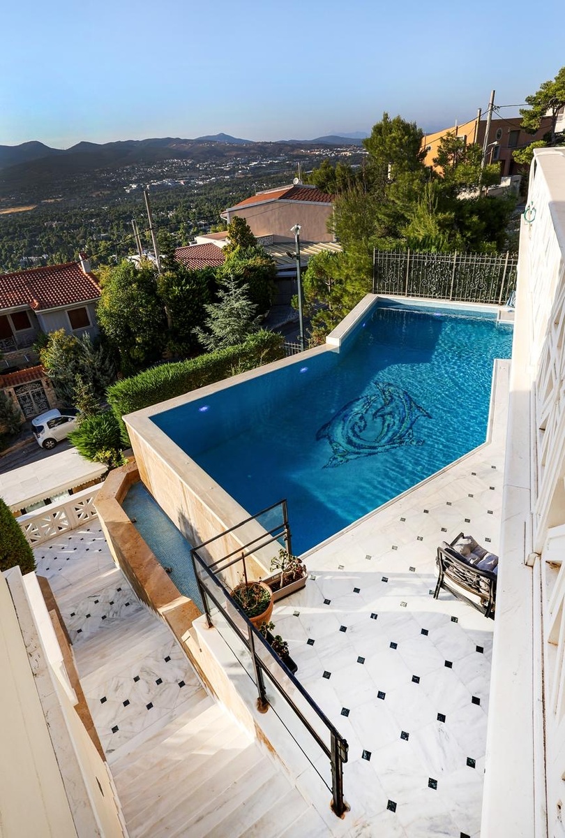 Hidden among the lush hills of northern Athens, in the elite enclave of Dionysos, this five-story private manorembodies the essence of refined living.