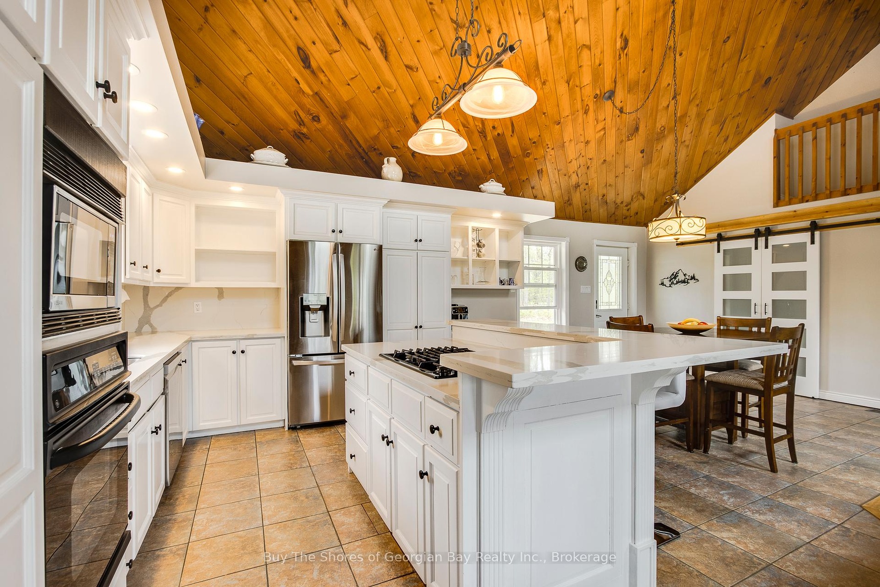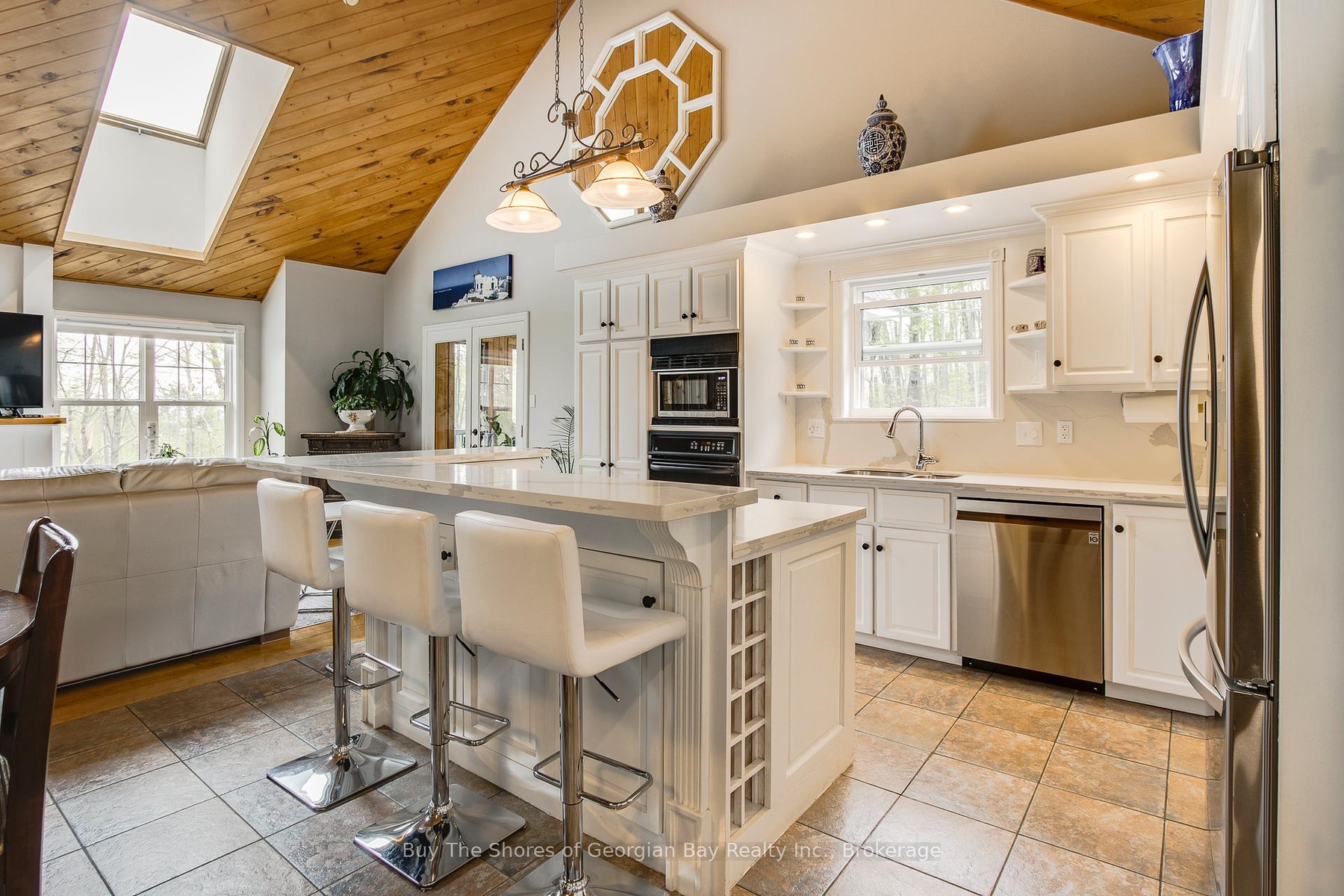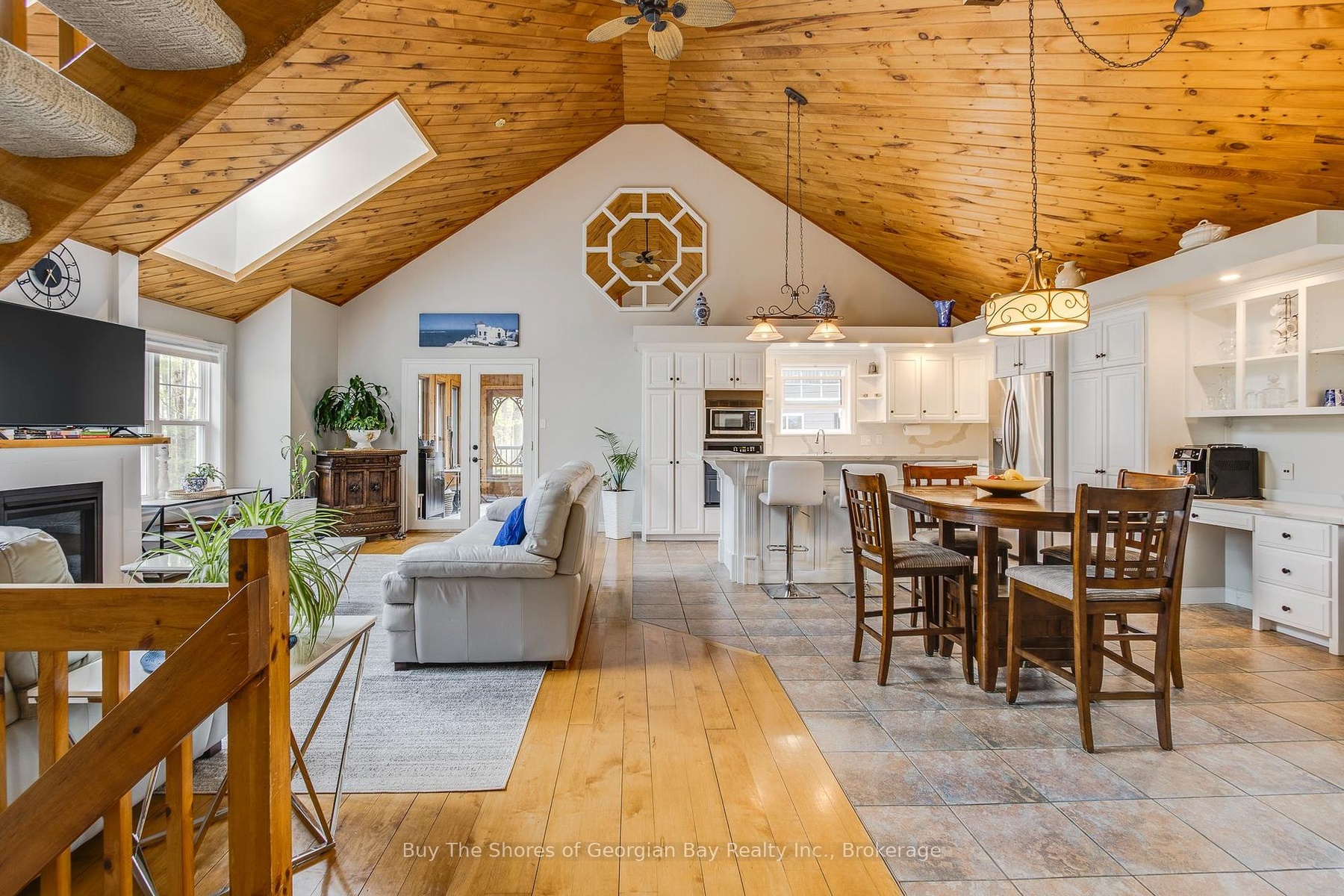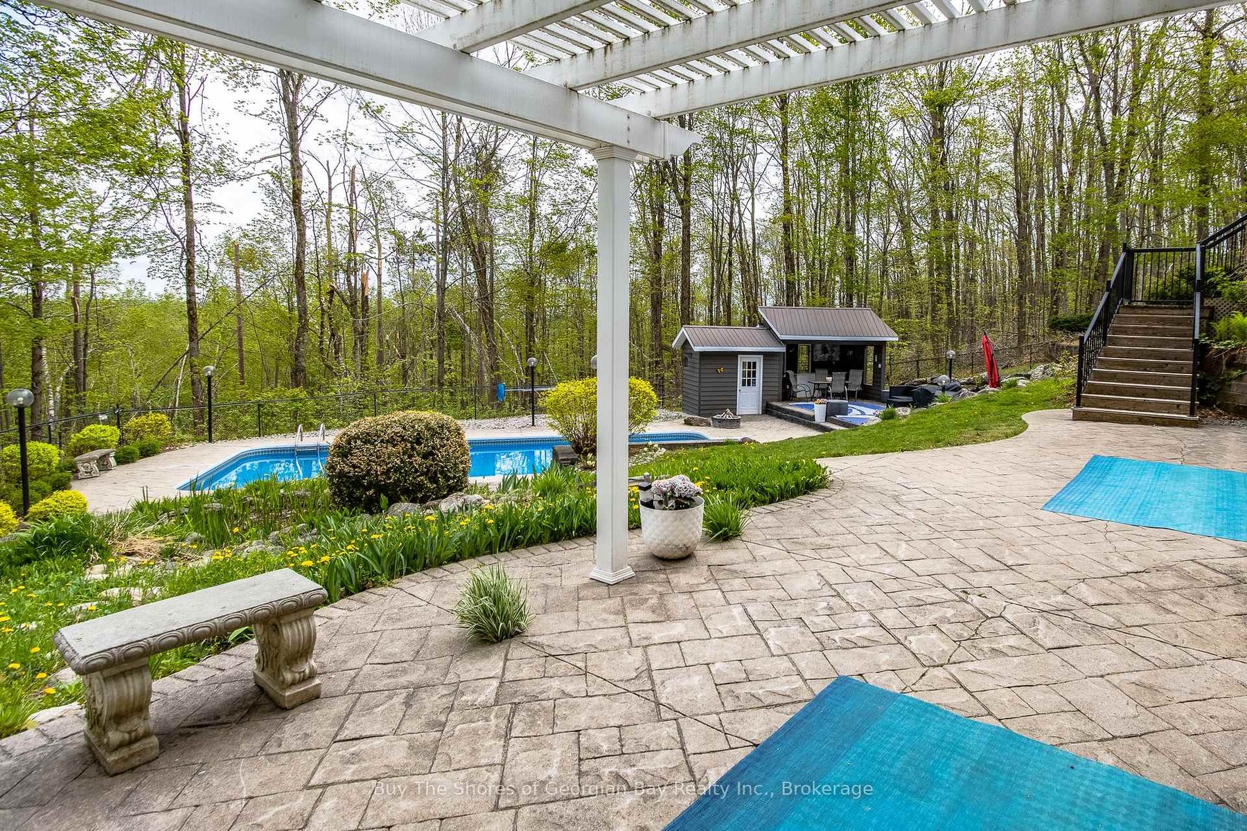 DescriptionDiscover a one-of-a-kind sanctuary nestled in nature - just 4 minutes from Mount St. Louis Moonstone Ski Resort, minutes to the city of Barrie & easily accessible from major highways for ultimate convenience. Pass through the gated entry and find yourself at a breathtaking 4- bedroom home, designed for comfort and elegance. The cathedral ceilings in the main living area create an open, airy atmosphere, while the floor-to-ceiling gas fireplace sets the perfect ambiance. The fully finished walk-out lower level offers addition living space, enhanced by in-floor radiant heat, a stand-by natural gas generator (new 2023), central air, & a water softener for year-round comfort. The heart of the home is the completely updated kitchen, featuring new stainless steel appliances, a Silestone countertop & a large island with seating for six - an entertainer's dream! The space seamlessly flows into the living & dining areas, with expansive windows framing picturesque views of the wooded backyard, inground pool & lush acreage. The primary bedroom is an oasis of its own, offering private access to the pool area, a gas fireplace, a walk-in fitted closet & a luxuriously renovated ensuite bathroom - a true retreat within a retreat. Beyond the main house, this property boasts exceptional additional features: the Triple-car garage serviced with hydro & water, plus one fully insulated and heated bay. The Detached 1,750 sq. ft. heated workshop, with hydro, a new 2023 roof, two garage doors, and a man door is great for an at home business or storage space for extra "toys" (Red Kawasaki UTV included). The personal trails leading to a charming log cabin overlooking the ski hills, complete with heat, electricity, running water, a pellet-burning stove & a loft - perfect get away in the woods. Tucked-away with the log cabin is an outdoor sauna, offering a private escape deep in the forest. This home is more than just a place to live - it's a lifestyle of peace, nature and modern luxury.Virtual Tour: https://tours.exit509photography.com/2329578?idx=1Amenities- Auto Garage Door Remote