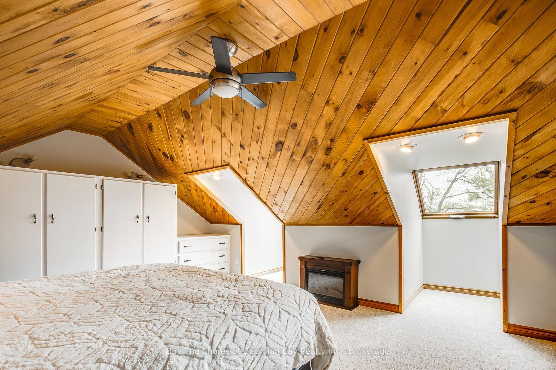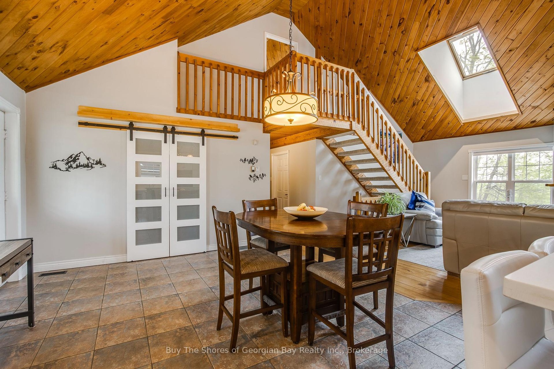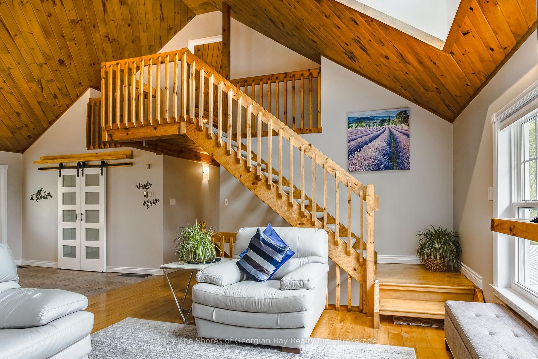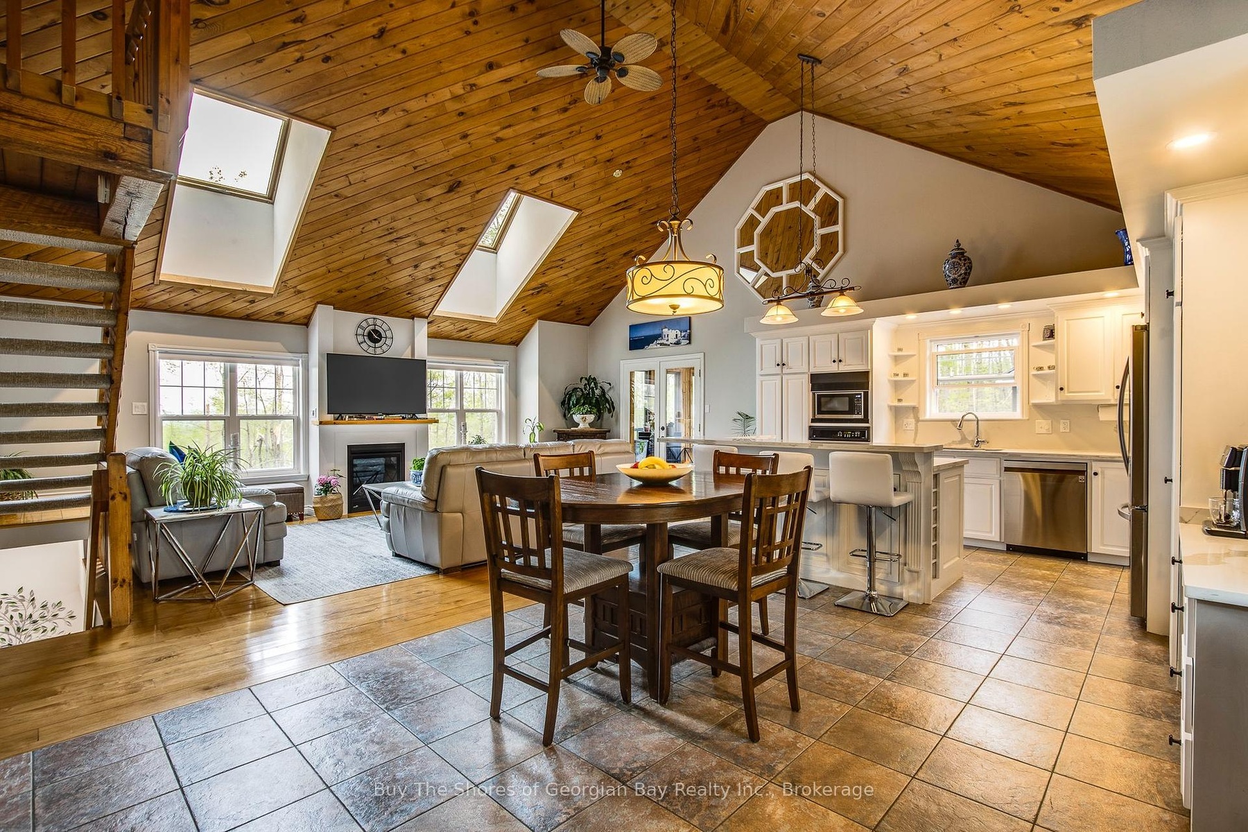 DescriptionDiscover a one-of-a-kind sanctuary nestled in nature - just 4 minutes from Mount St. Louis Moonstone Ski Resort, minutes to the city of Barrie & easily accessible from major highways for ultimate convenience. Pass through the gated entry and find yourself at a breathtaking 4- bedroom home, designed for comfort and elegance. The cathedral ceilings in the main living area create an open, airy atmosphere, while the floor-to-ceiling gas fireplace sets the perfect ambiance. The fully finished walk-out lower level offers addition living space, enhanced by in-floor radiant heat, a stand-by natural gas generator (new 2023), central air, & a water softener for year-round comfort. The heart of the home is the completely updated kitchen, featuring new stainless steel appliances, a Silestone countertop & a large island with seating for six - an entertainer's dream! The space seamlessly flows into the living & dining areas, with expansive windows framing picturesque views of the wooded backyard, inground pool & lush acreage. The primary bedroom is an oasis of its own, offering private access to the pool area, a gas fireplace, a walk-in fitted closet & a luxuriously renovated ensuite bathroom - a true retreat within a retreat. Beyond the main house, this property boasts exceptional additional features: the Triple-car garage serviced with hydro & water, plus one fully insulated and heated bay. The Detached 1,750 sq. ft. heated workshop, with hydro, a new 2023 roof, two garage doors, and a man door is great for an at home business or storage space for extra "toys" (Red Kawasaki UTV included). The personal trails leading to a charming log cabin overlooking the ski hills, complete with heat, electricity, running water, a pellet-burning stove & a loft - perfect get away in the woods. Tucked-away with the log cabin is an outdoor sauna, offering a private escape deep in the forest. This home is more than just a place to live - it's a lifestyle of peace, nature and modern luxury.Virtual Tour: https://tours.exit509photography.com/2329578?idx=1Amenities- Auto Garage Door Remote