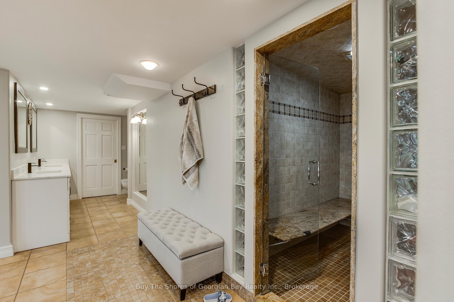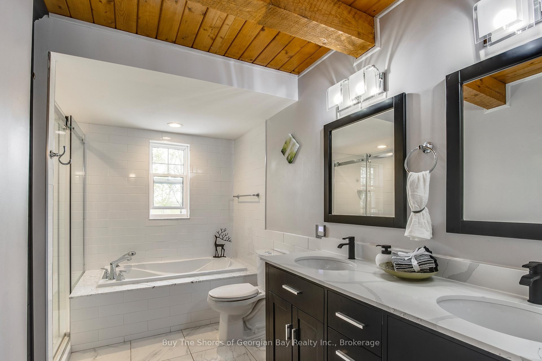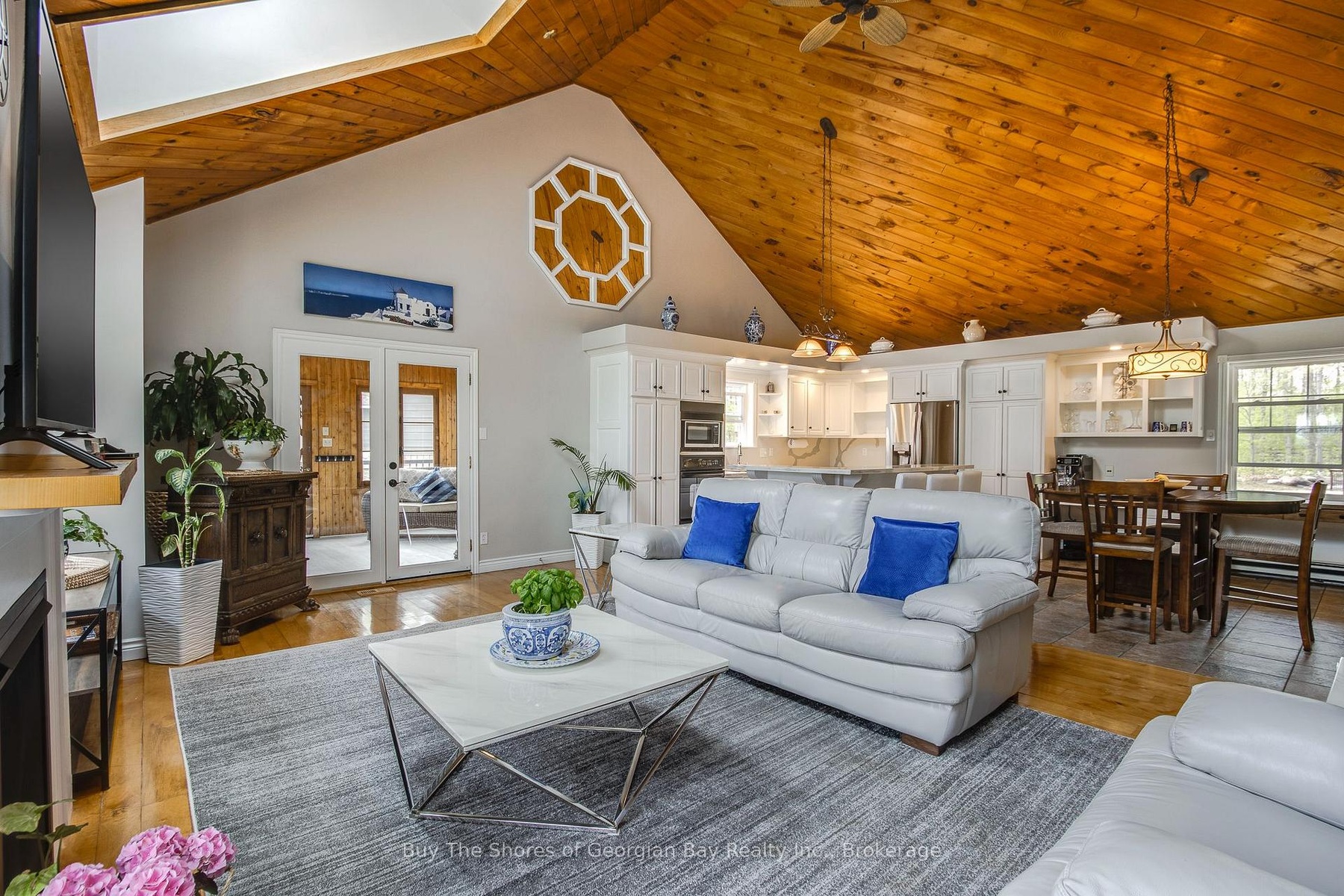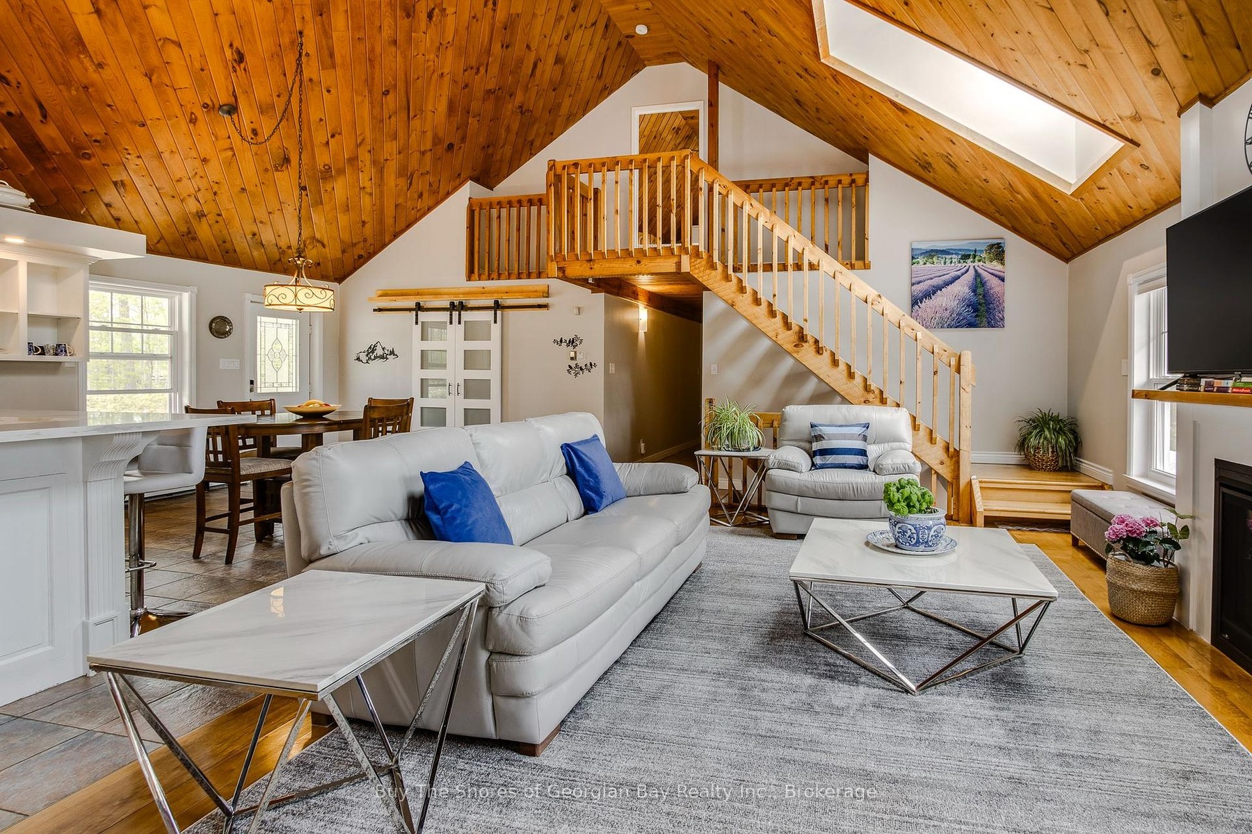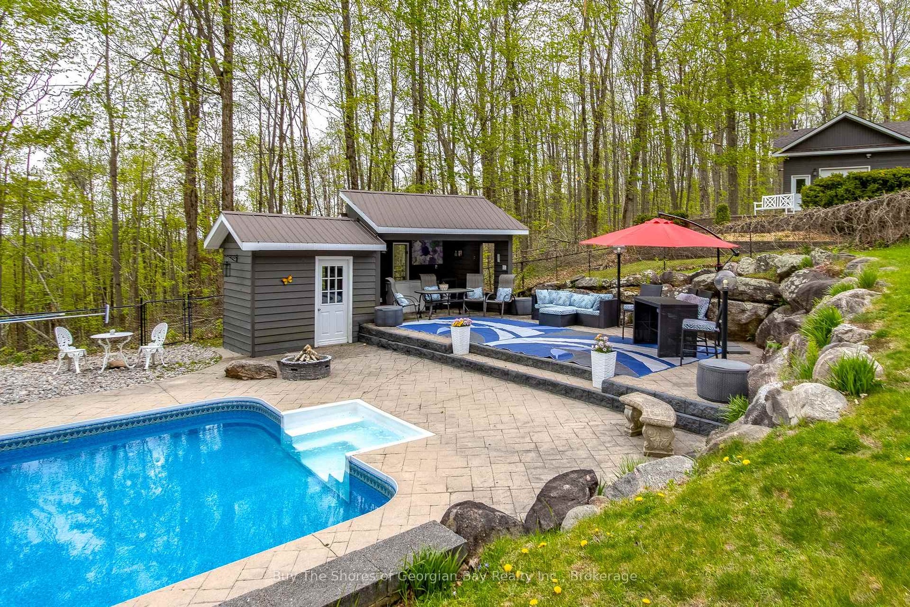 Discover a one-of-a-kind sanctuary nestled in nature - just 4 minutes from Mount St. Louis Moonstone Ski Resort, minutes to the city of Barrie & easily accessible from major highways for ultimate convenience. Pass through the gated entry and find yourself at a breathtaking 4- bedroom home, designed for comfort and elegance. The cathedral ceilings in the main living area create an open, airy atmosphere, while the floor-to-ceiling gas fireplace sets the perfect ambiance. The fully finished walk-out lower level offers addition living space, enhanced by in-floor radiant heat, a stand-by natural gas generator (new 2023), central air, & a water softener for year-round comfort. The heart of the home is the completely updated kitchen, featuring new stainless steel appliances, a Silestone countertop & a large island with seating for six - an entertainer's dream! The space seamlessly flows into the living & dining areas, with expansive windows framing picturesque views of the wooded backyard, inground pool & lush acreage. The primary bedroom is an oasis of its own, offering private access to the pool area, a gas fireplace, a walk-in fitted closet & a luxuriously renovated ensuite bathroom - a true retreat within a retreat. Beyond the main house, this property boasts exceptional additional features: the Triple-car garage serviced with hydro & water, plus one fully insulated and heated bay. The Detached 1,750 sq. ft. heated workshop, with hydro, a new 2023 roof, two garage doors, and a man door is great for an at home business or storage space for extra "toys" (Red Kawasaki UTV included). The personal trails leading to a charming log cabin overlooking the ski hills, complete with heat, electricity, running water, a pellet-burning stove & a loft - perfect get away in the woods. Tucked-away with the log cabin is an outdoor sauna, offering a private escape deep in the forest. This home is more than just a place to live - it's a lifestyle of peace, nature and modern luxury.