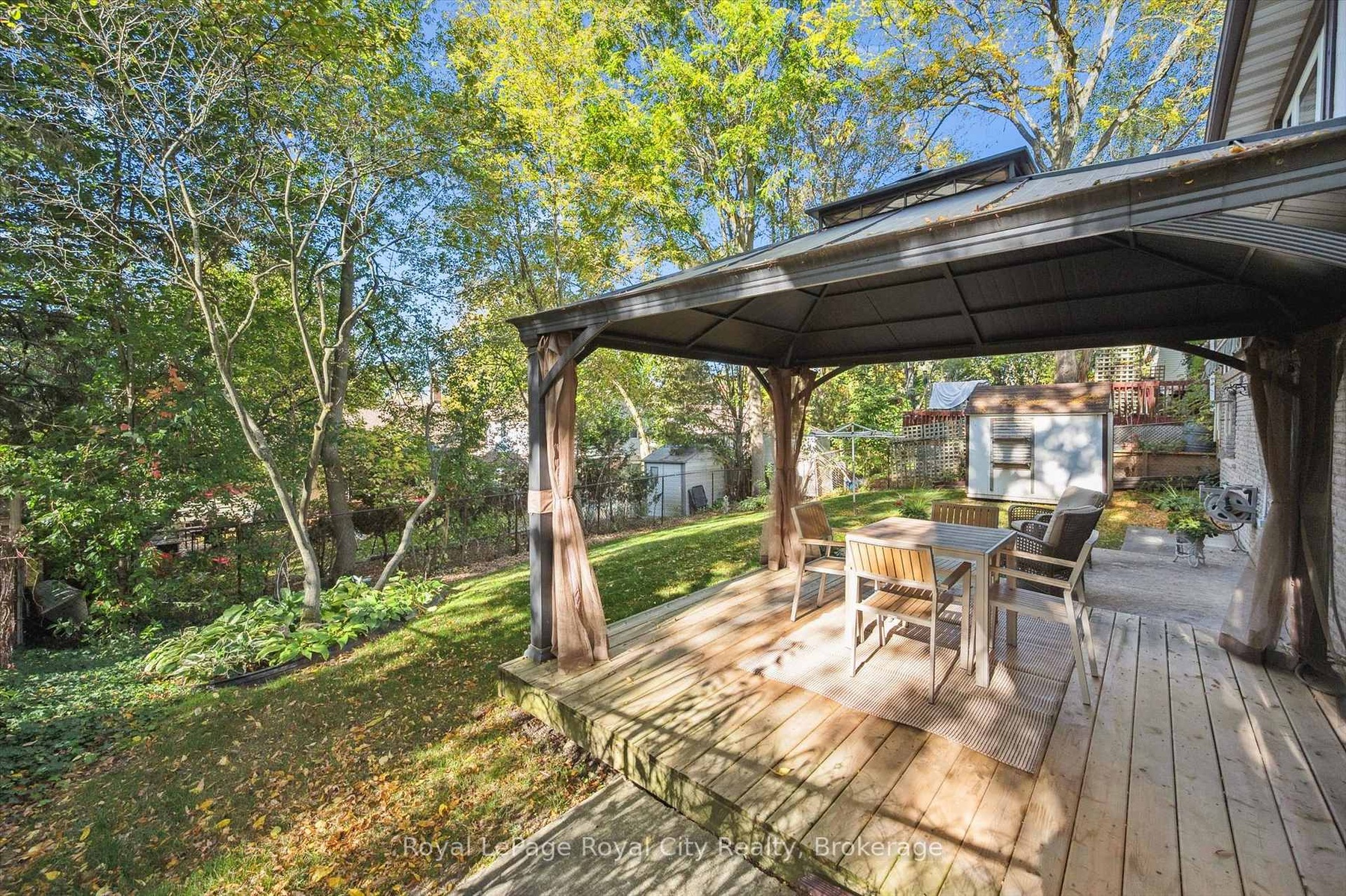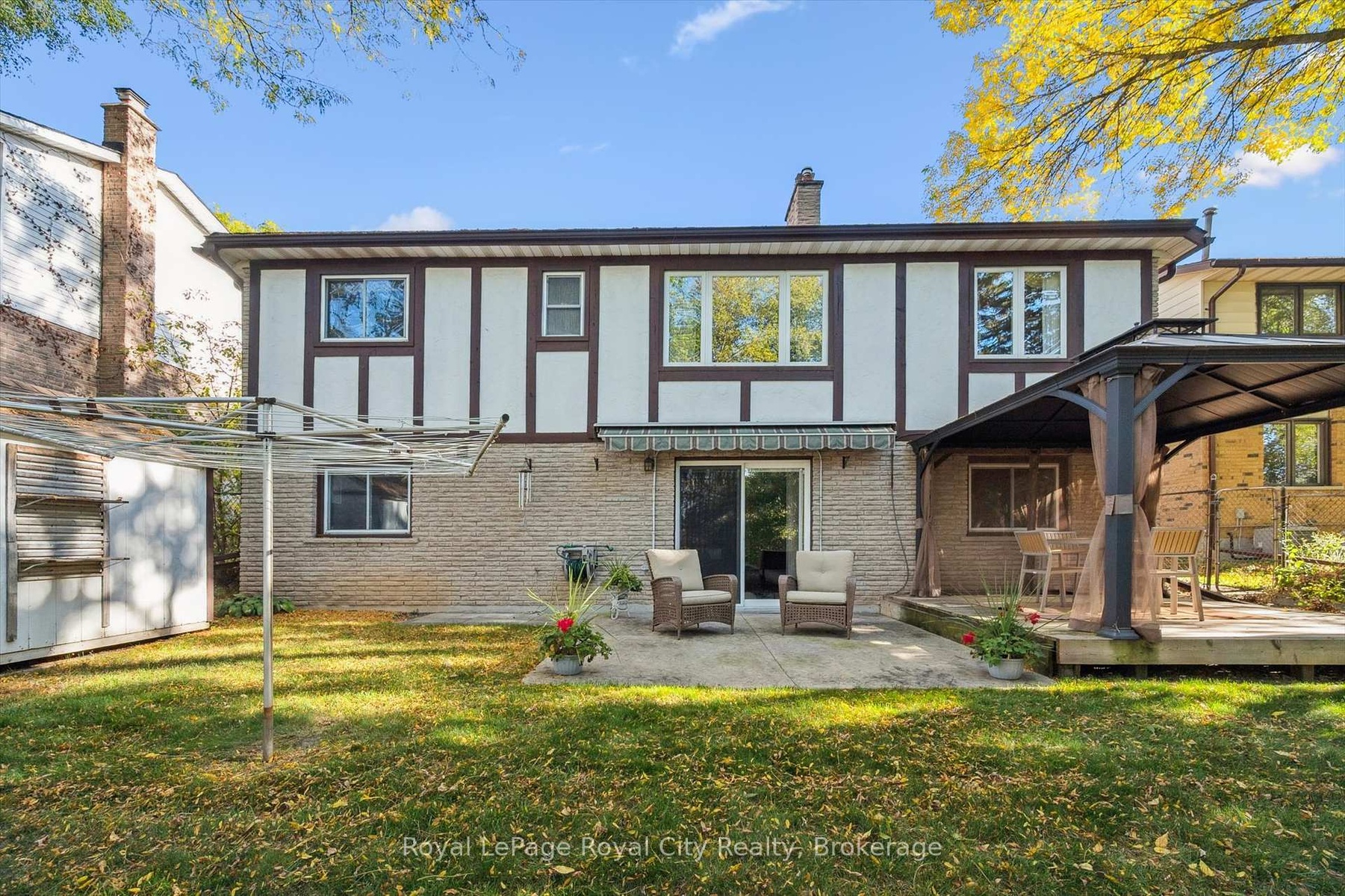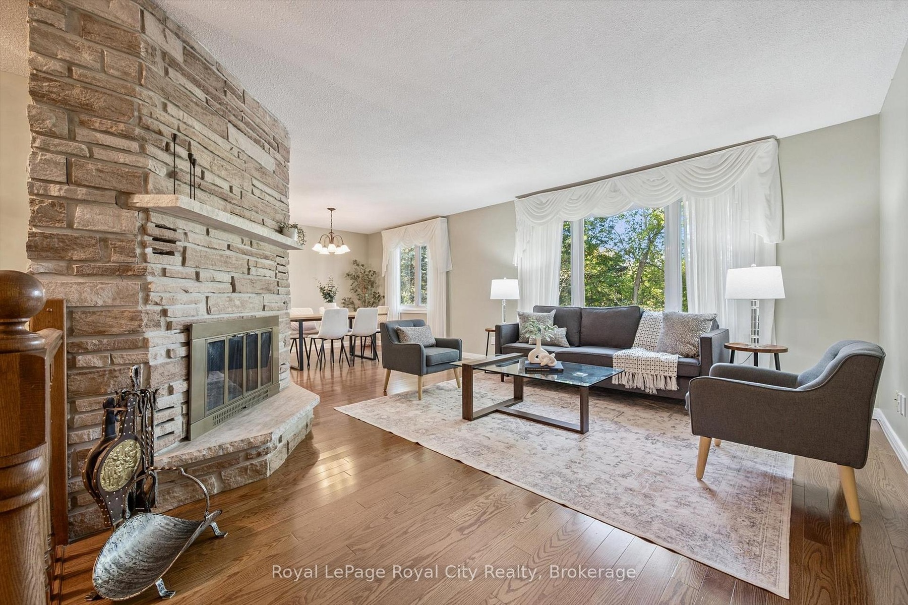 Welcome to 75 Shadybrook Crescent - a charming Tudor-style bungalow nestled in the highly desirable Kortright West neighbourhood, just steps from Preservation Park and its incredible trail system! With over 2,600 sq ft of finished living space, including a walk-out lower level, this 3+1 bedroom, 3-bathroom home offers both character and flexibility for a variety of lifestyles. The main floor features hardwood flooring and an open-concept living and dining area centred around a stunning full-height stone fireplace. Three spacious bedrooms and two full bathrooms make everyday living comfortable and functional. Downstairs, the finished walk-out lower level adds even more opportunity. With a second kitchen, full bathroom, large recreation room with its own fireplace, and a fourth bedroom, its an ideal setup for multi-generational living or mortgage helper. Outside, the backyard provides shade and privacy under a canopy of mature trees - perfect for relaxing or outdoor entertaining. An attached garage and double driveway add convenience, and commuting is a breeze with fast access to the Hanlon. Lovingly maintained and move-in ready, this home gives you the flexibility to enjoy it as-is and update at your own pace. Settle in and soak up fall in one of Guelphs most nature-connected neighbourhoods!
