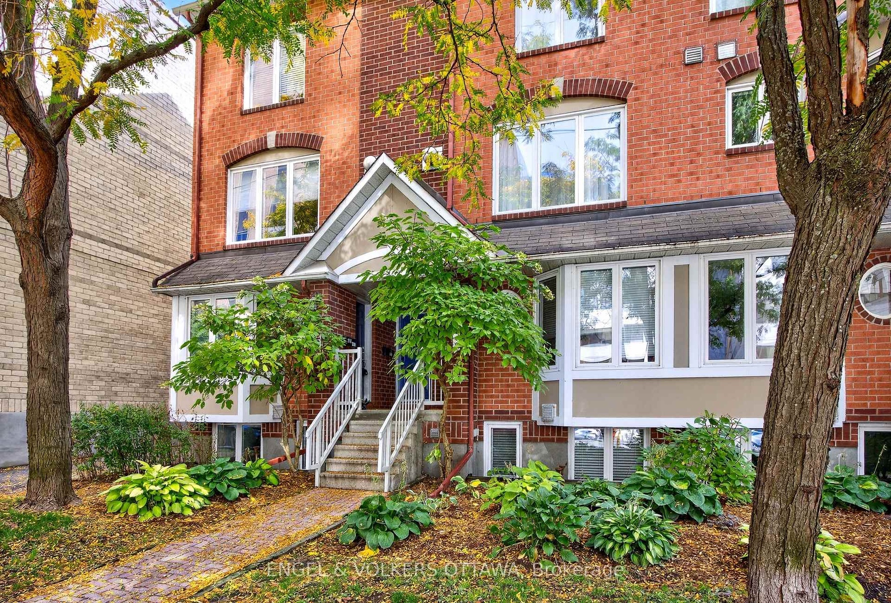 Minto built townhome with 1250 square feet over two floors, 2 bedrooms, 1.5 bathrooms. Quiet locale, in the heart of downtown Ottawa, this home has much to offer. This stylish and bright stacked urban terrace home is perfect for entertaining and everyday living. Hardwood flooring and ceramic on the main level. Sunflooded living/dining room is warmed by a gas fireplace, and sliding glass doors open to a rear terrace, perfect for summer BBQ's and or sitting out and enjoying a morning coffee. The galley style kitchen has good counter space and lots of cabinets/storage, is great for meal prep and offers a nice size separate eating area. The lower level houses the primary bedroom, with excellent closet space, another good sized bedroom and a full bathroom. Laundry room and storage is also located on this level. LRT, Elgin Street, Parliament Hill and Bank Street are all close at hand. Walk everywhere! Restaurants, shopping, grocery stores - Farm Boy and the new Food Basics are all walkable. Very low monthly condo fees. A really nice enclave of homes in a great community. Ease of ownership, low maintenance living. Freshly painted and cleaned and ready for a new owner. Low condo Fees. Floorplan attached. Enjoy urban living at its best!