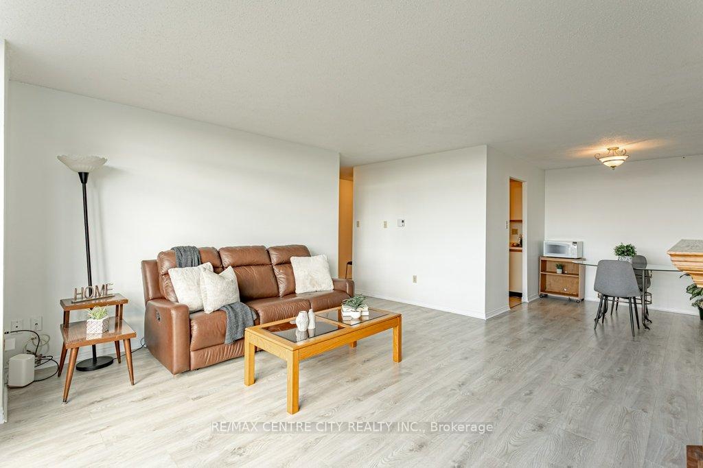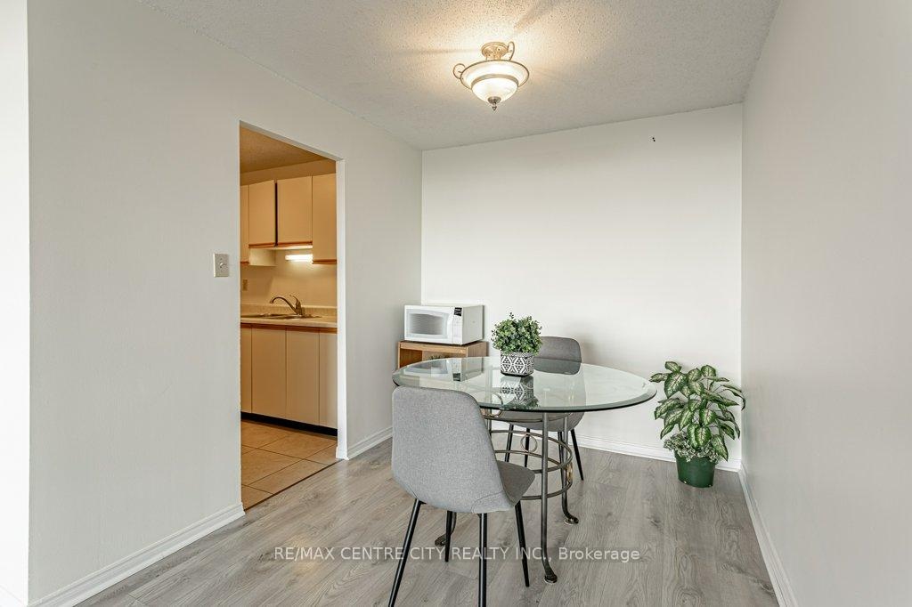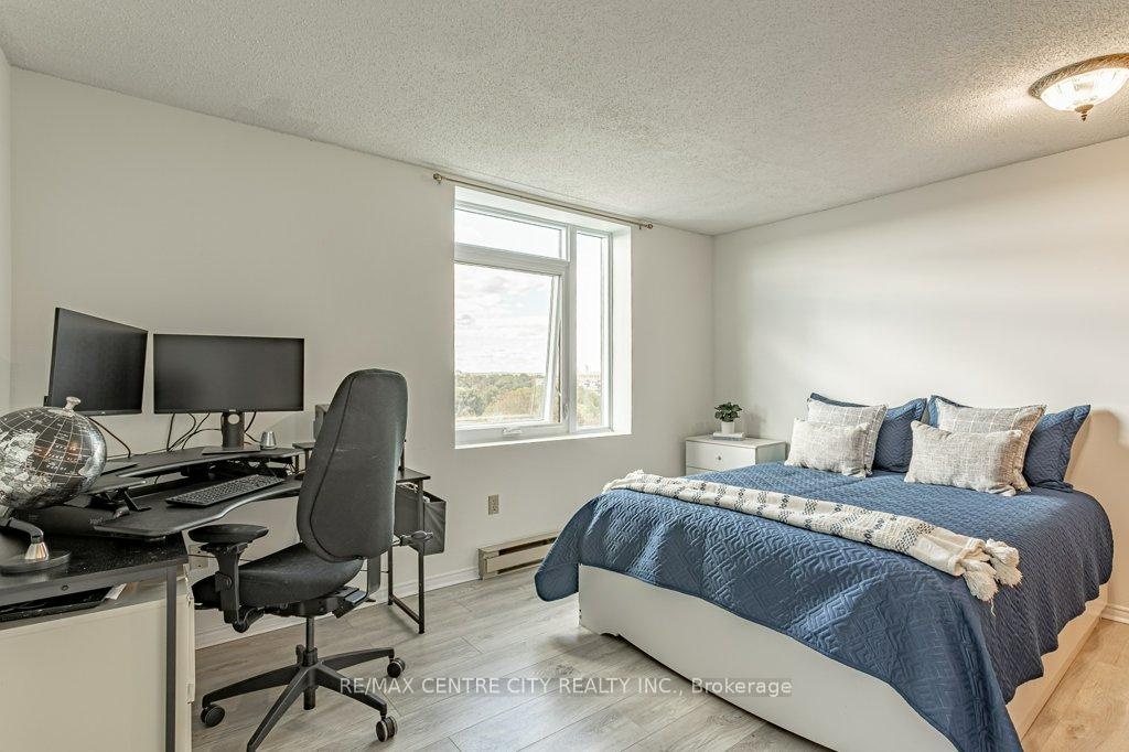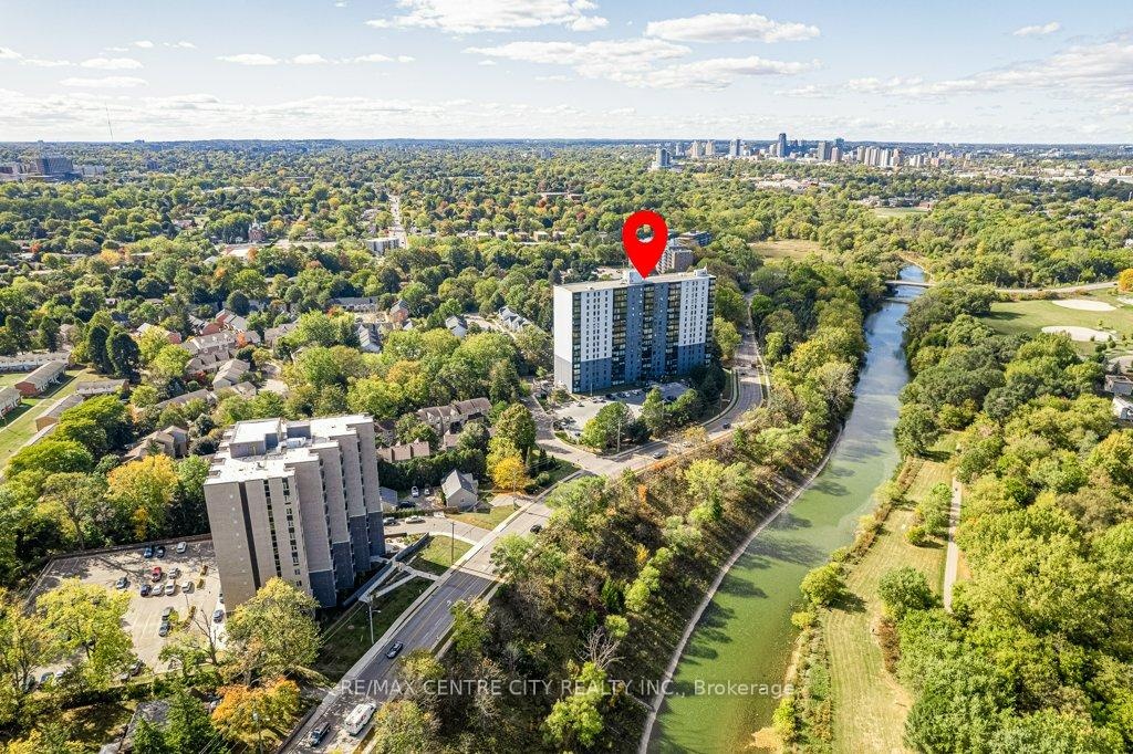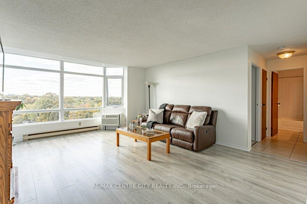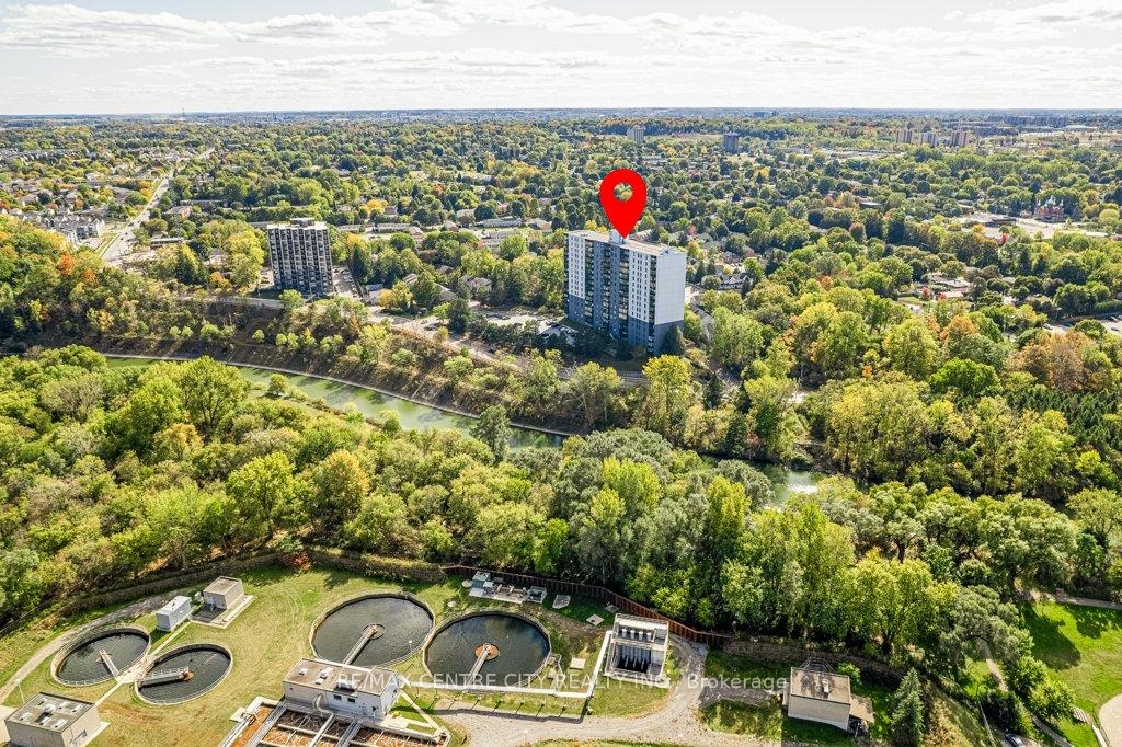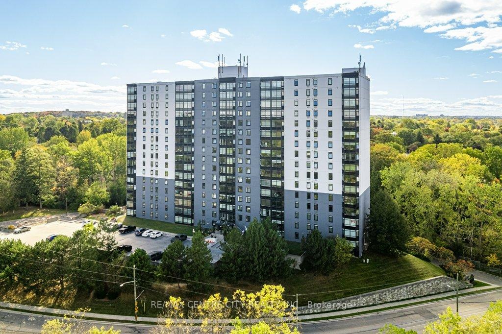 Welcome to Unit 915 at 45 Pond Mills. Situated amongst a canopy of trees on the 9th floor, this 1 bedroom, 1 bathroom condominium apartment is being offered for sale. With westerly exposure, this open unit benefits from sun pouring in throughout the open living/dining space. The flooring is new and the unit has been completely repainted. In addition, is a storage room and in suite washer and dryer. The property is well maintained with new windows (2023) throughout and boasts amenities including a gym, sauna and party room. Enjoy a quick drive to shopping, dining and a host of other conveniences.